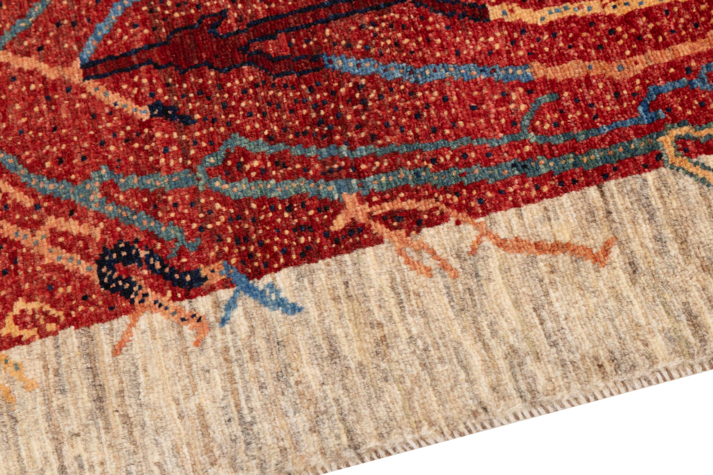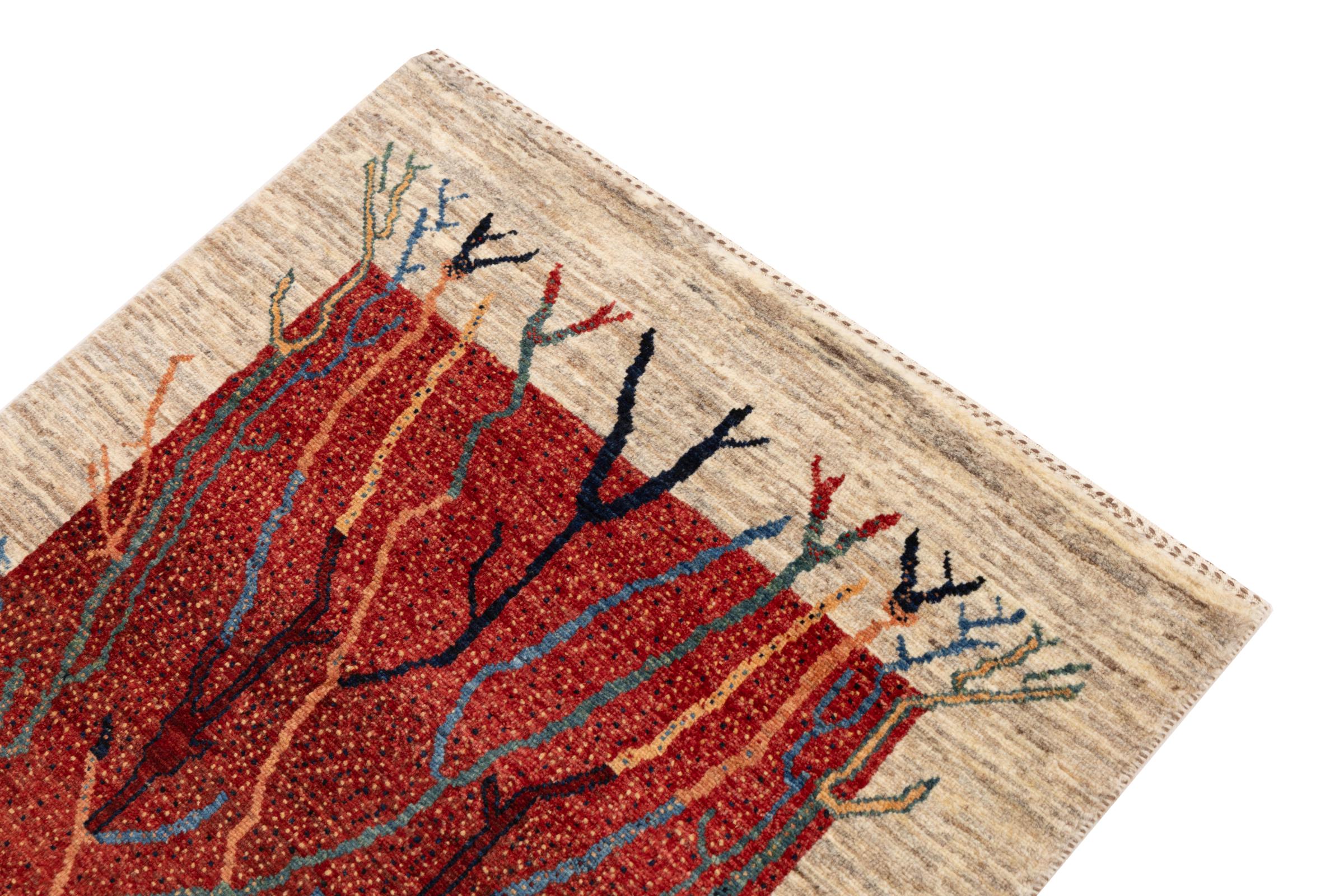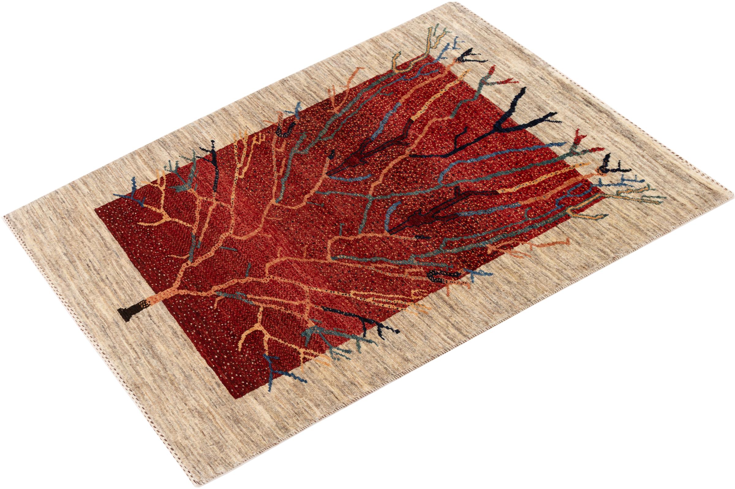 Dit prachtige tapijt is een Perzisch Gabbeh-tapijt en behoort daarom tot de hoogste kwaliteit Gabbeh-tapijten. De tapijten worden geknoopt door nomaden of semi-nomaden in Iran volgens traditioneel vakmanschap. De eenvoudige motieven en patronen zijn vooral geïnspireerd op de directe omgeving van de nomaden. Zo zijn er bijvoorbeeld kamelen, bomen of struiken te vinden op de traditionele tapijten. De Perzische Gabbeh-tapijten zijn gemaakt van wol van lokaal opgefokte kuddes schapen. De wol wordt dus meestal nog met de hand gesponnen. Elk van deze oosterse tapijten belichaamt dus een uniek karakter van de eeuwenoude cultuur.