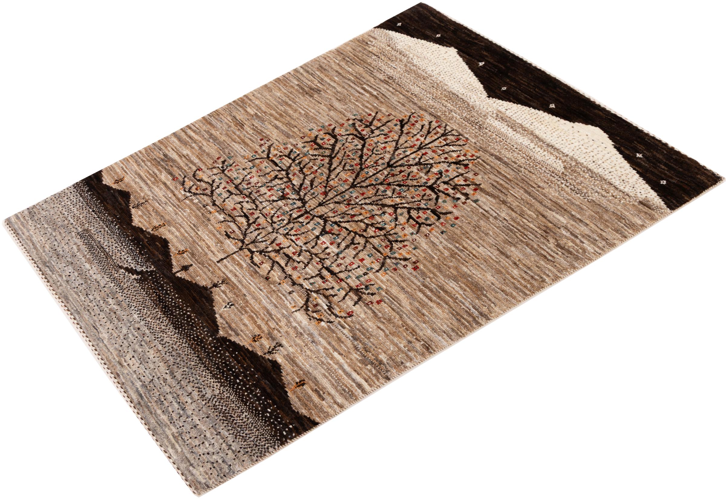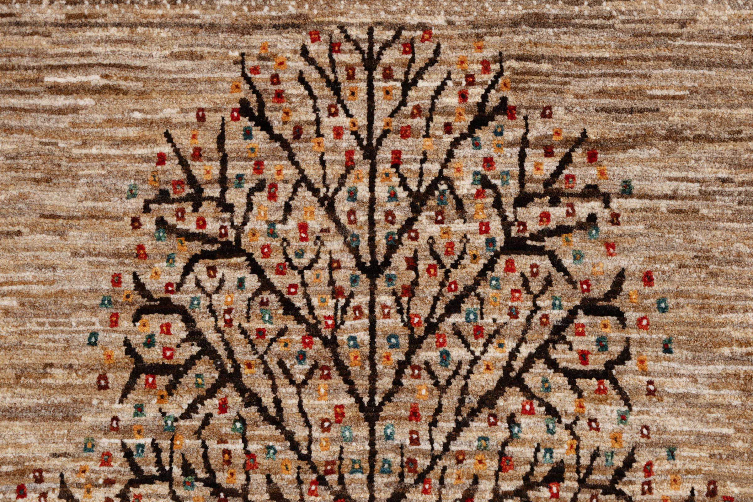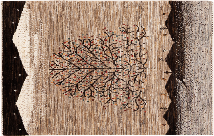 Dit prachtige tapijt is een Perzisch Gabbeh-tapijt en behoort daarom tot de hoogste kwaliteit Gabbeh-tapijten. De tapijten worden geknoopt door nomaden of semi-nomaden in Iran volgens traditioneel vakmanschap. De eenvoudige motieven en patronen zijn vooral geïnspireerd op de directe omgeving van de nomaden. Zo zijn er bijvoorbeeld kamelen, bomen of struiken te vinden op de traditionele tapijten. De Perzische Gabbeh-tapijten zijn gemaakt van wol van lokaal opgefokte kuddes schapen. De wol wordt dus meestal nog met de hand gesponnen. Elk van deze oosterse tapijten belichaamt dus een uniek karakter van de eeuwenoude cultuur.