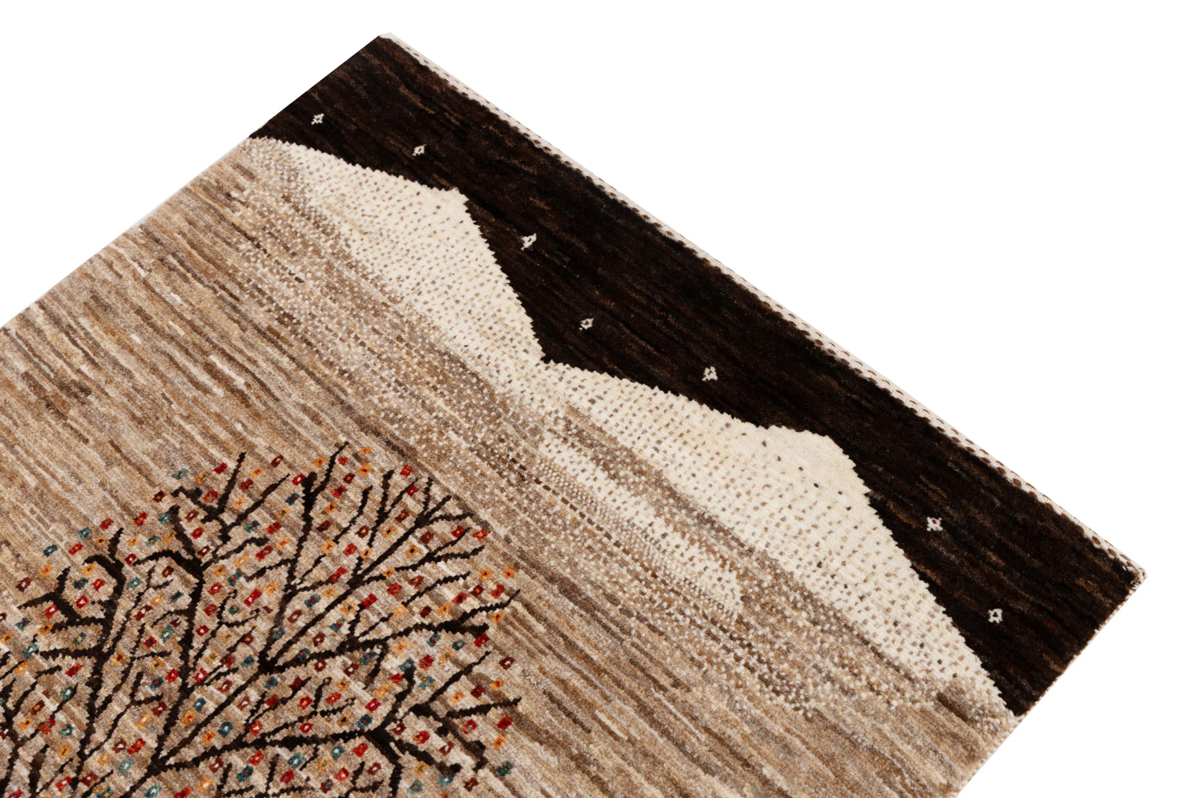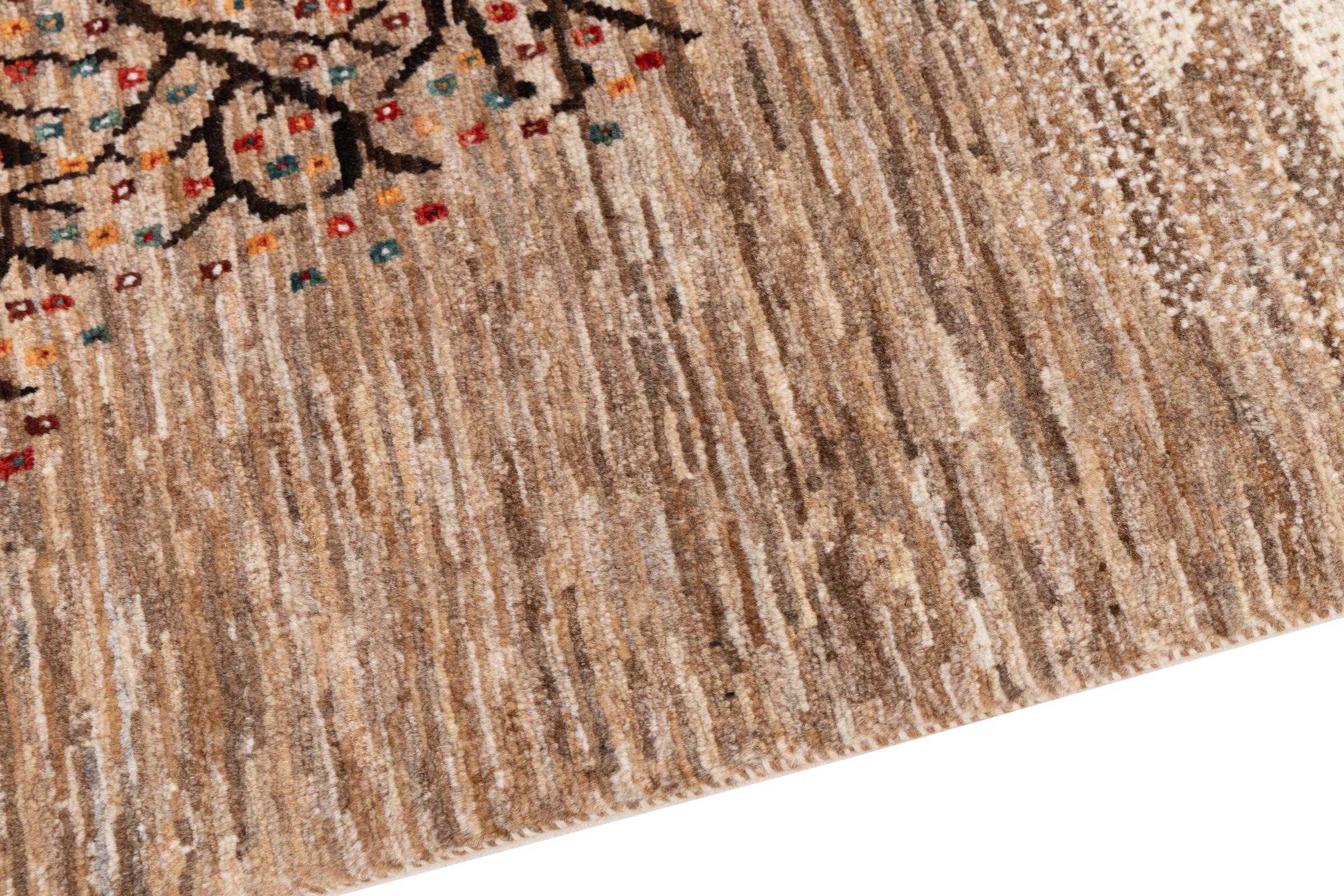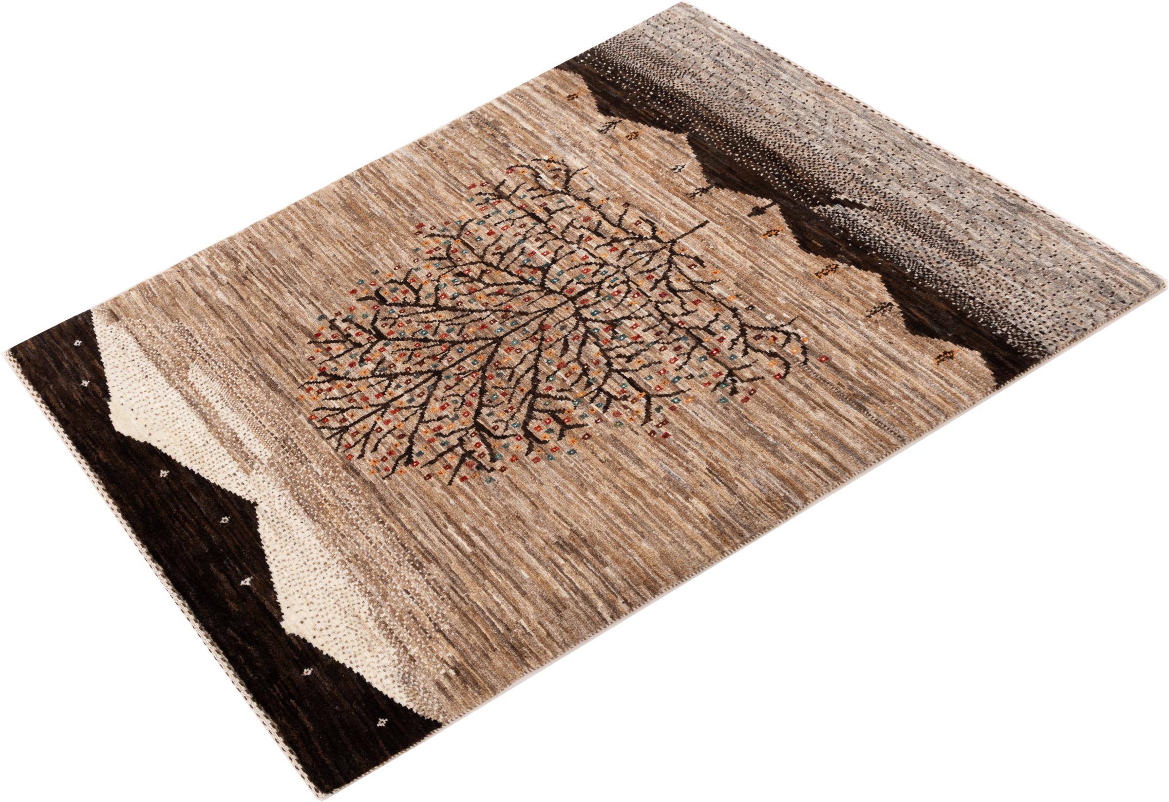 Dit prachtige tapijt is een Perzisch Gabbeh-tapijt en behoort daarom tot de hoogste kwaliteit Gabbeh-tapijten. De tapijten worden geknoopt door nomaden of semi-nomaden in Iran volgens traditioneel vakmanschap. De eenvoudige motieven en patronen zijn vooral geïnspireerd op de directe omgeving van de nomaden. Zo zijn er bijvoorbeeld kamelen, bomen of struiken te vinden op de traditionele tapijten. De Perzische Gabbeh-tapijten zijn gemaakt van wol van lokaal opgefokte kuddes schapen. De wol wordt dus meestal nog met de hand gesponnen. Elk van deze oosterse tapijten belichaamt dus een uniek karakter van de eeuwenoude cultuur.