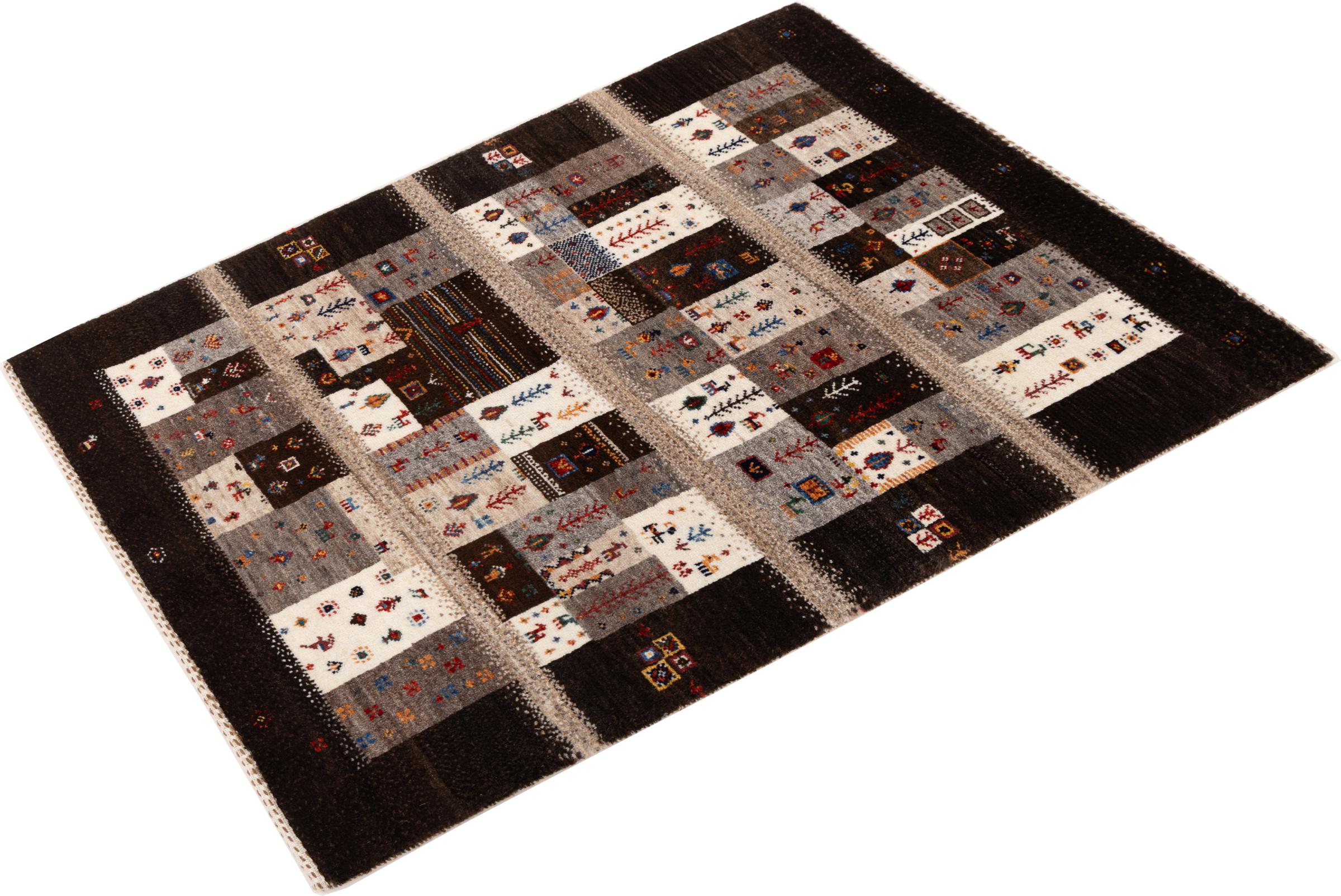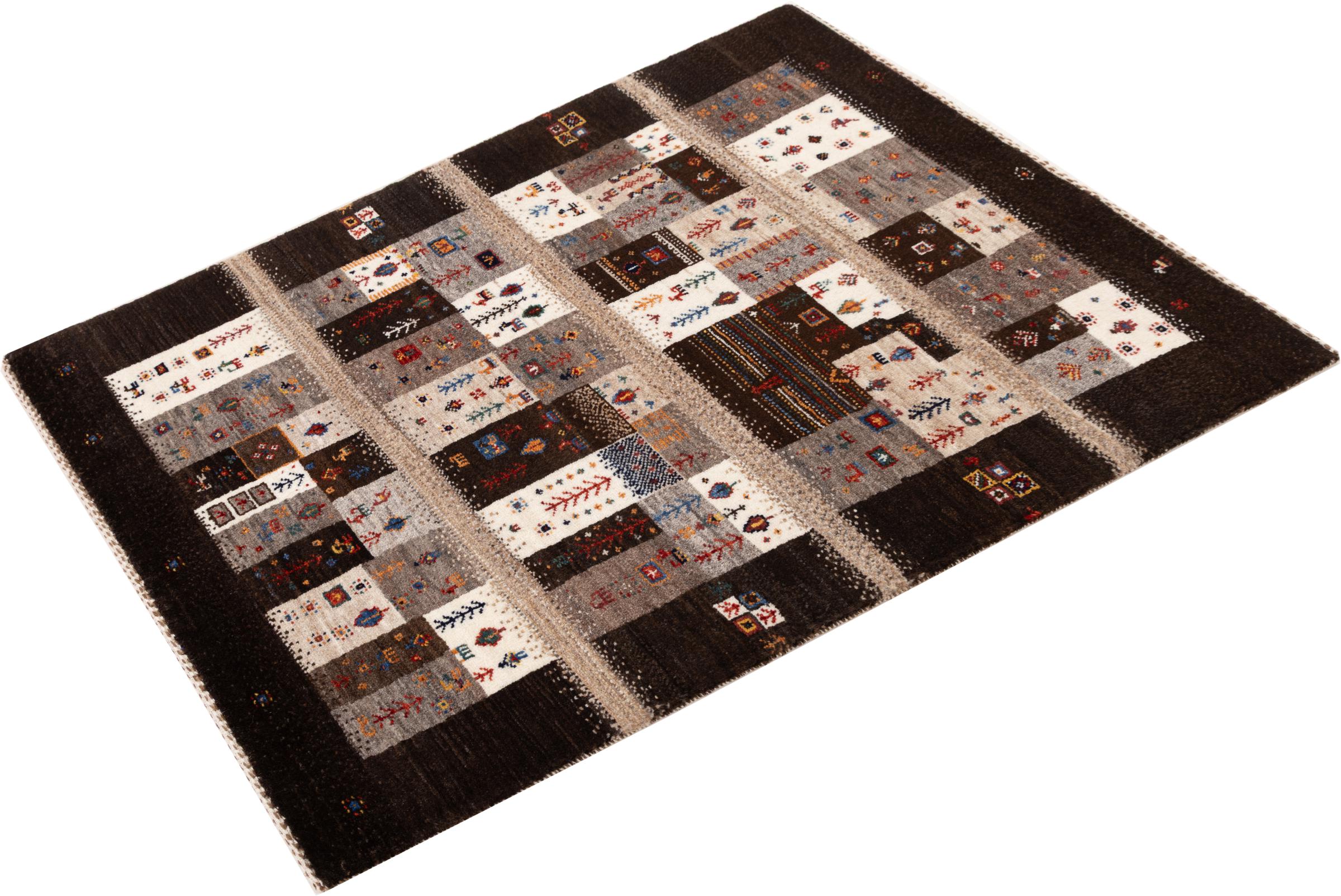 Een verfijning van de al bekende Gabbeh-tapijten: Dit is deze Perzische Gabbeh Loribaft. Het weet indruk te maken met zijn fijnere weefsel en prachtige ontwerp. Het werd door Loren in het zuiden van Perzië met de hand geknoopt van de beste handgesponnen schapenwol. Voor het verven van de wol worden uitsluitend pure plantaardige kleurstoffen gebruikt. Met dit vloerkleed haal je de hoogste standaard van een Gabbeh-tapijt in huis.