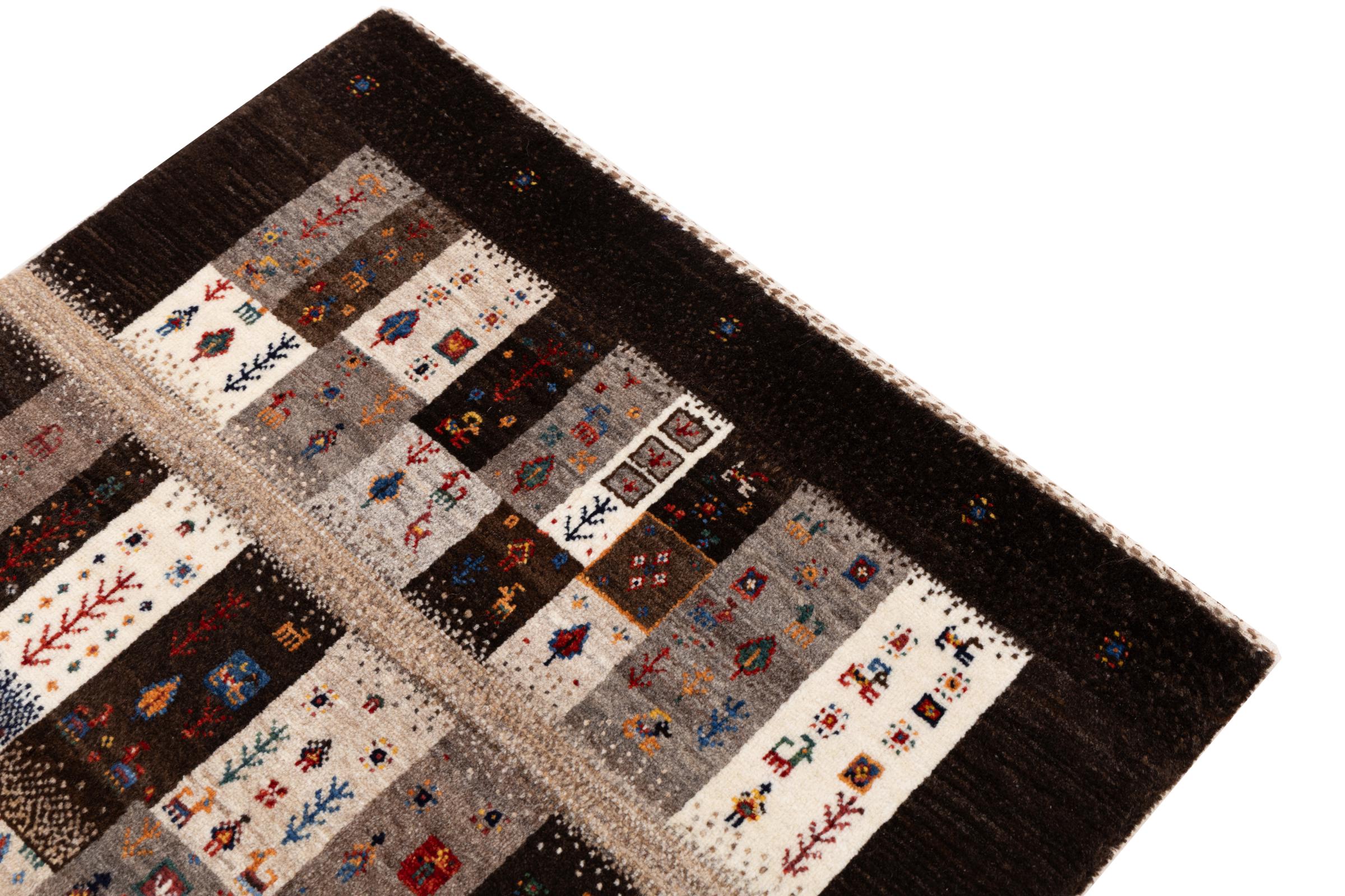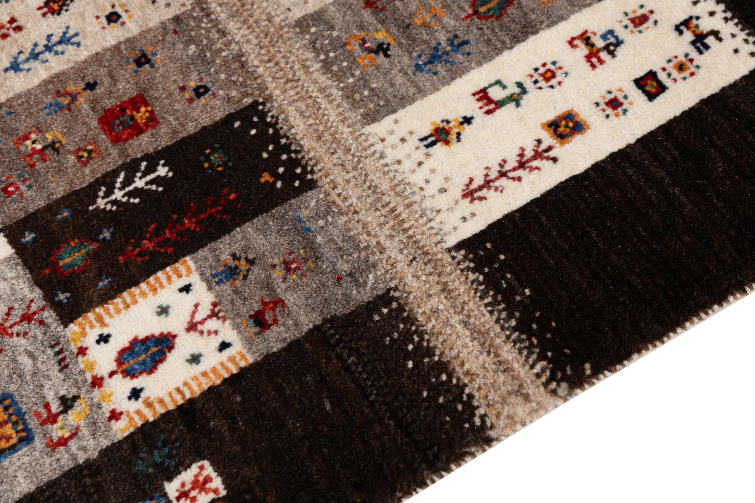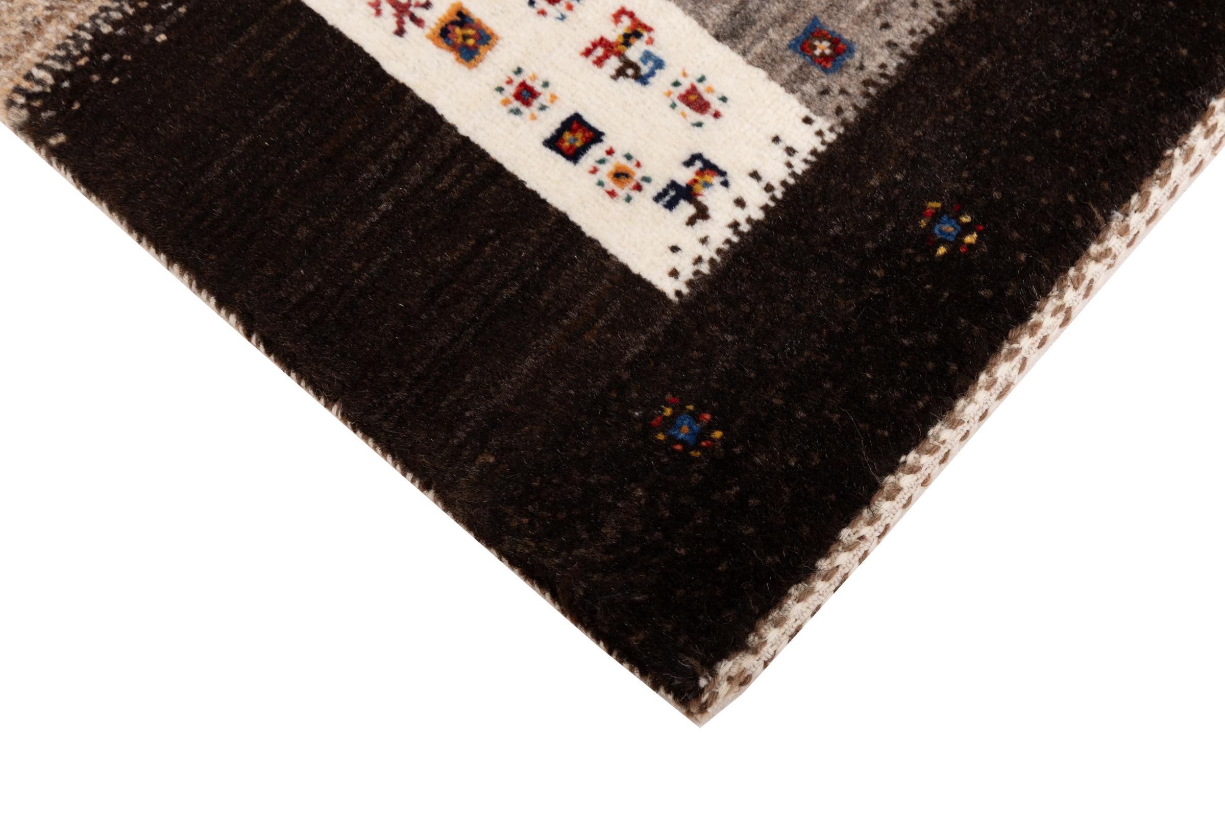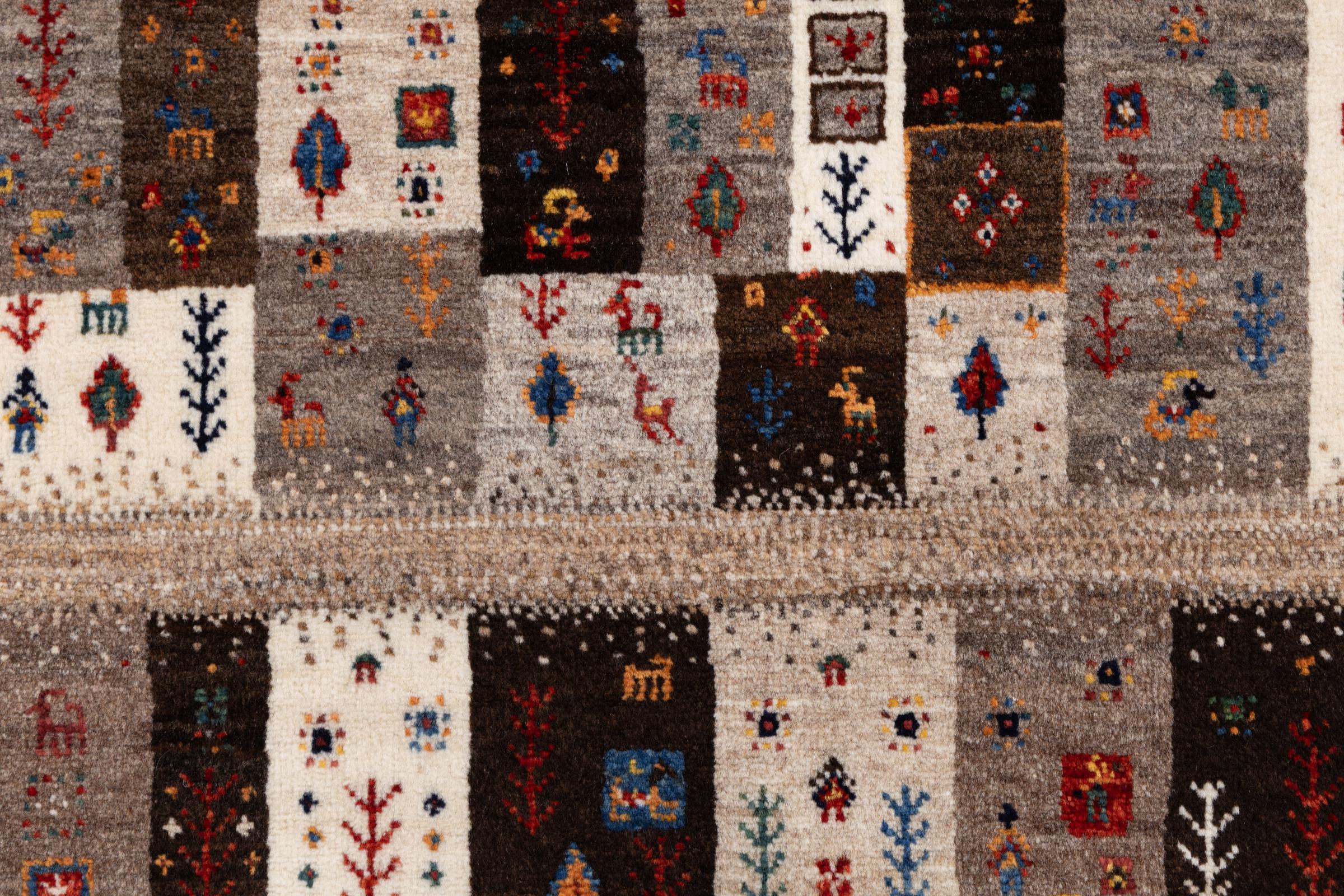 Dit prachtige tapijt is een Perzisch Gabbeh-tapijt en behoort daarom tot de hoogste kwaliteit Gabbeh-tapijten. De tapijten worden geknoopt door nomaden of semi-nomaden in Iran volgens traditioneel vakmanschap. De eenvoudige motieven en patronen zijn vooral geïnspireerd op de directe omgeving van de nomaden. Zo zijn er bijvoorbeeld kamelen, bomen of struiken te vinden op de traditionele tapijten. De Perzische Gabbeh-tapijten zijn gemaakt van wol van lokaal opgefokte kuddes schapen. De wol wordt dus meestal nog met de hand gesponnen. Elk van deze oosterse tapijten belichaamt dus een uniek karakter van de eeuwenoude cultuur.