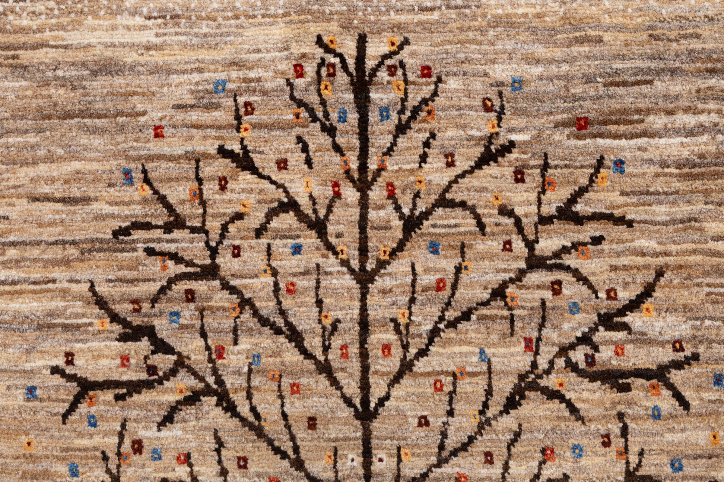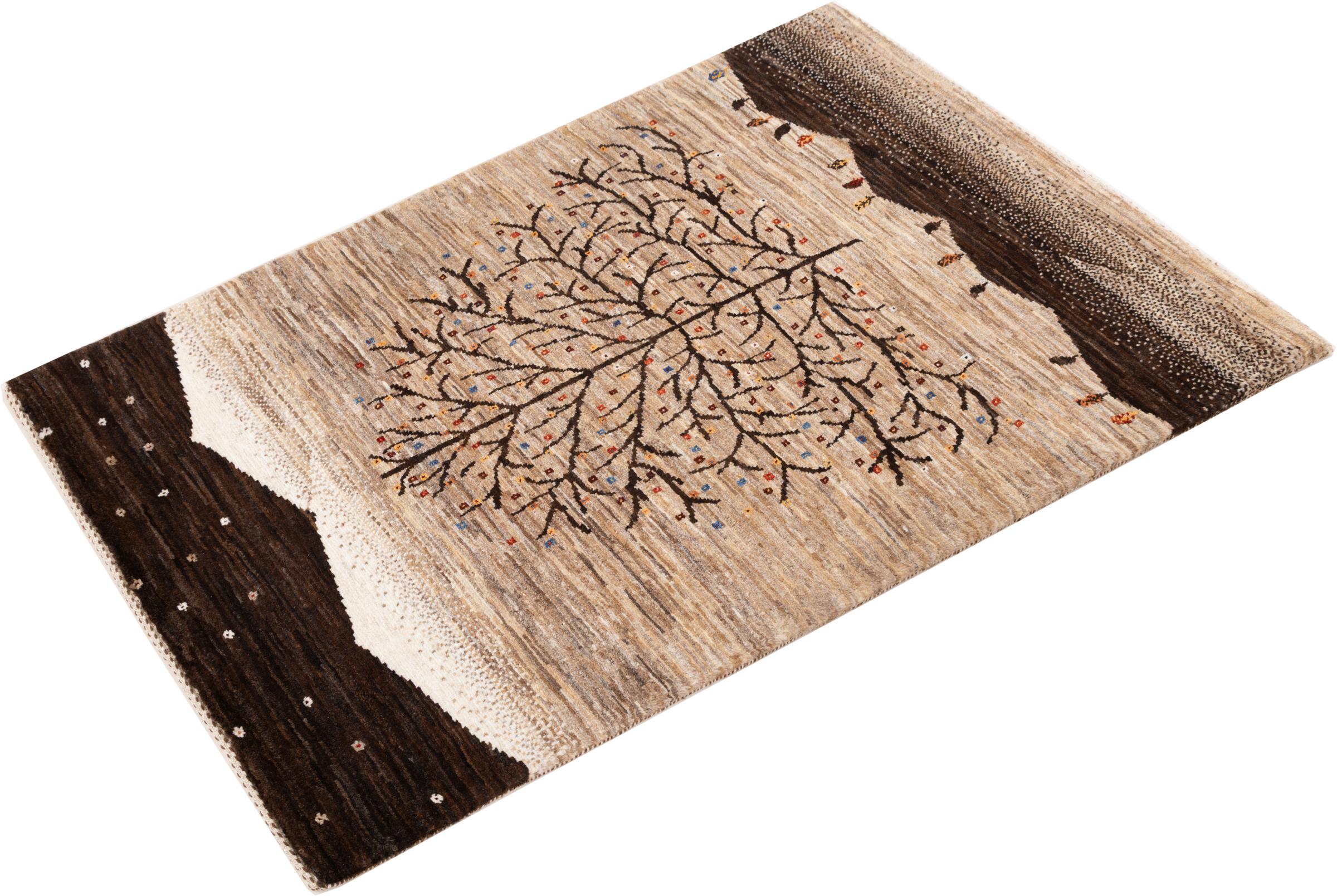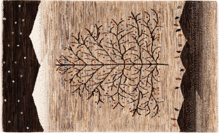 Dit prachtige tapijt is een Perzisch Gabbeh-tapijt en behoort daarom tot de hoogste kwaliteit Gabbeh-tapijten. De tapijten worden geknoopt door nomaden of semi-nomaden in Iran volgens traditioneel vakmanschap. De eenvoudige motieven en patronen zijn vooral geïnspireerd op de directe omgeving van de nomaden. Zo zijn er bijvoorbeeld kamelen, bomen of struiken te vinden op de traditionele tapijten. De Perzische Gabbeh-tapijten zijn gemaakt van wol van lokaal opgefokte kuddes schapen. De wol wordt dus meestal nog met de hand gesponnen. Elk van deze oosterse tapijten belichaamt dus een uniek karakter van de eeuwenoude cultuur.