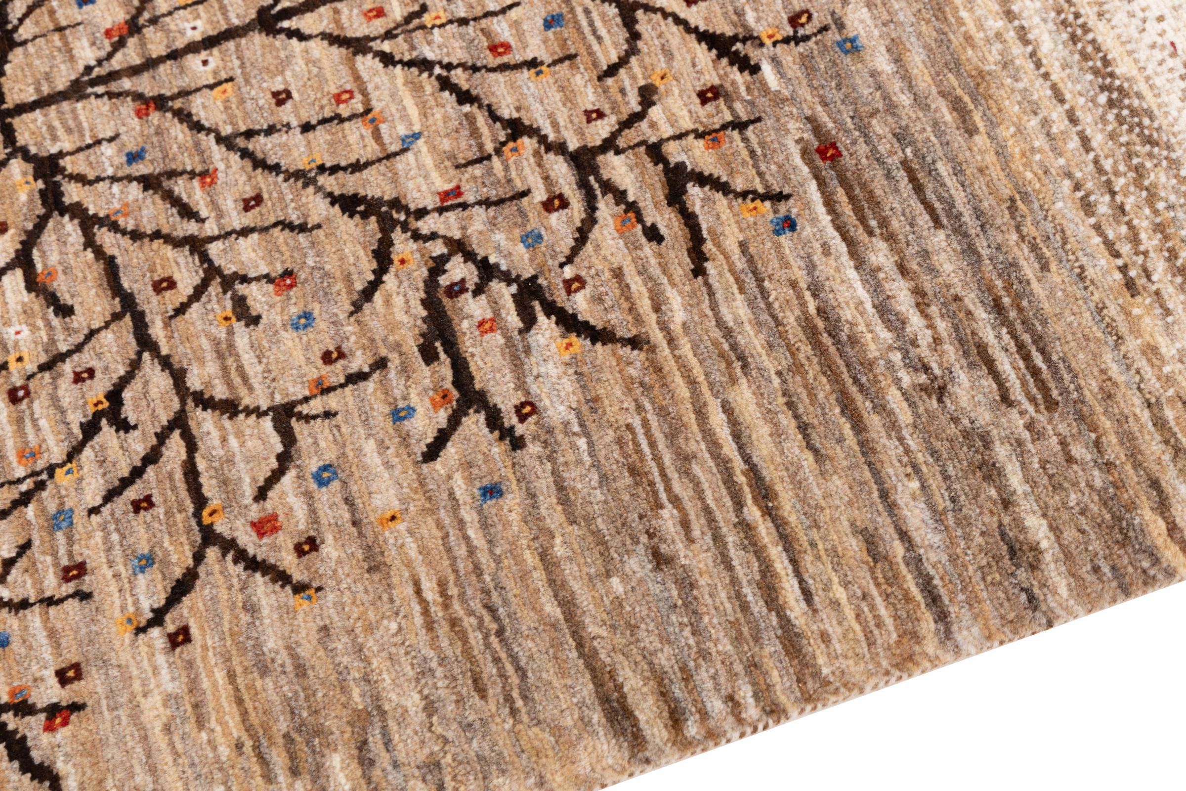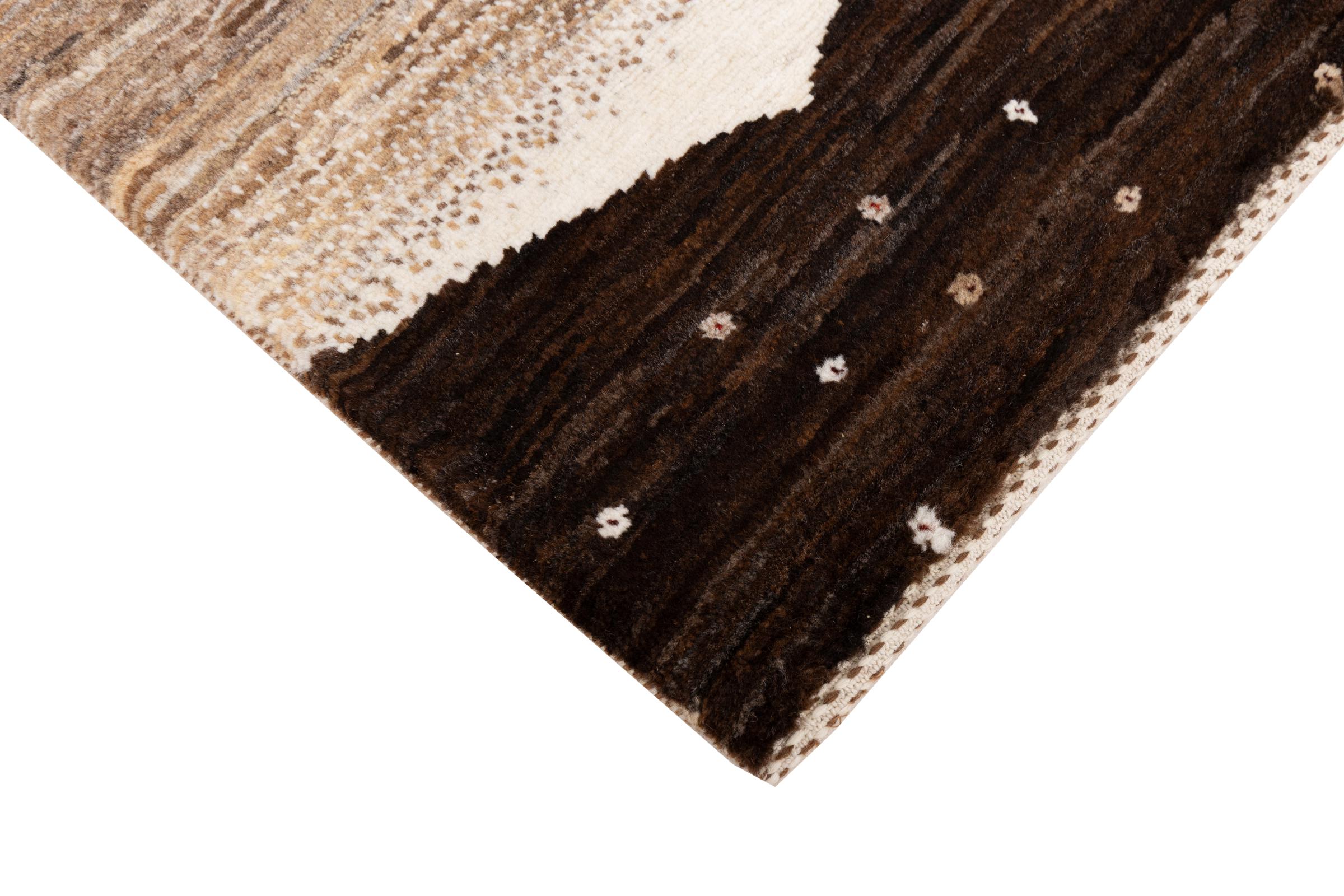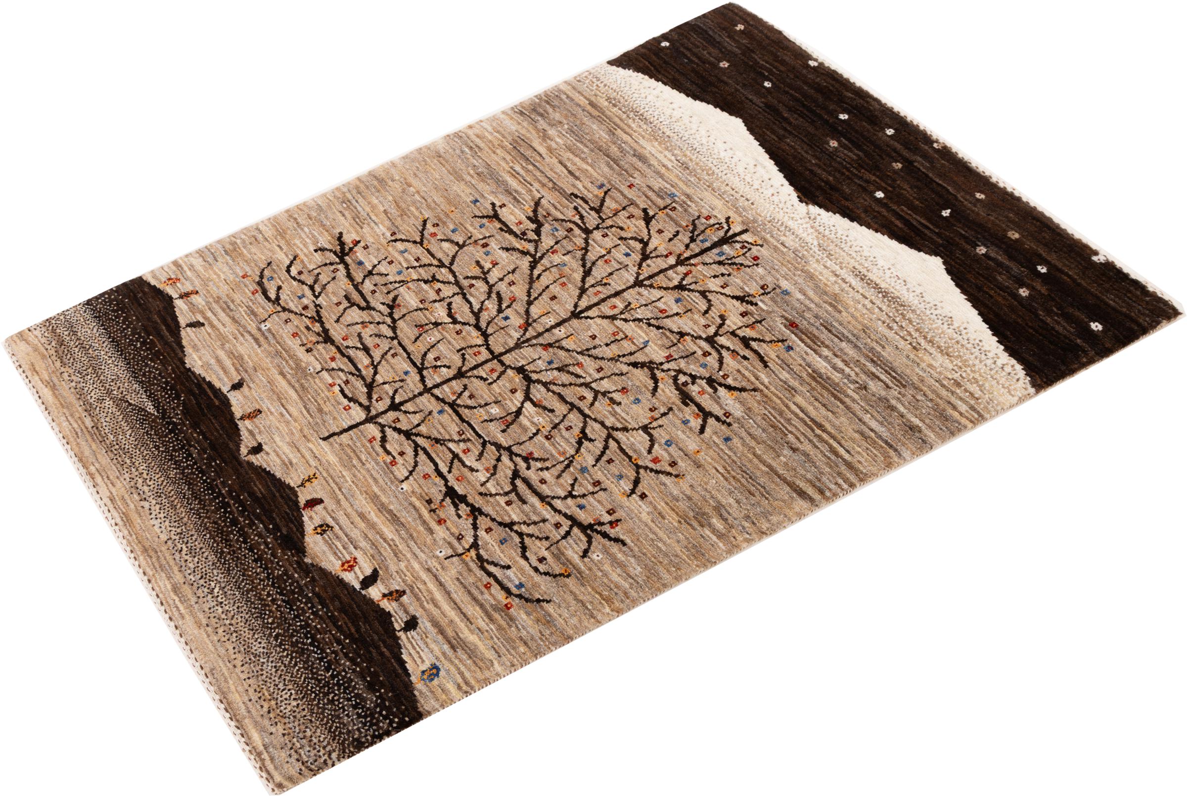 Dit prachtige tapijt is een Perzisch Gabbeh-tapijt en behoort daarom tot de hoogste kwaliteit Gabbeh-tapijten. De tapijten worden geknoopt door nomaden of semi-nomaden in Iran volgens traditioneel vakmanschap. De eenvoudige motieven en patronen zijn vooral geïnspireerd op de directe omgeving van de nomaden. Zo zijn er bijvoorbeeld kamelen, bomen of struiken te vinden op de traditionele tapijten. De Perzische Gabbeh-tapijten zijn gemaakt van wol van lokaal opgefokte kuddes schapen. De wol wordt dus meestal nog met de hand gesponnen. Elk van deze oosterse tapijten belichaamt dus een uniek karakter van de eeuwenoude cultuur.