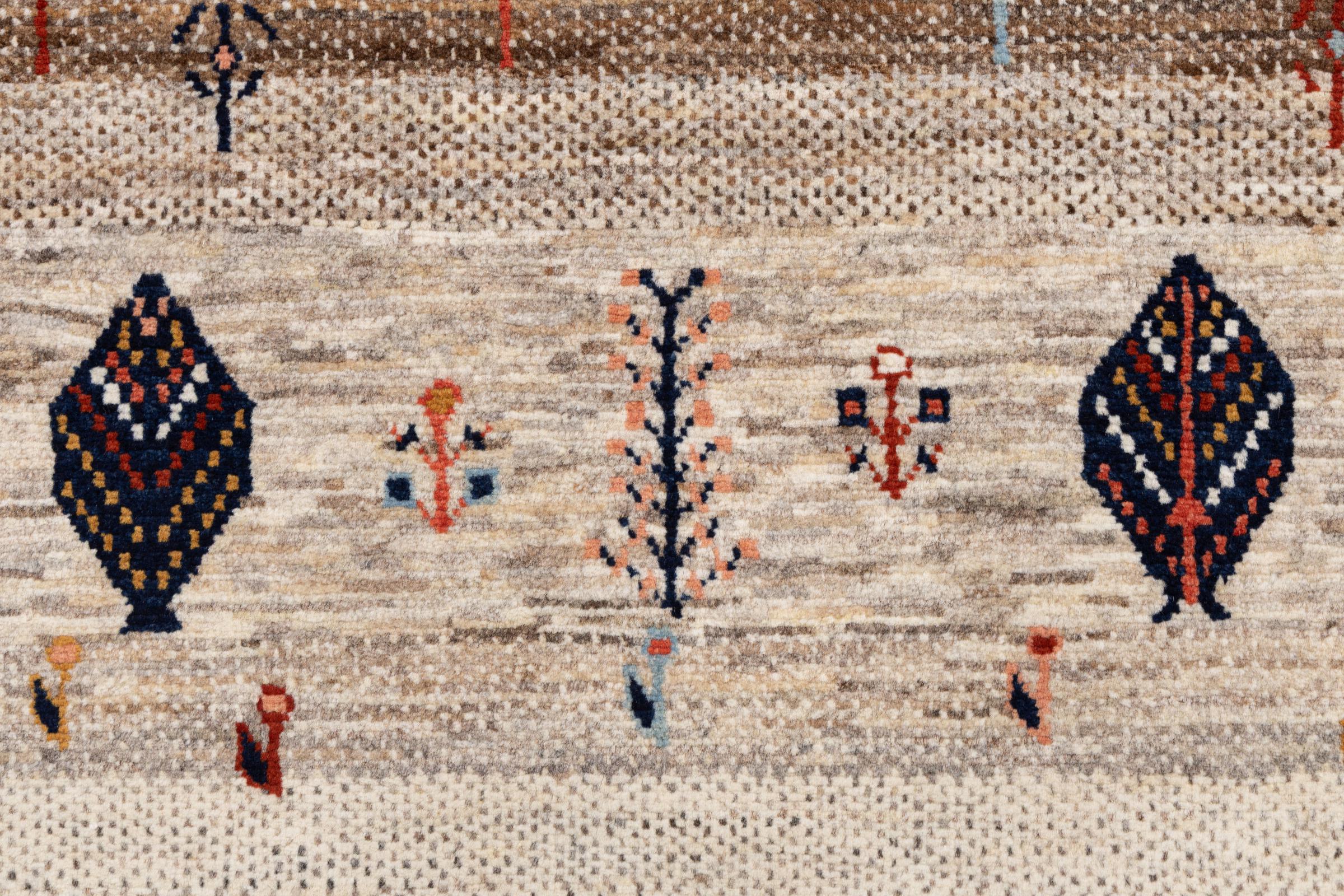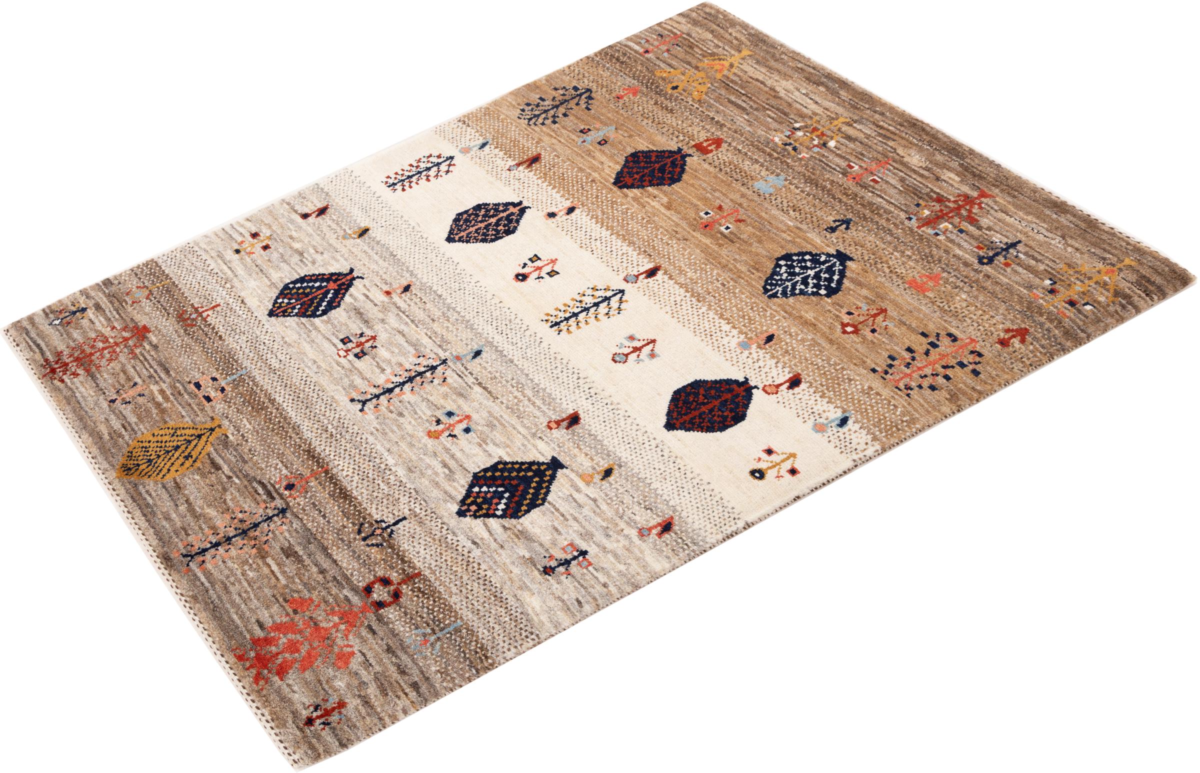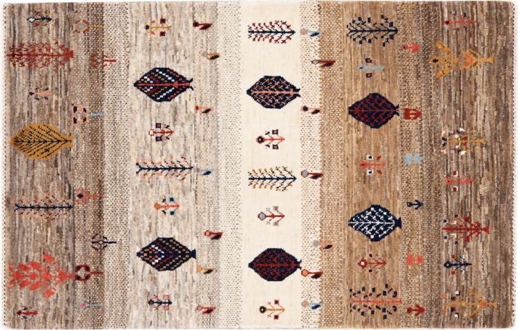 Dit prachtige tapijt is een Perzisch Gabbeh-tapijt en behoort daarom tot de hoogste kwaliteit Gabbeh-tapijten. De tapijten worden geknoopt door nomaden of semi-nomaden in Iran volgens traditioneel vakmanschap. De eenvoudige motieven en patronen zijn vooral geïnspireerd op de directe omgeving van de nomaden. Zo zijn er bijvoorbeeld kamelen, bomen of struiken te vinden op de traditionele tapijten. De Perzische Gabbeh-tapijten zijn gemaakt van wol van lokaal opgefokte kuddes schapen. De wol wordt dus meestal nog met de hand gesponnen. Elk van deze oosterse tapijten belichaamt dus een uniek karakter van de eeuwenoude cultuur.