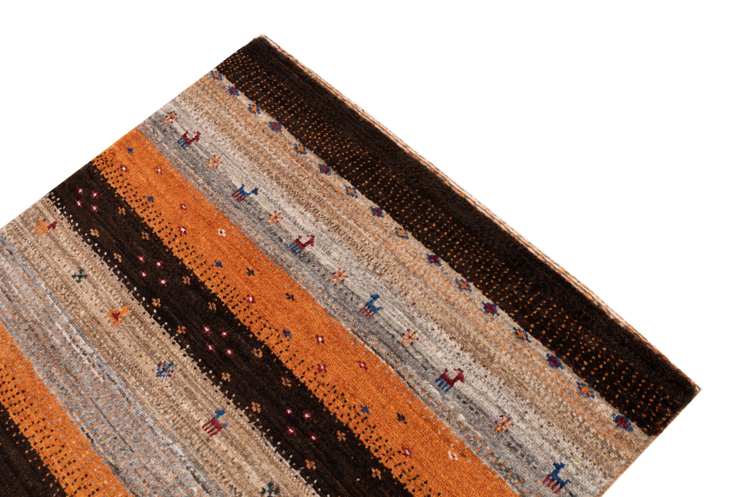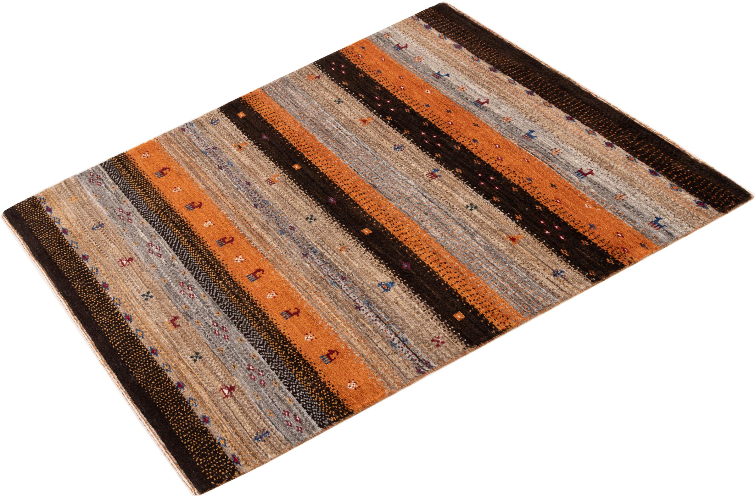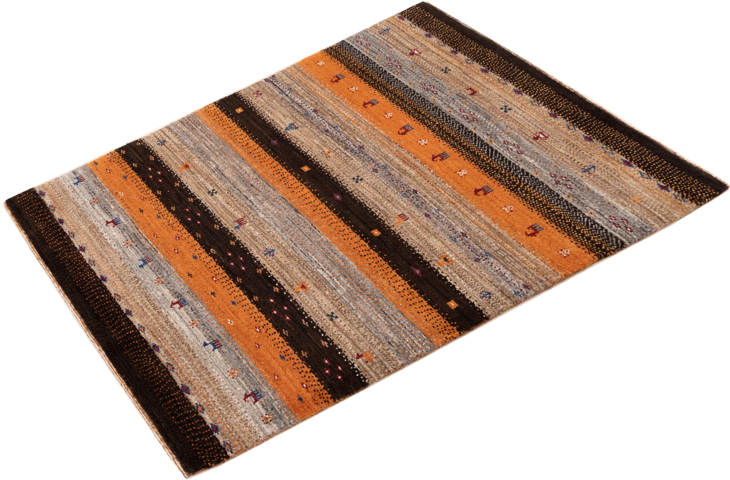 Een verfijning van de al bekende Gabbeh-tapijten: Dit is deze Perzische Gabbeh Loribaft. Het weet indruk te maken met zijn fijnere weefsel en prachtige ontwerp. Het werd door Loren in het zuiden van Perzië met de hand geknoopt van de beste handgesponnen schapenwol. Voor het verven van de wol worden uitsluitend pure plantaardige kleurstoffen gebruikt. Met dit vloerkleed haal je de hoogste standaard van een Gabbeh-tapijt in huis.