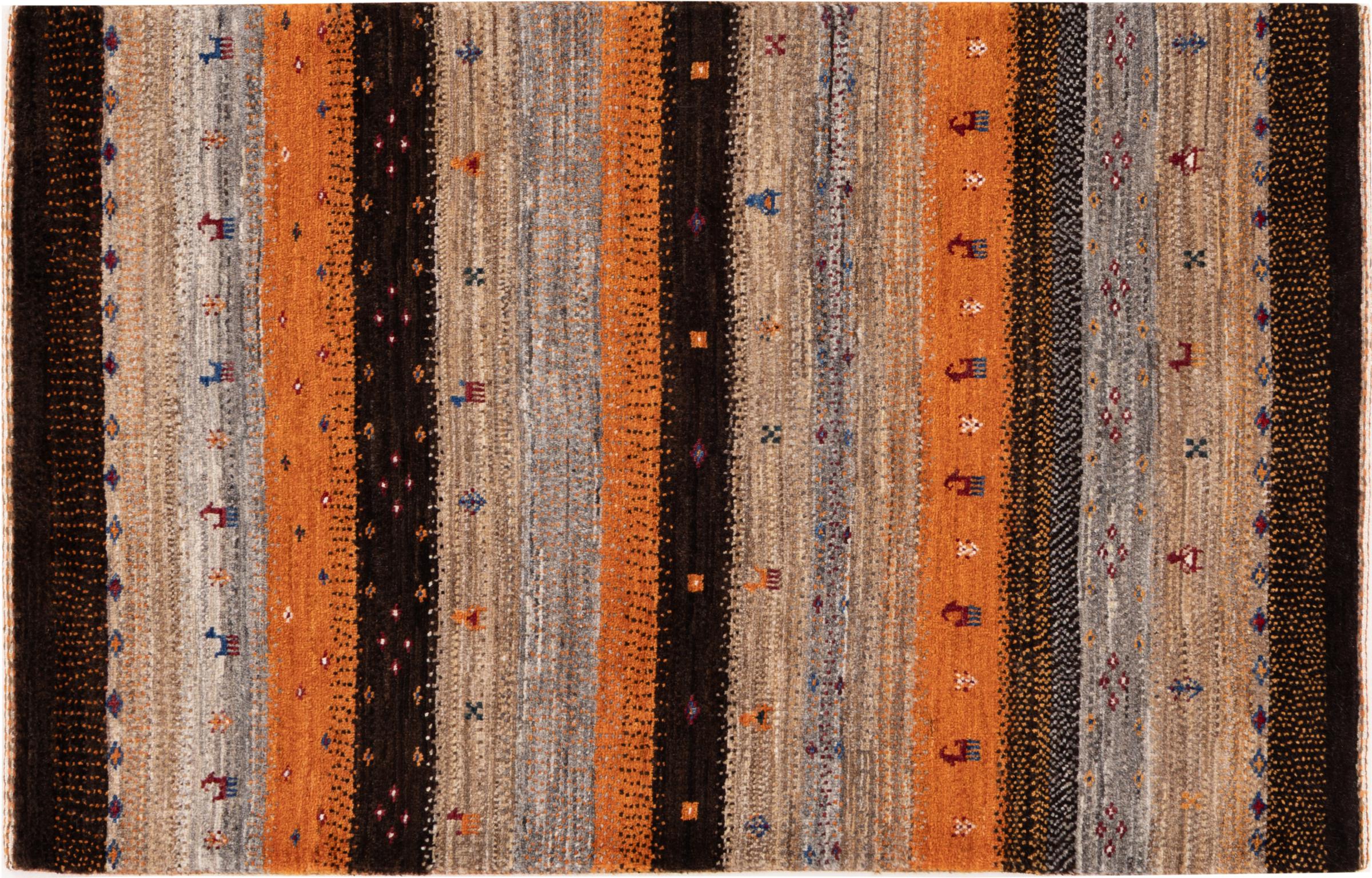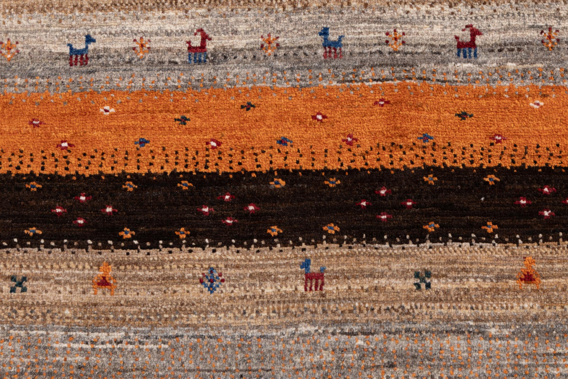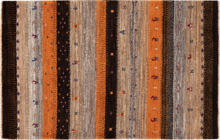 Dit prachtige tapijt is een Perzisch Gabbeh-tapijt en behoort daarom tot de hoogste kwaliteit Gabbeh-tapijten. De tapijten worden geknoopt door nomaden of semi-nomaden in Iran volgens traditioneel vakmanschap. De eenvoudige motieven en patronen zijn vooral geïnspireerd op de directe omgeving van de nomaden. Zo zijn er bijvoorbeeld kamelen, bomen of struiken te vinden op de traditionele tapijten. De Perzische Gabbeh-tapijten zijn gemaakt van wol van lokaal opgefokte kuddes schapen. De wol wordt dus meestal nog met de hand gesponnen. Elk van deze oosterse tapijten belichaamt dus een uniek karakter van de eeuwenoude cultuur.