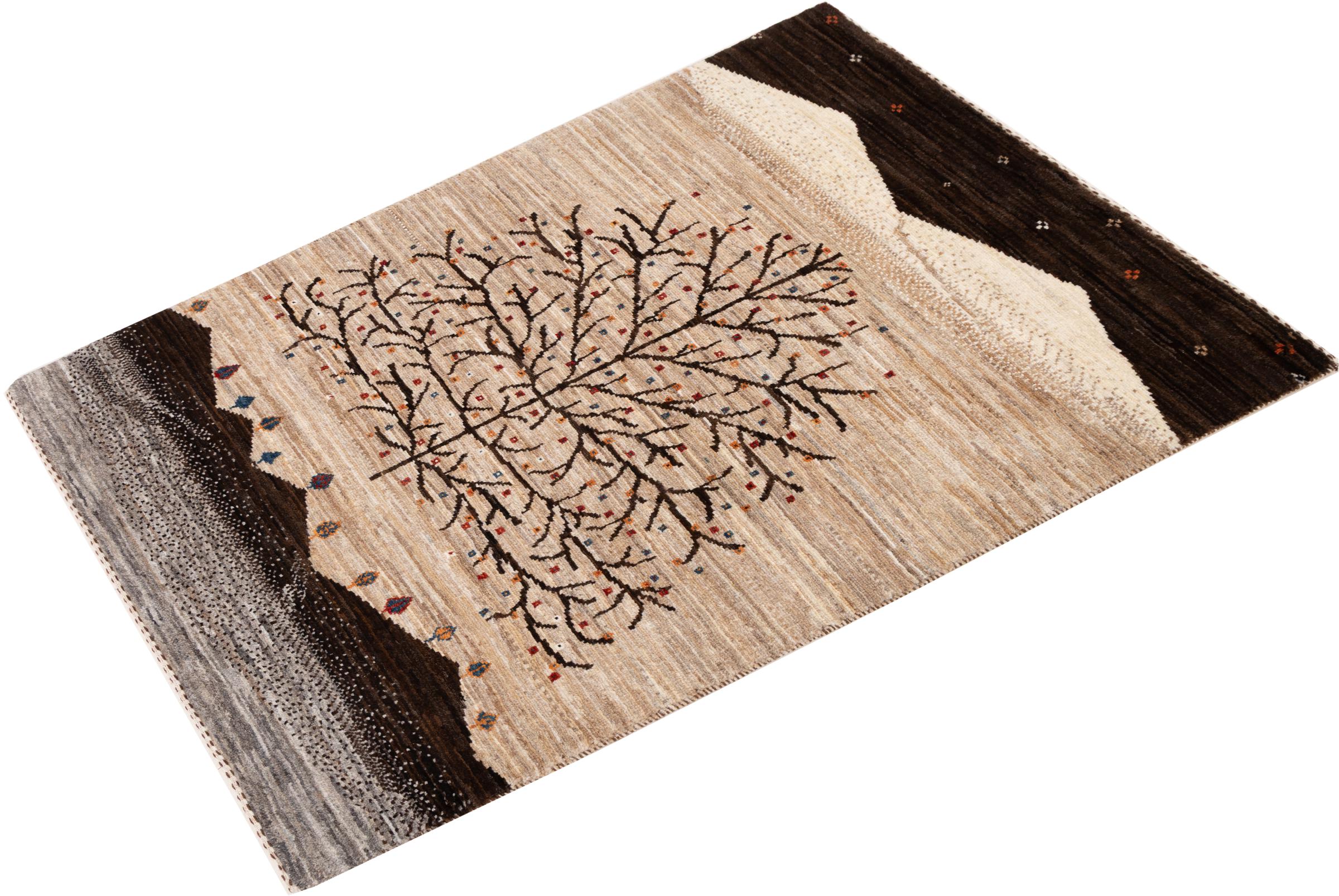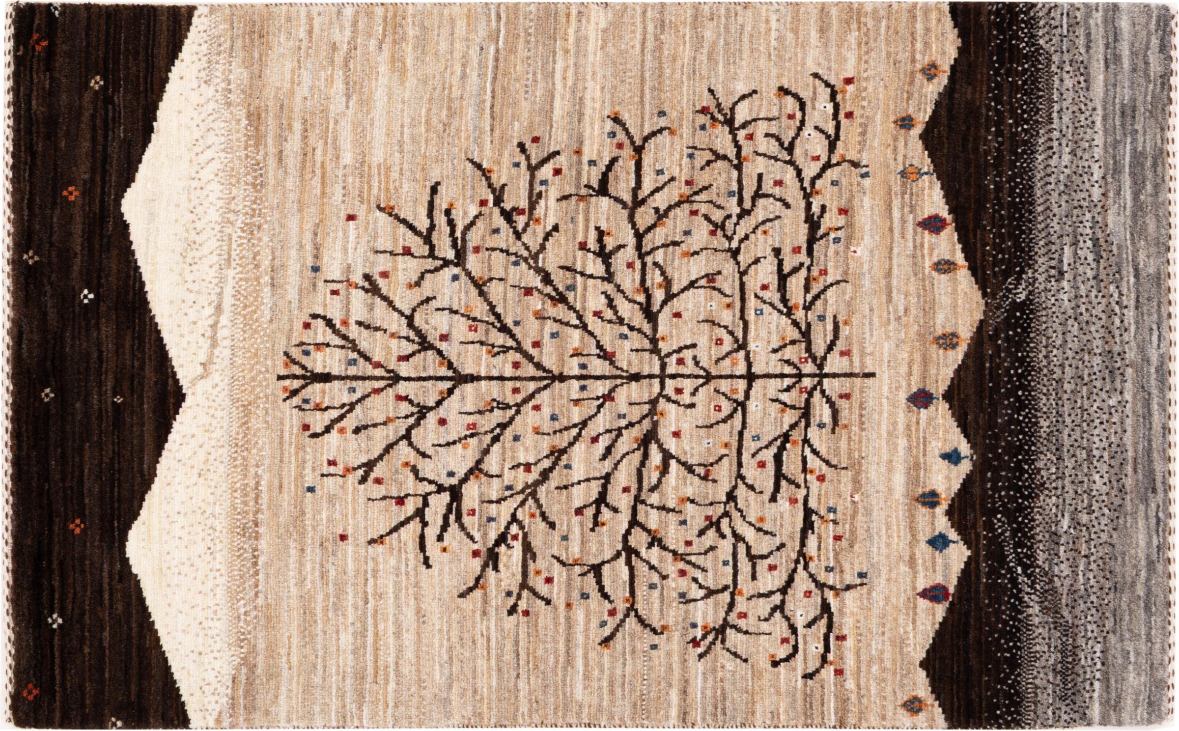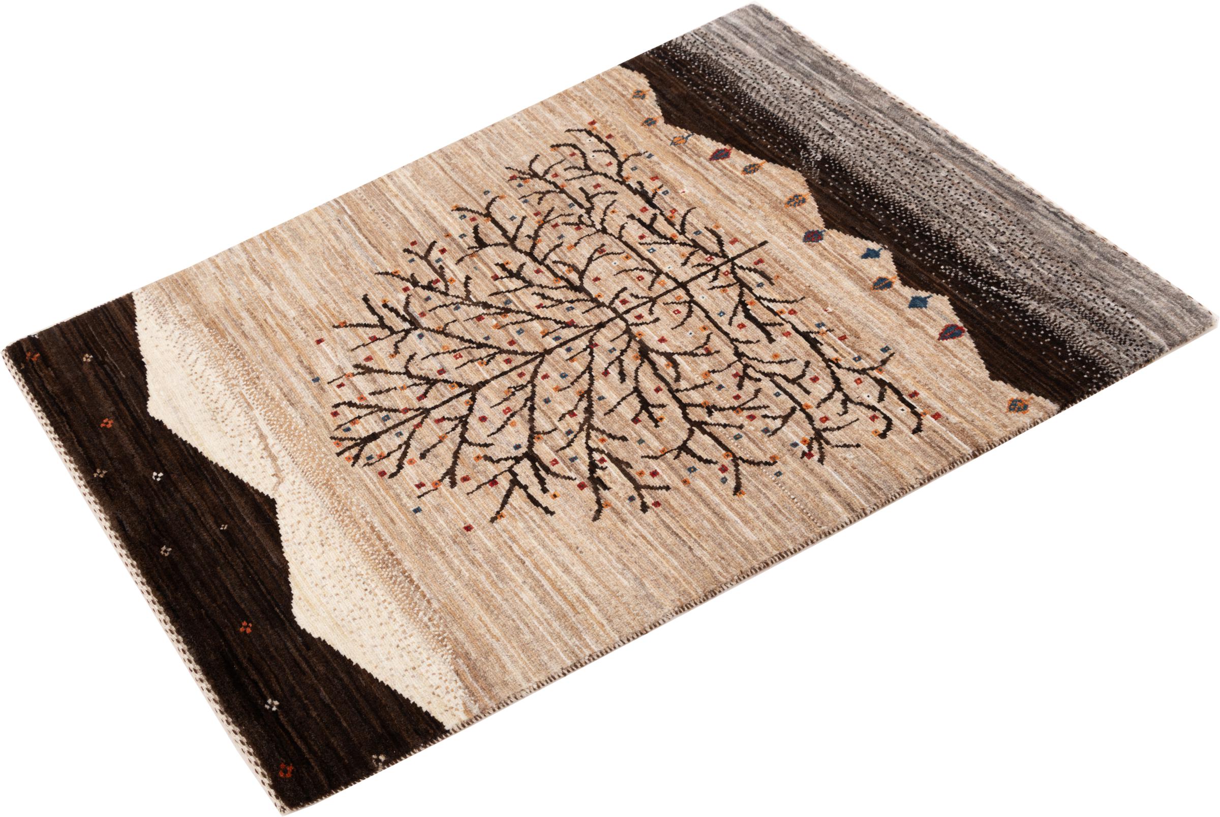 Dit prachtige tapijt is een Perzisch Gabbeh-tapijt en behoort daarom tot de hoogste kwaliteit Gabbeh-tapijten. De tapijten worden geknoopt door nomaden of semi-nomaden in Iran volgens traditioneel vakmanschap. De eenvoudige motieven en patronen zijn vooral geïnspireerd op de directe omgeving van de nomaden. Zo zijn er bijvoorbeeld kamelen, bomen of struiken te vinden op de traditionele tapijten. De Perzische Gabbeh-tapijten zijn gemaakt van wol van lokaal opgefokte kuddes schapen. De wol wordt dus meestal nog met de hand gesponnen. Elk van deze oosterse tapijten belichaamt dus een uniek karakter van de eeuwenoude cultuur.