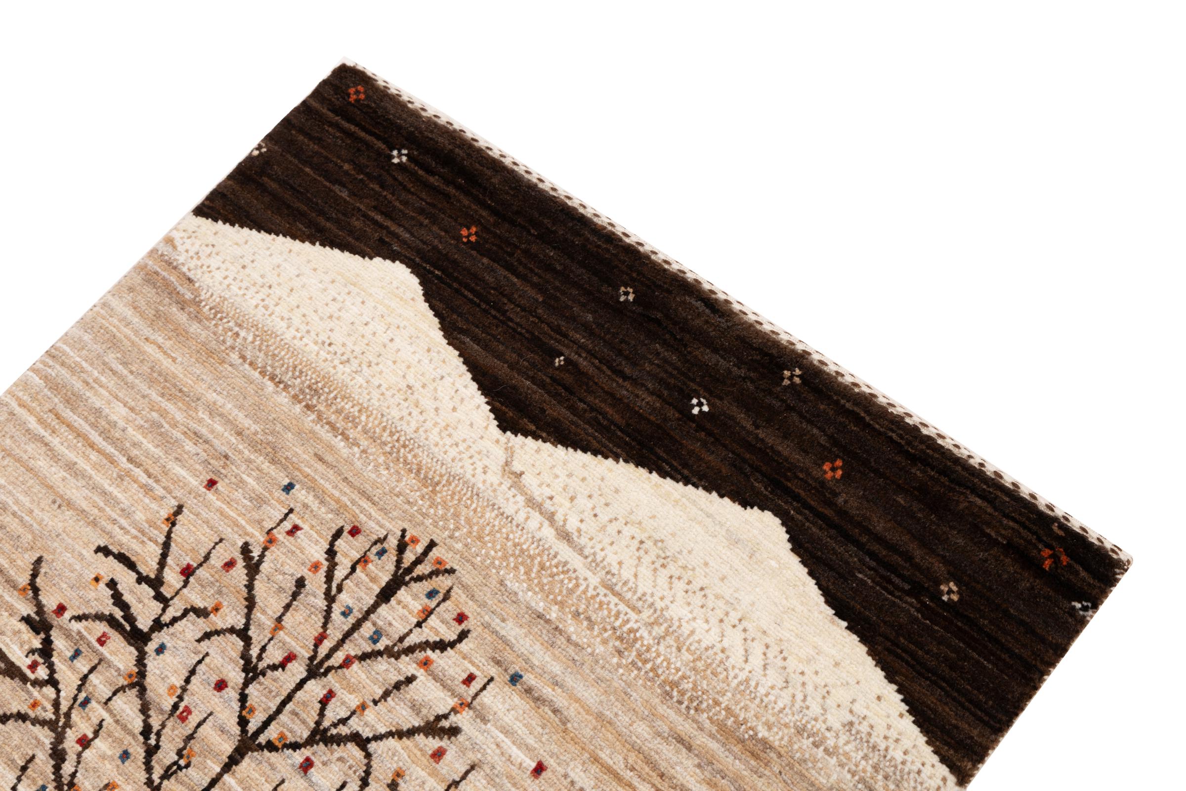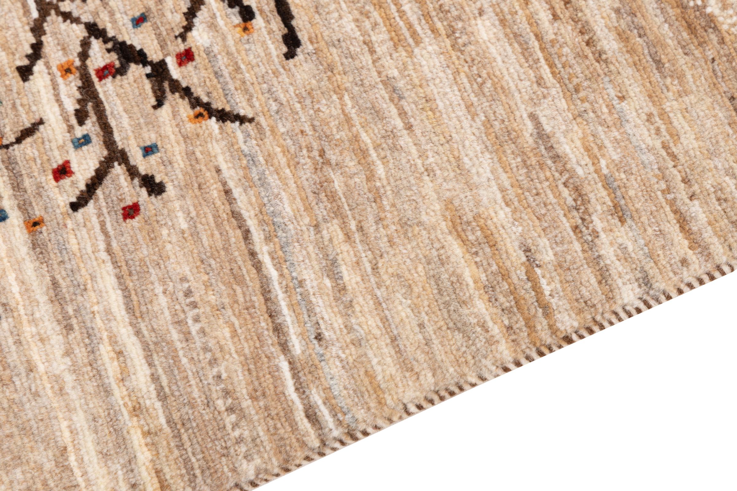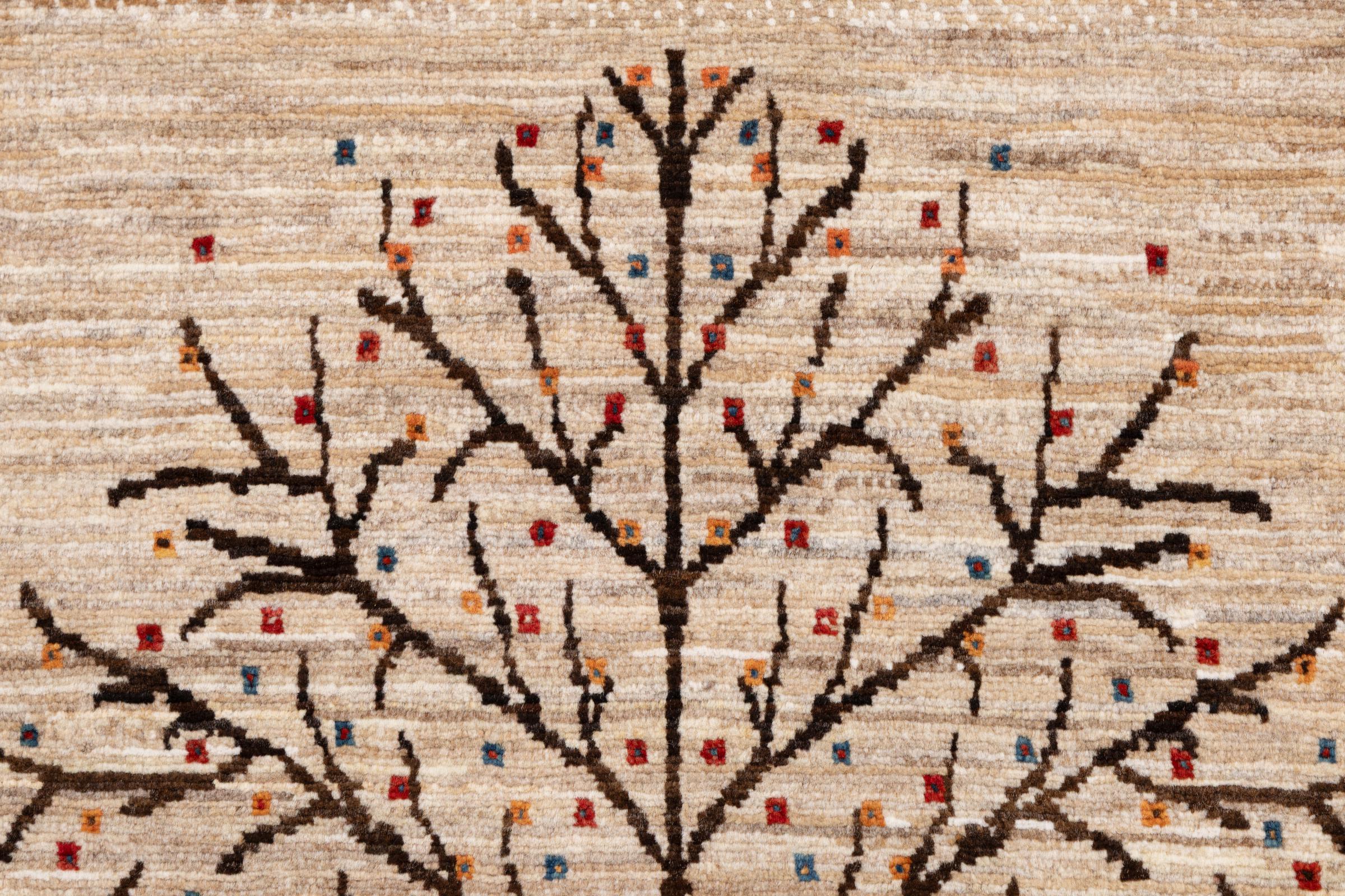 Dit prachtige tapijt is een Perzisch Gabbeh-tapijt en behoort daarom tot de hoogste kwaliteit Gabbeh-tapijten. De tapijten worden geknoopt door nomaden of semi-nomaden in Iran volgens traditioneel vakmanschap. De eenvoudige motieven en patronen zijn vooral geïnspireerd op de directe omgeving van de nomaden. Zo zijn er bijvoorbeeld kamelen, bomen of struiken te vinden op de traditionele tapijten. De Perzische Gabbeh-tapijten zijn gemaakt van wol van lokaal opgefokte kuddes schapen. De wol wordt dus meestal nog met de hand gesponnen. Elk van deze oosterse tapijten belichaamt dus een uniek karakter van de eeuwenoude cultuur.