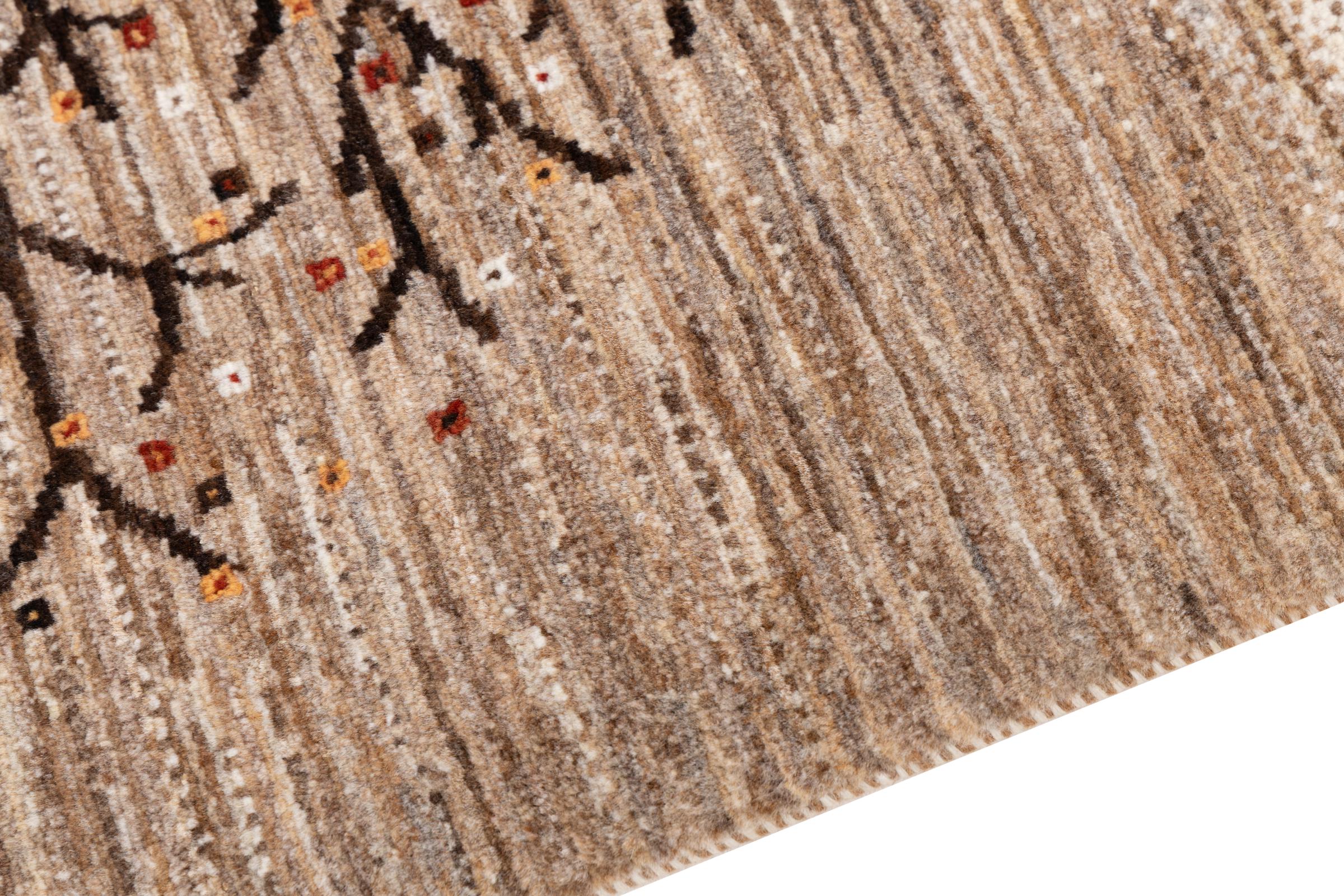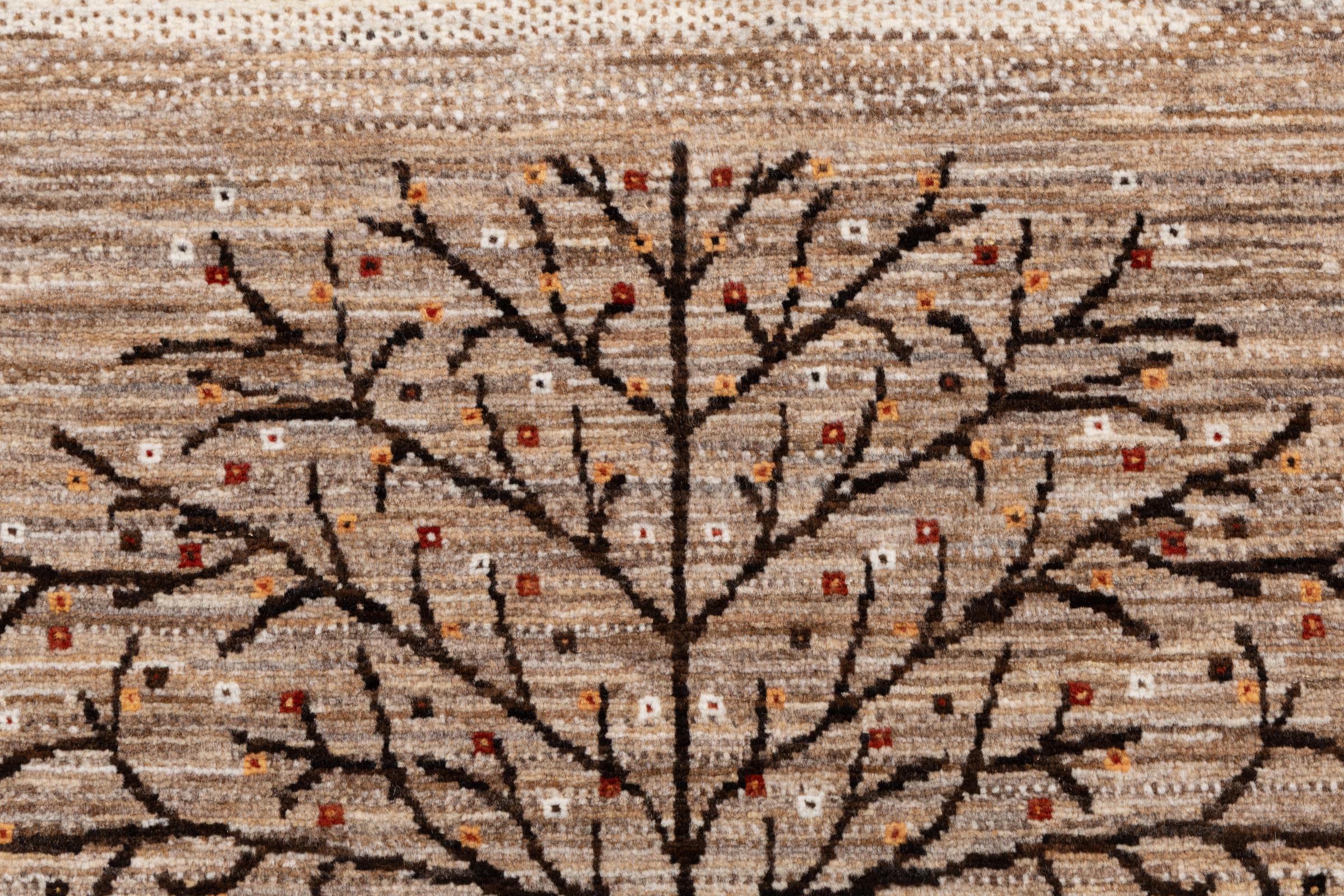 Dit prachtige tapijt is een Perzisch Gabbeh-tapijt en behoort daarom tot de hoogste kwaliteit Gabbeh-tapijten. De tapijten worden geknoopt door nomaden of semi-nomaden in Iran volgens traditioneel vakmanschap. De eenvoudige motieven en patronen zijn vooral geïnspireerd op de directe omgeving van de nomaden. Zo zijn er bijvoorbeeld kamelen, bomen of struiken te vinden op de traditionele tapijten. De Perzische Gabbeh-tapijten zijn gemaakt van wol van lokaal opgefokte kuddes schapen. De wol wordt dus meestal nog met de hand gesponnen. Elk van deze oosterse tapijten belichaamt dus een uniek karakter van de eeuwenoude cultuur.