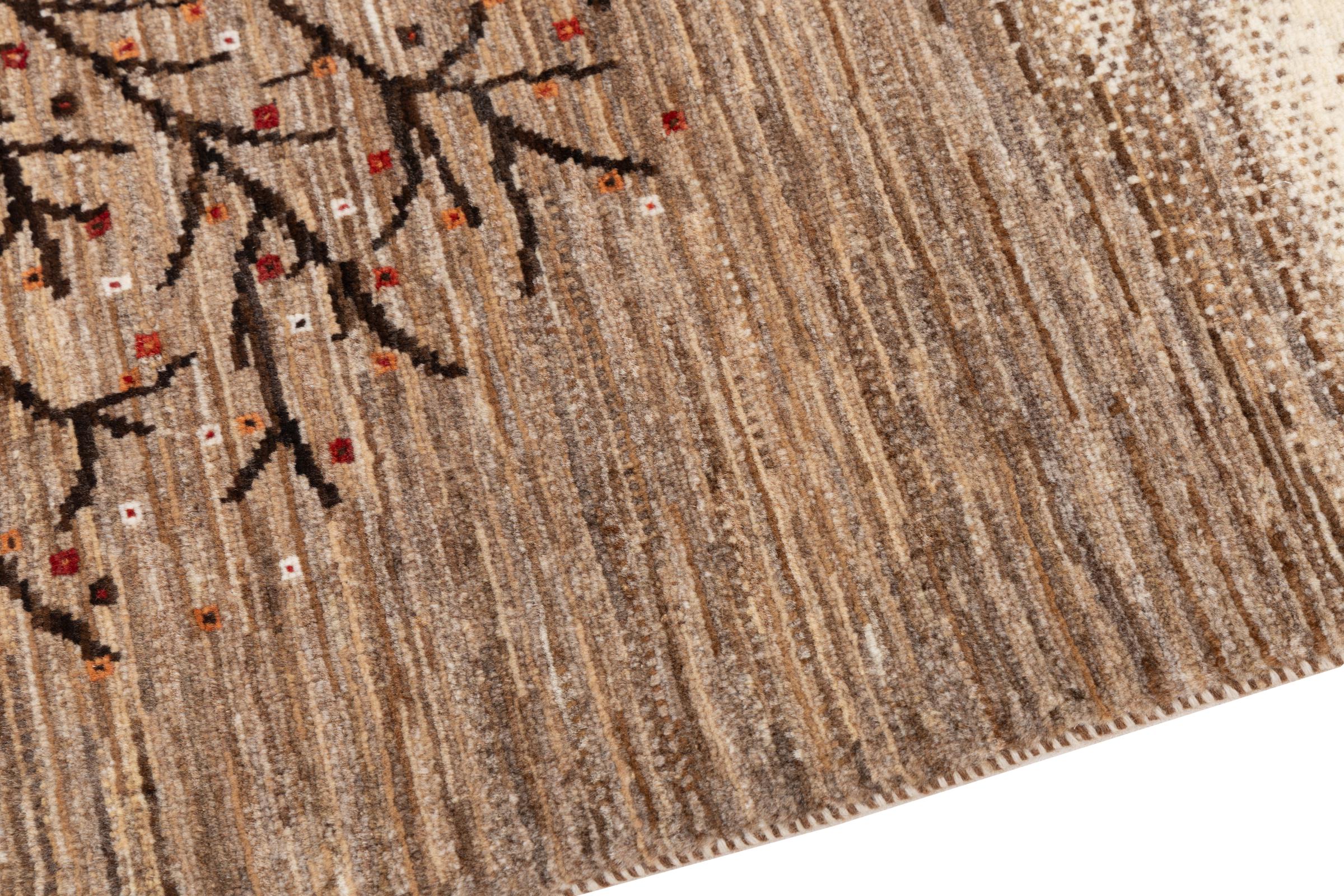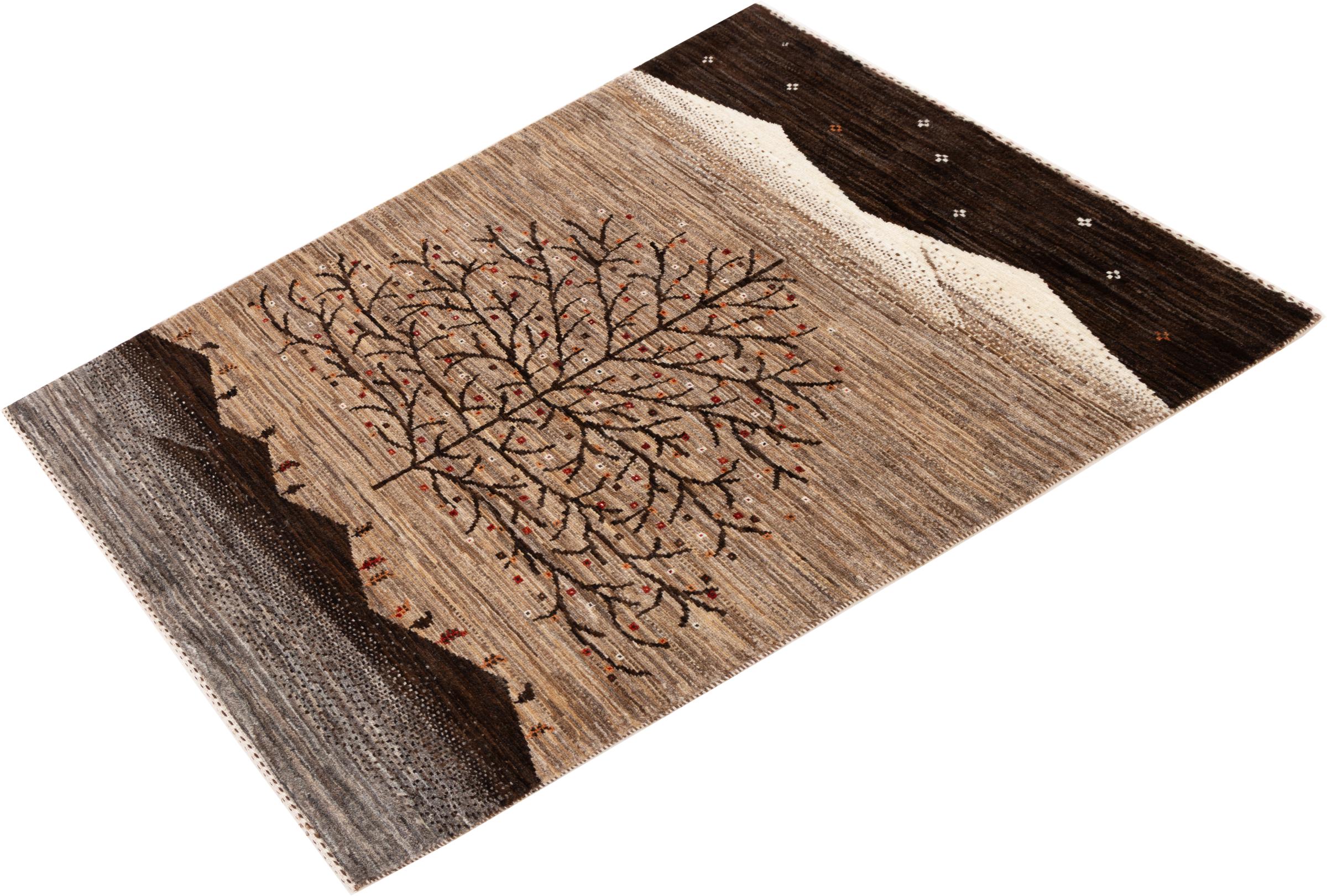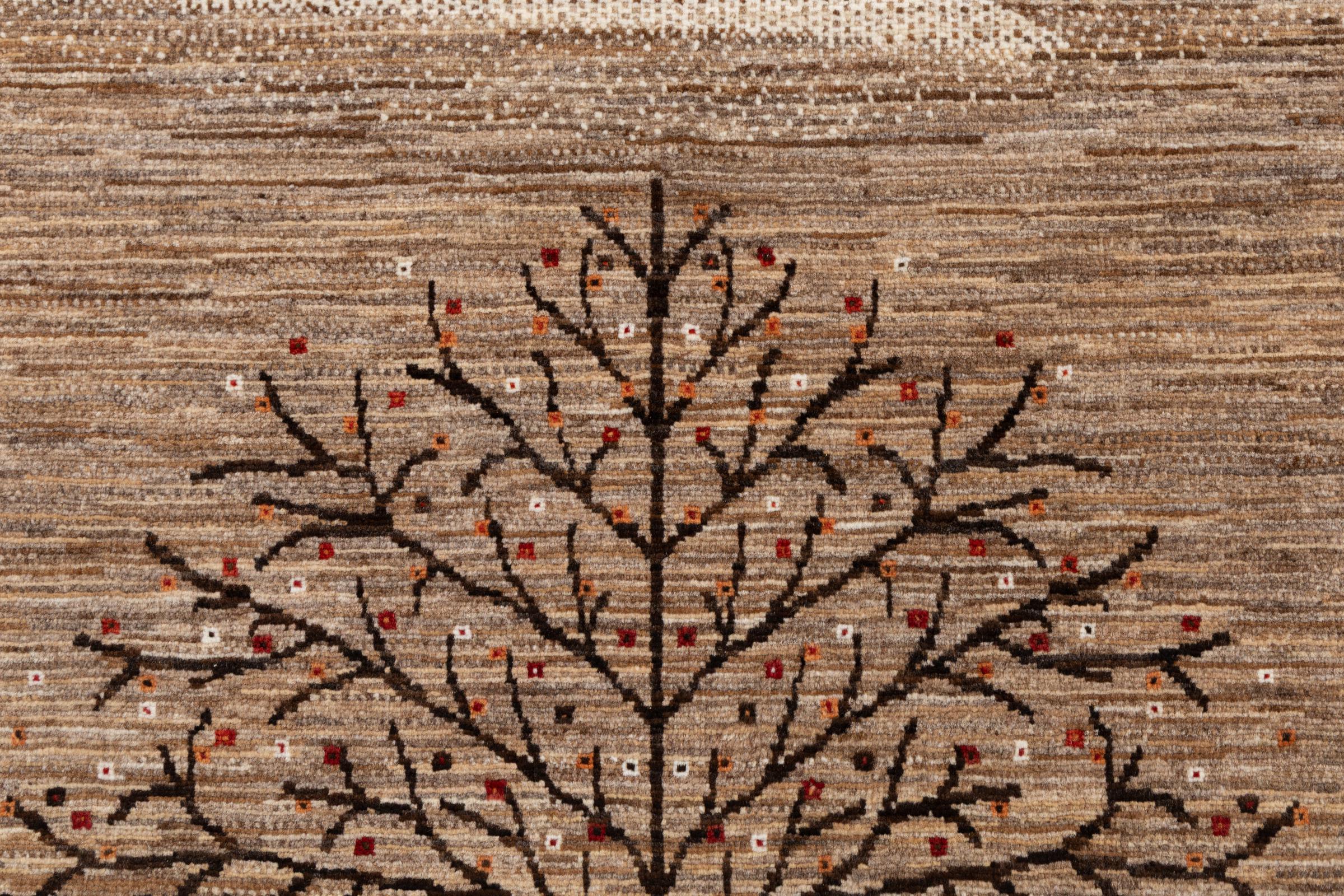 Dit prachtige tapijt is een Perzisch Gabbeh-tapijt en behoort daarom tot de hoogste kwaliteit Gabbeh-tapijten. De tapijten worden geknoopt door nomaden of semi-nomaden in Iran volgens traditioneel vakmanschap. De eenvoudige motieven en patronen zijn vooral geïnspireerd op de directe omgeving van de nomaden. Zo zijn er bijvoorbeeld kamelen, bomen of struiken te vinden op de traditionele tapijten. De Perzische Gabbeh-tapijten zijn gemaakt van wol van lokaal opgefokte kuddes schapen. De wol wordt dus meestal nog met de hand gesponnen. Elk van deze oosterse tapijten belichaamt dus een uniek karakter van de eeuwenoude cultuur.