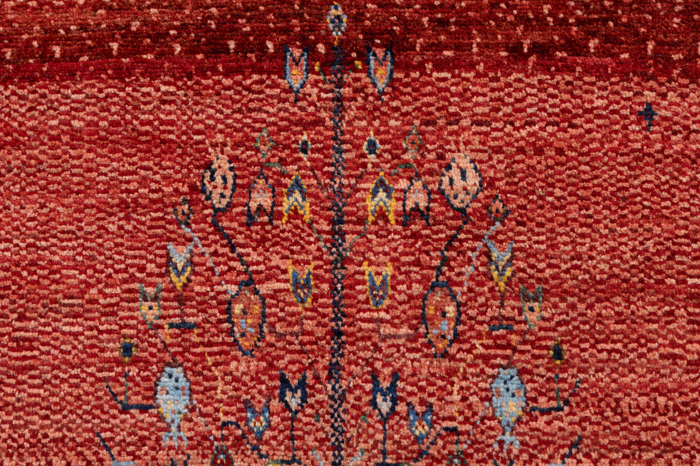 Een verfijning van de al bekende Gabbeh-tapijten: Dit is deze Perzische Gabbeh Loribaft. Het weet indruk te maken met zijn fijnere weefsel en prachtige ontwerp. Het werd door Loren in het zuiden van Perzië met de hand geknoopt van de beste handgesponnen schapenwol. Voor het verven van de wol worden uitsluitend pure plantaardige kleurstoffen gebruikt. Met dit vloerkleed haal je de hoogste standaard van een Gabbeh-tapijt in huis.