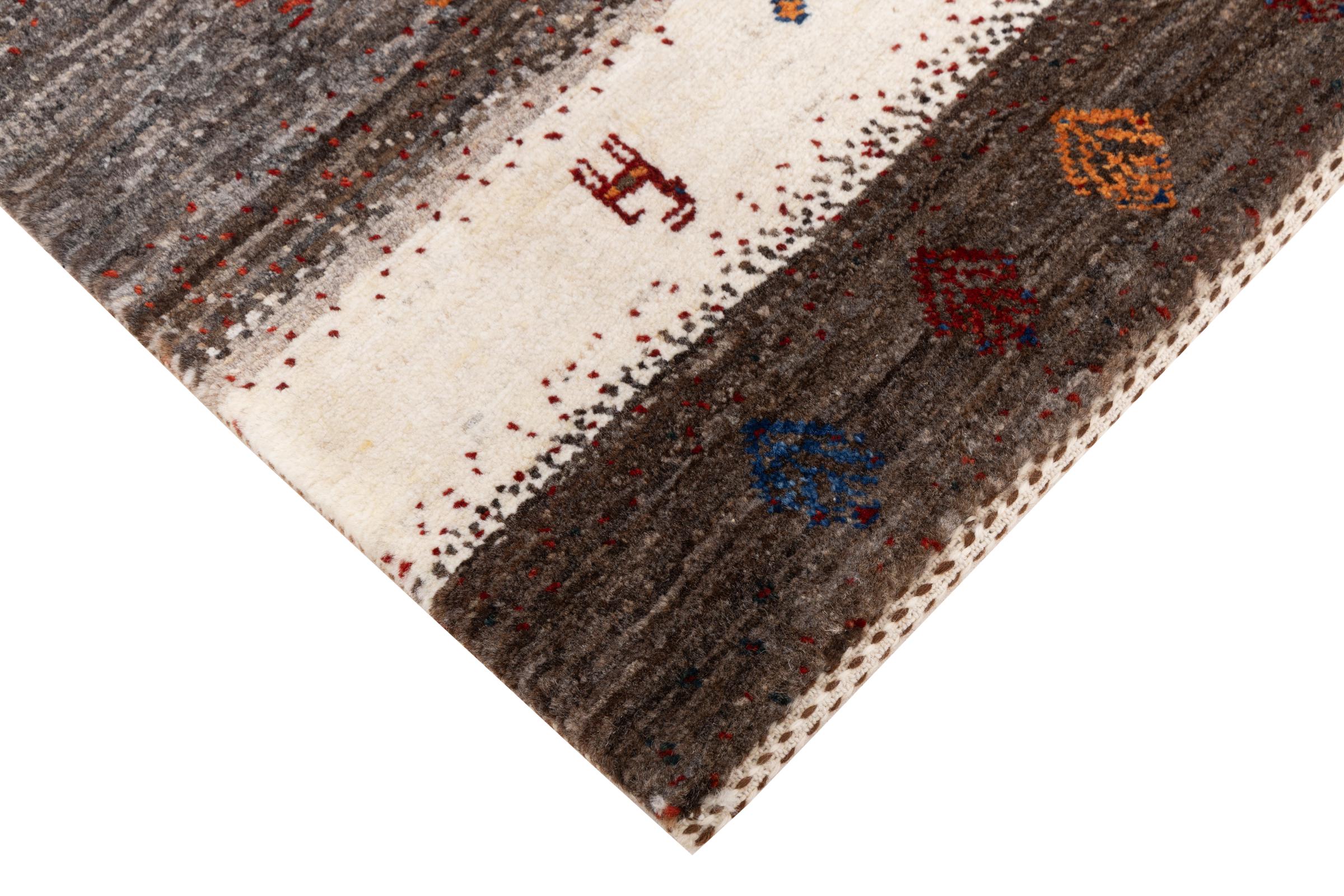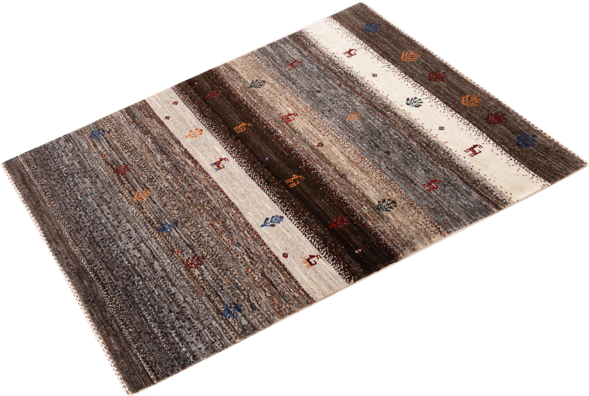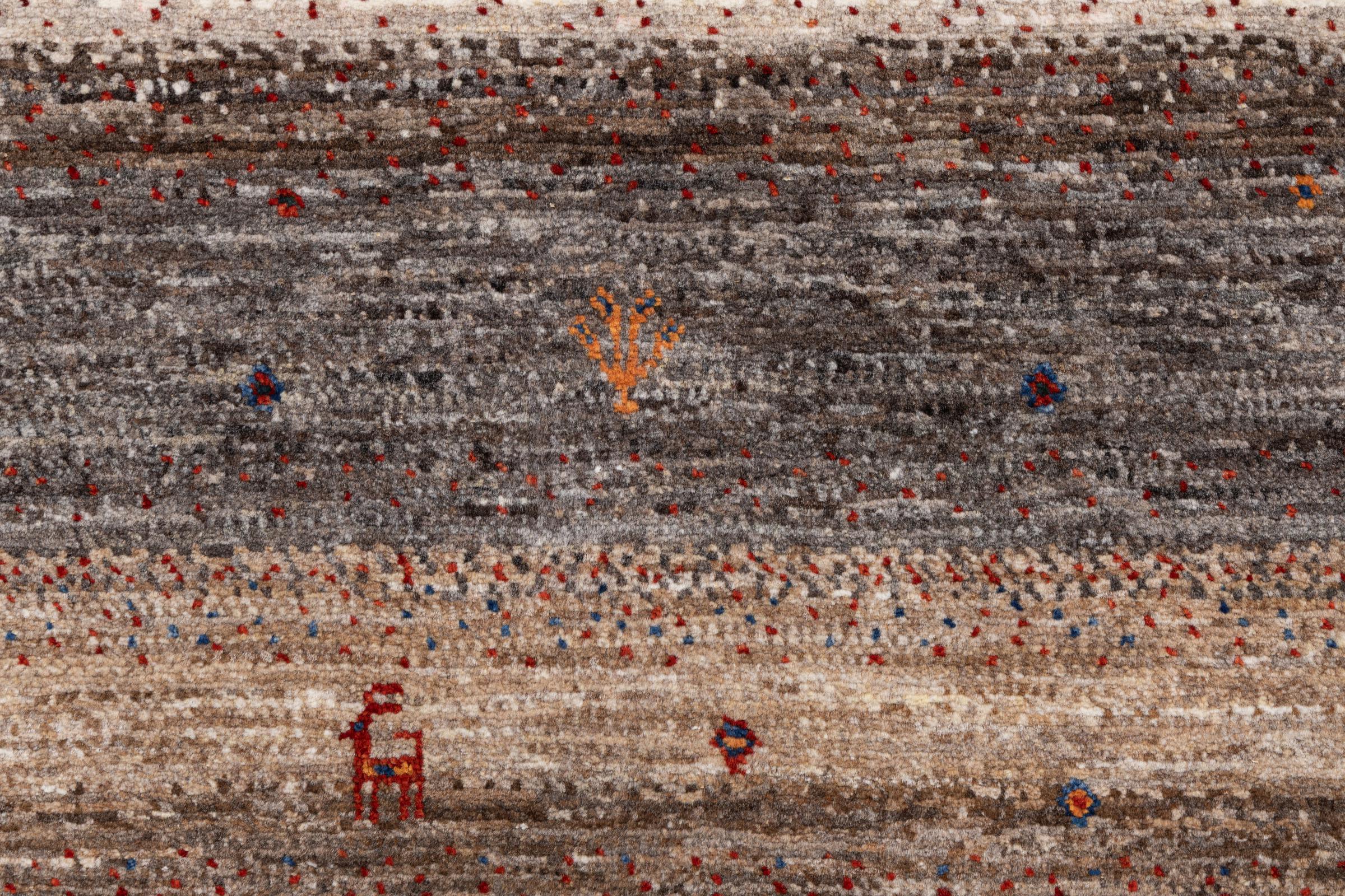 Een verfijning van de al bekende Gabbeh-tapijten: Dit is deze Perzische Gabbeh Loribaft. Het weet indruk te maken met zijn fijnere weefsel en prachtige ontwerp. Het werd door Loren in het zuiden van Perzië met de hand geknoopt van de beste handgesponnen schapenwol. Voor het verven van de wol worden uitsluitend pure plantaardige kleurstoffen gebruikt. Met dit vloerkleed haal je de hoogste standaard van een Gabbeh-tapijt in huis.