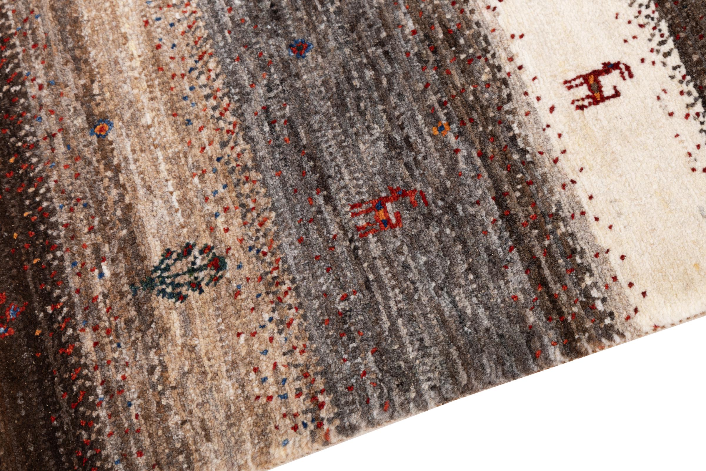 Dit prachtige tapijt is een Perzisch Gabbeh-tapijt en behoort daarom tot de hoogste kwaliteit Gabbeh-tapijten. De tapijten worden geknoopt door nomaden of semi-nomaden in Iran volgens traditioneel vakmanschap. De eenvoudige motieven en patronen zijn vooral geïnspireerd op de directe omgeving van de nomaden. Zo zijn er bijvoorbeeld kamelen, bomen of struiken te vinden op de traditionele tapijten. De Perzische Gabbeh-tapijten zijn gemaakt van wol van lokaal opgefokte kuddes schapen. De wol wordt dus meestal nog met de hand gesponnen. Elk van deze oosterse tapijten belichaamt dus een uniek karakter van de eeuwenoude cultuur.