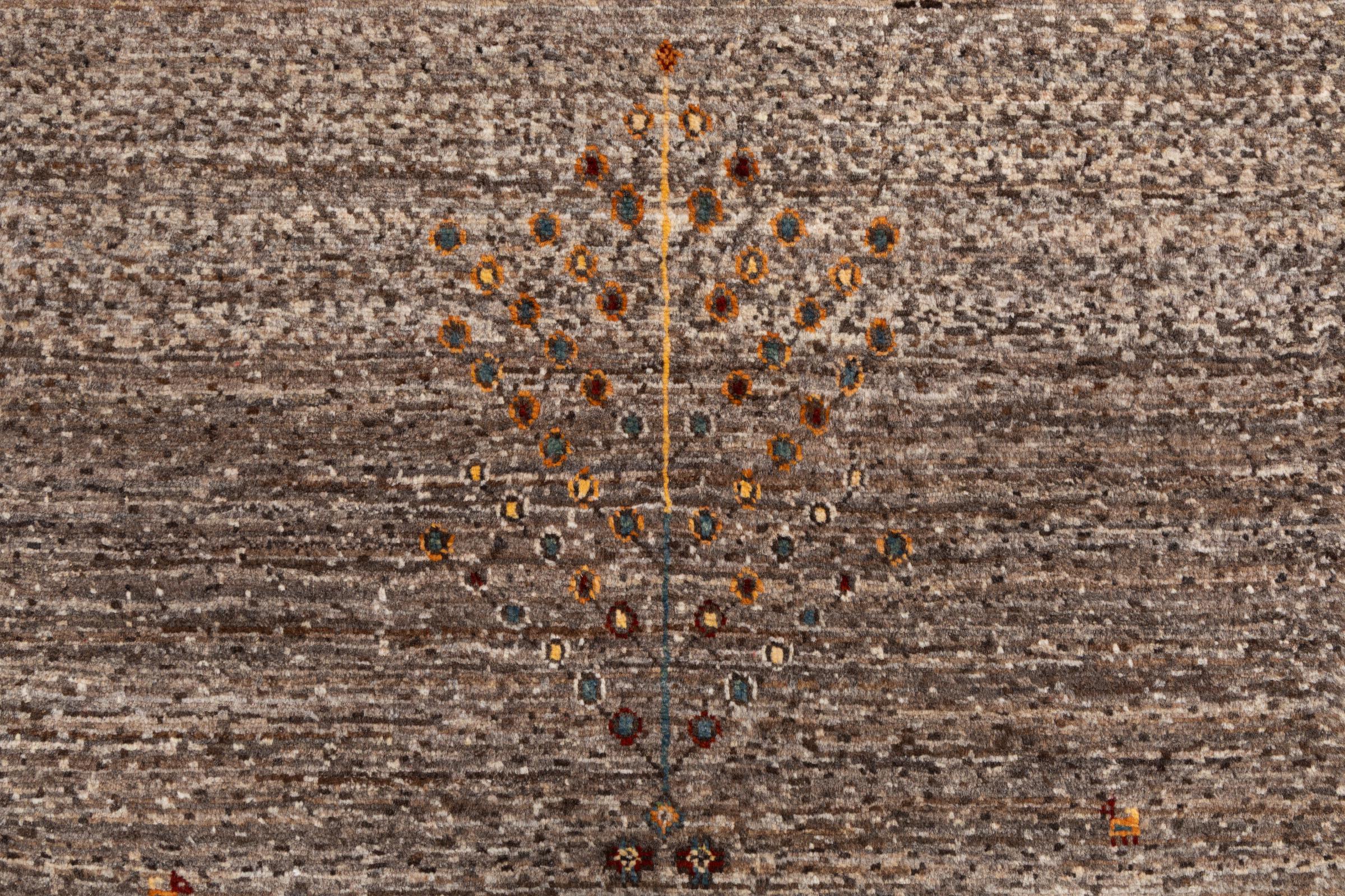 Dit prachtige tapijt is een Perzisch Gabbeh-tapijt en behoort daarom tot de hoogste kwaliteit Gabbeh-tapijten. De tapijten worden geknoopt door nomaden of semi-nomaden in Iran volgens traditioneel vakmanschap. De eenvoudige motieven en patronen zijn vooral geïnspireerd op de directe omgeving van de nomaden. Zo zijn er bijvoorbeeld kamelen, bomen of struiken te vinden op de traditionele tapijten. De Perzische Gabbeh-tapijten zijn gemaakt van wol van lokaal opgefokte kuddes schapen. De wol wordt dus meestal nog met de hand gesponnen. Elk van deze oosterse tapijten belichaamt dus een uniek karakter van de eeuwenoude cultuur.
