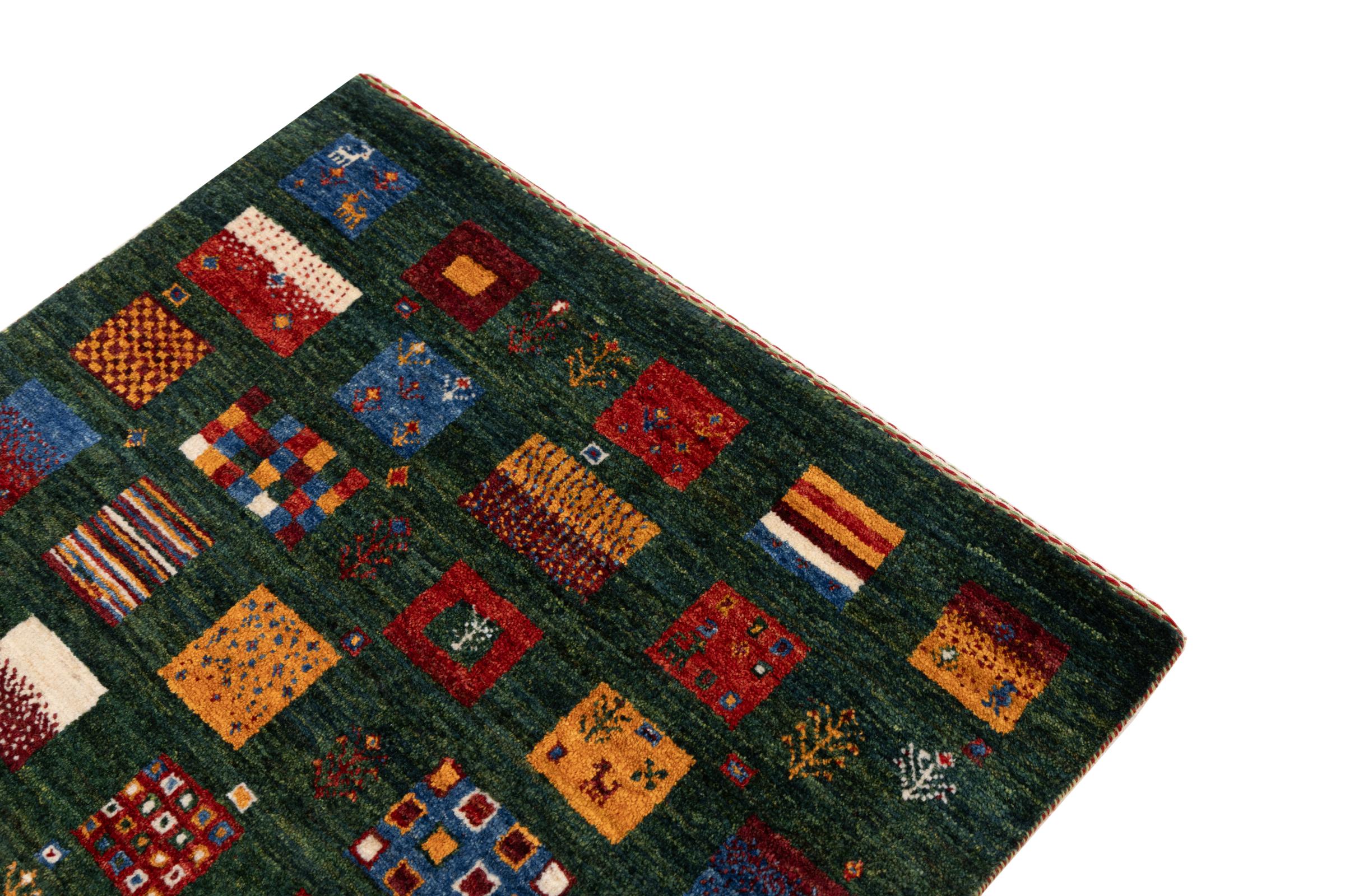 Een verfijning van de al bekende Gabbeh-tapijten: Dit is deze Perzische Gabbeh Loribaft. Het weet indruk te maken met zijn fijnere weefsel en prachtige ontwerp. Het werd door Loren in het zuiden van Perzië met de hand geknoopt van de beste handgesponnen schapenwol. Voor het verven van de wol worden uitsluitend pure plantaardige kleurstoffen gebruikt. Met dit vloerkleed haal je de hoogste standaard van een Gabbeh-tapijt in huis.