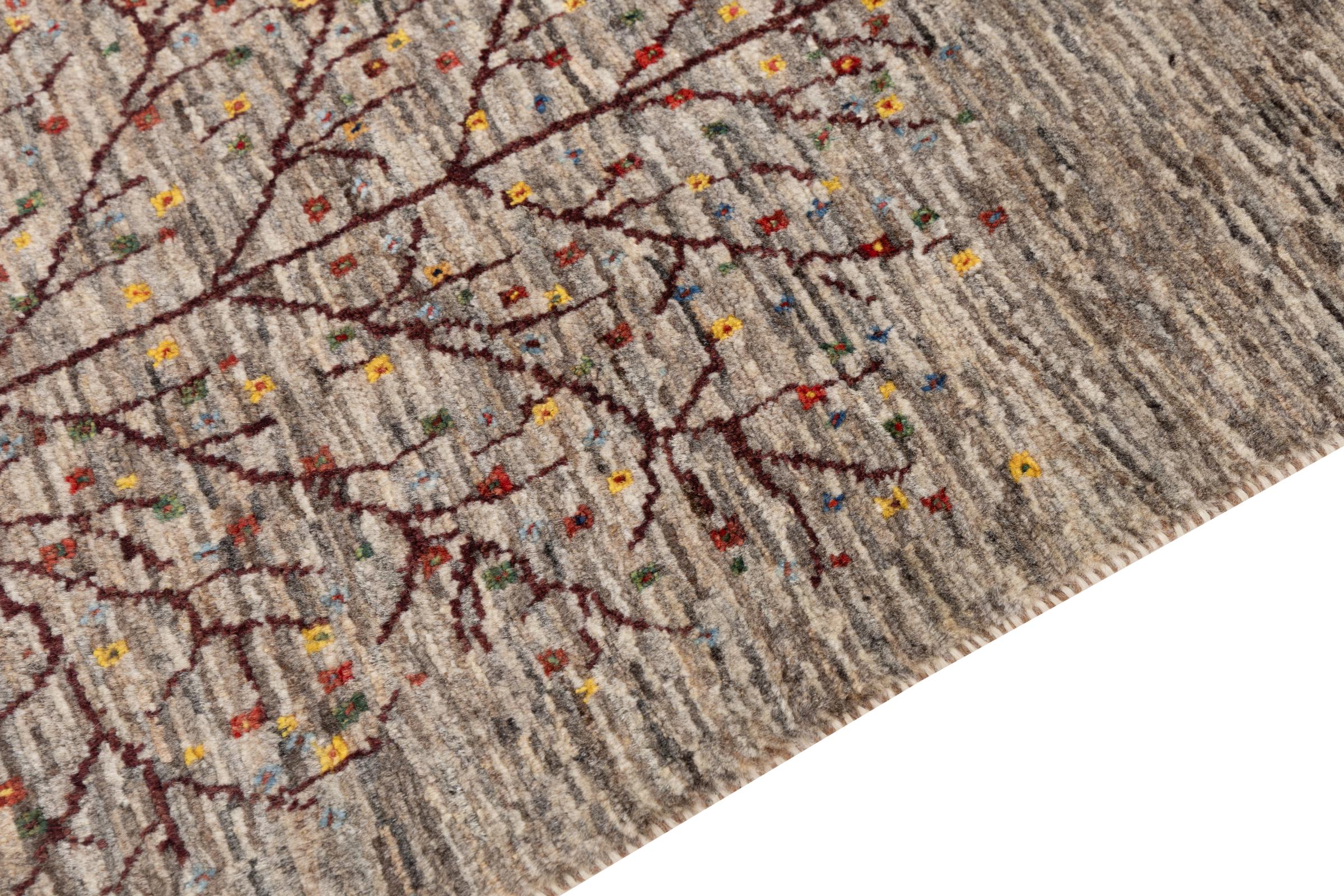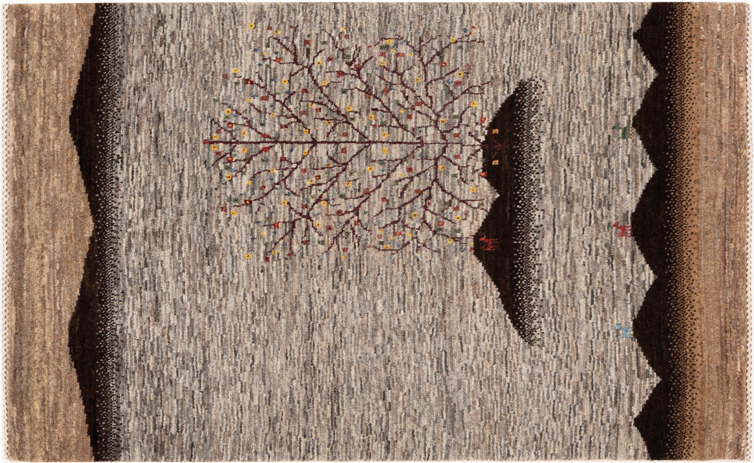Dit prachtige tapijt is een Perzisch Gabbeh-tapijt en behoort daarom tot de hoogste kwaliteit Gabbeh-tapijten. De tapijten worden geknoopt door nomaden of semi-nomaden in Iran volgens traditioneel vakmanschap. De eenvoudige motieven en patronen zijn vooral geïnspireerd op de directe omgeving van de nomaden. Zo zijn er bijvoorbeeld kamelen, bomen of struiken te vinden op de traditionele tapijten. De Perzische Gabbeh-tapijten zijn gemaakt van wol van lokaal opgefokte kuddes schapen. De wol wordt dus meestal nog met de hand gesponnen. Elk van deze oosterse tapijten belichaamt dus een uniek karakter van de eeuwenoude cultuur.