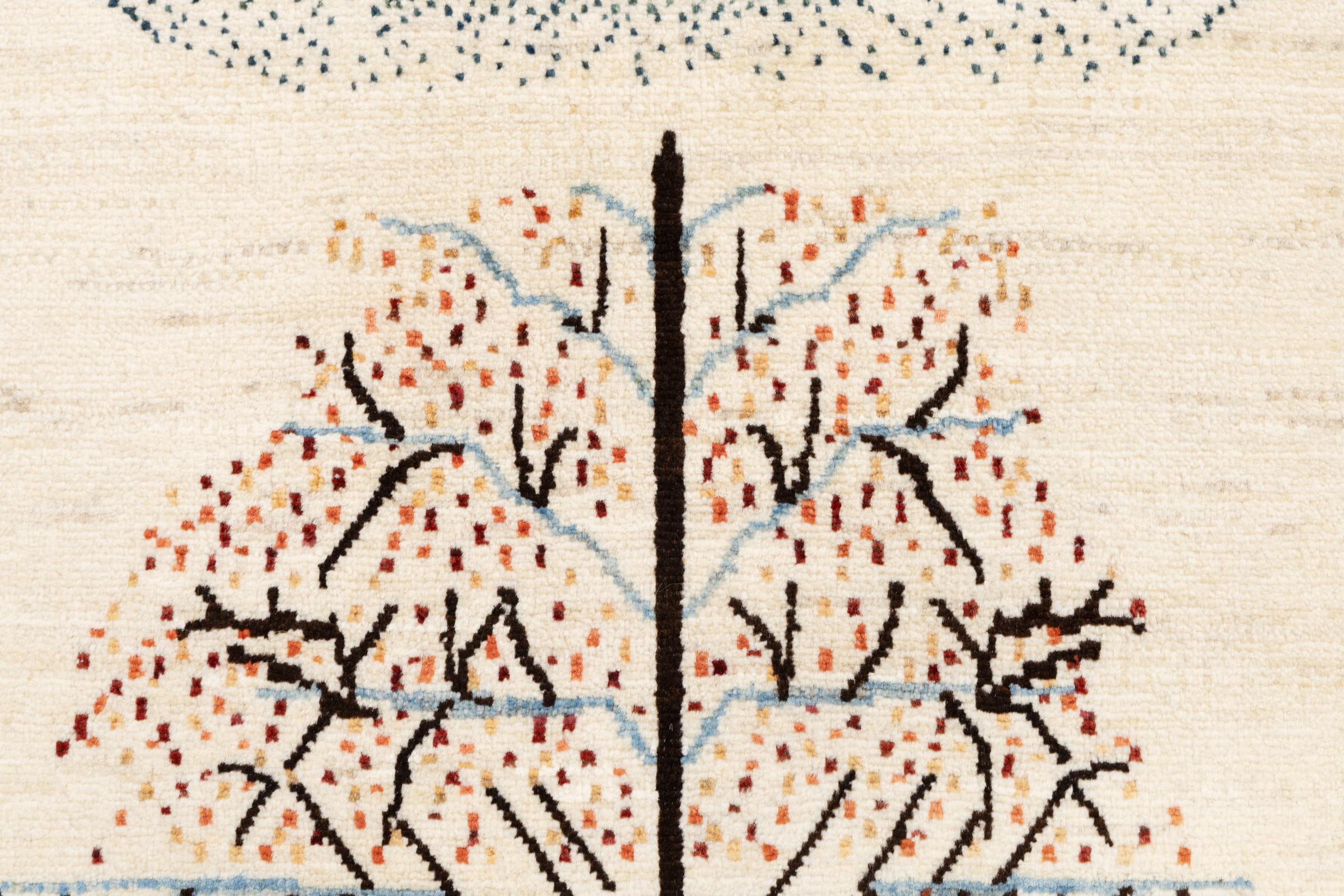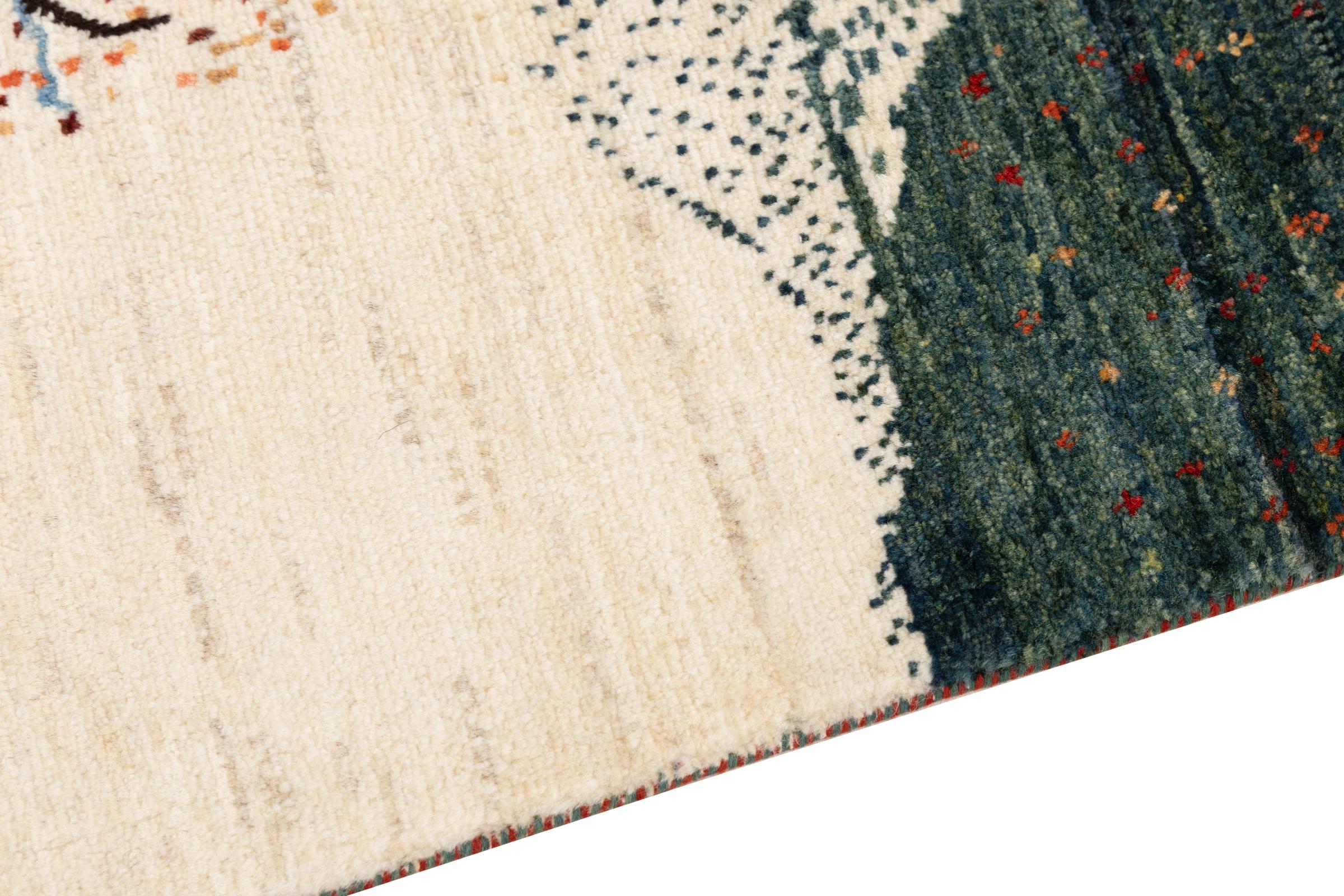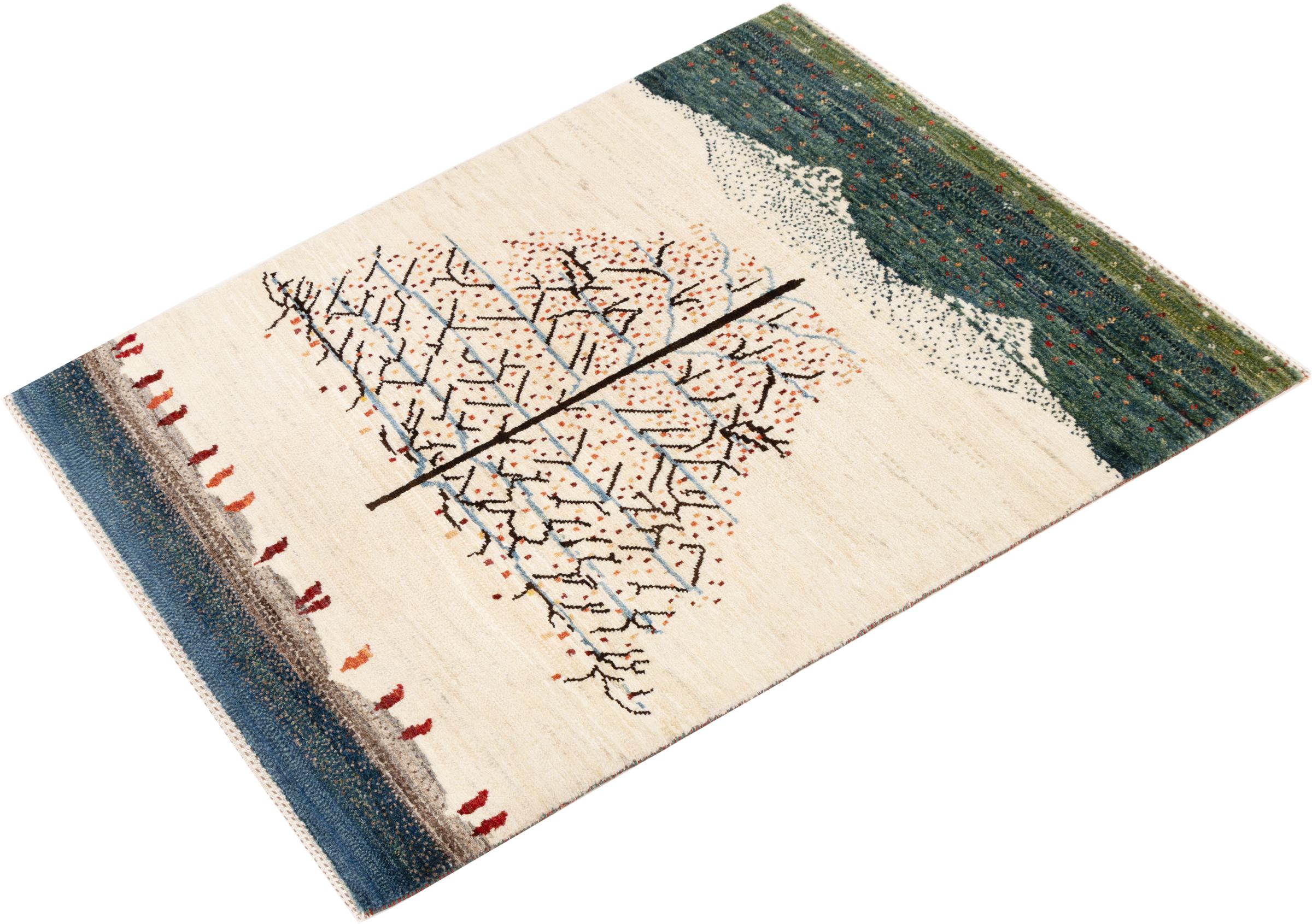 Dit prachtige tapijt is een Perzisch Gabbeh-tapijt en behoort daarom tot de hoogste kwaliteit Gabbeh-tapijten. De tapijten worden geknoopt door nomaden of semi-nomaden in Iran volgens traditioneel vakmanschap. De eenvoudige motieven en patronen zijn vooral geïnspireerd op de directe omgeving van de nomaden. Zo zijn er bijvoorbeeld kamelen, bomen of struiken te vinden op de traditionele tapijten. De Perzische Gabbeh-tapijten zijn gemaakt van wol van lokaal opgefokte kuddes schapen. De wol wordt dus meestal nog met de hand gesponnen. Elk van deze oosterse tapijten belichaamt dus een uniek karakter van de eeuwenoude cultuur.