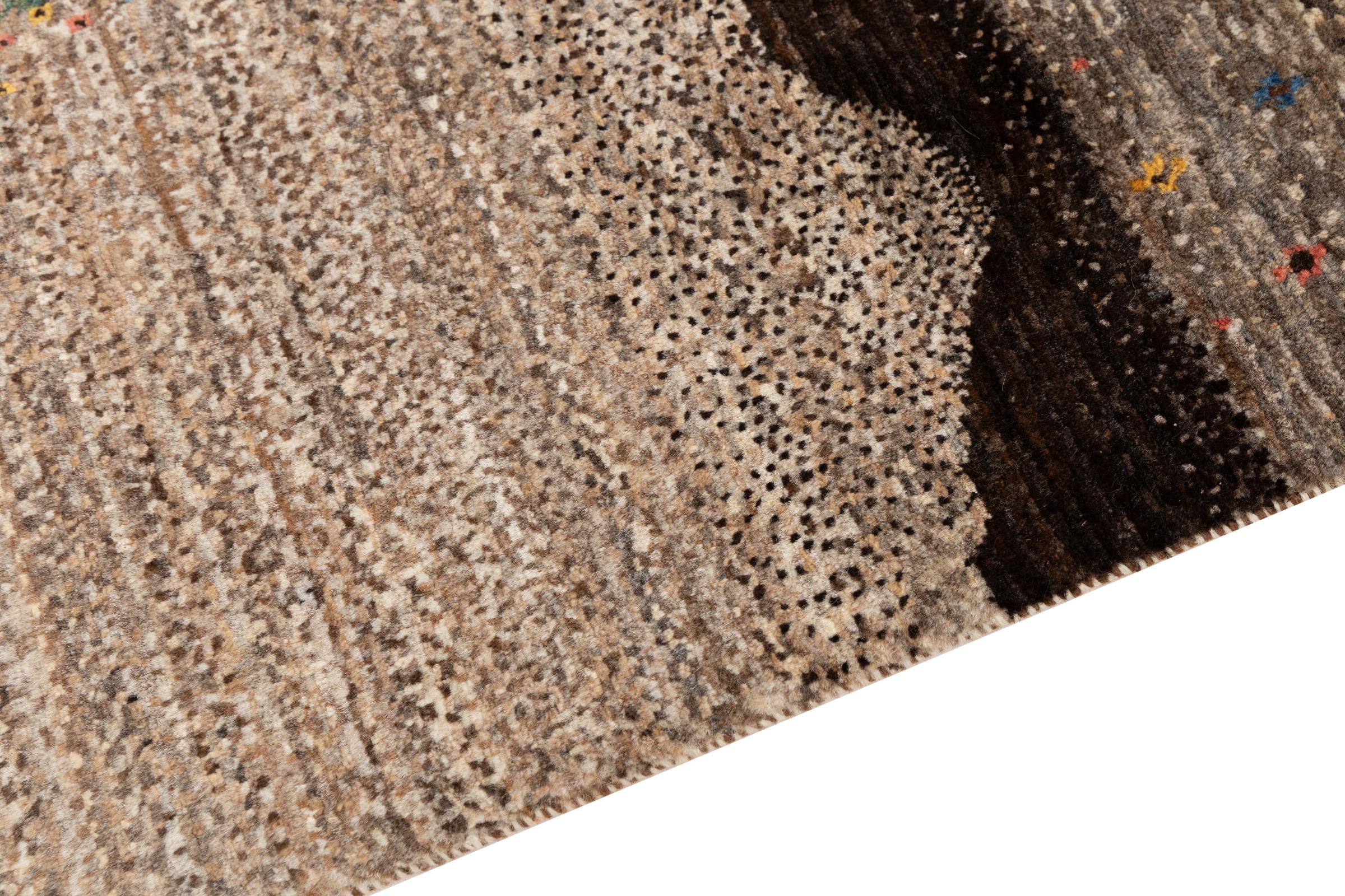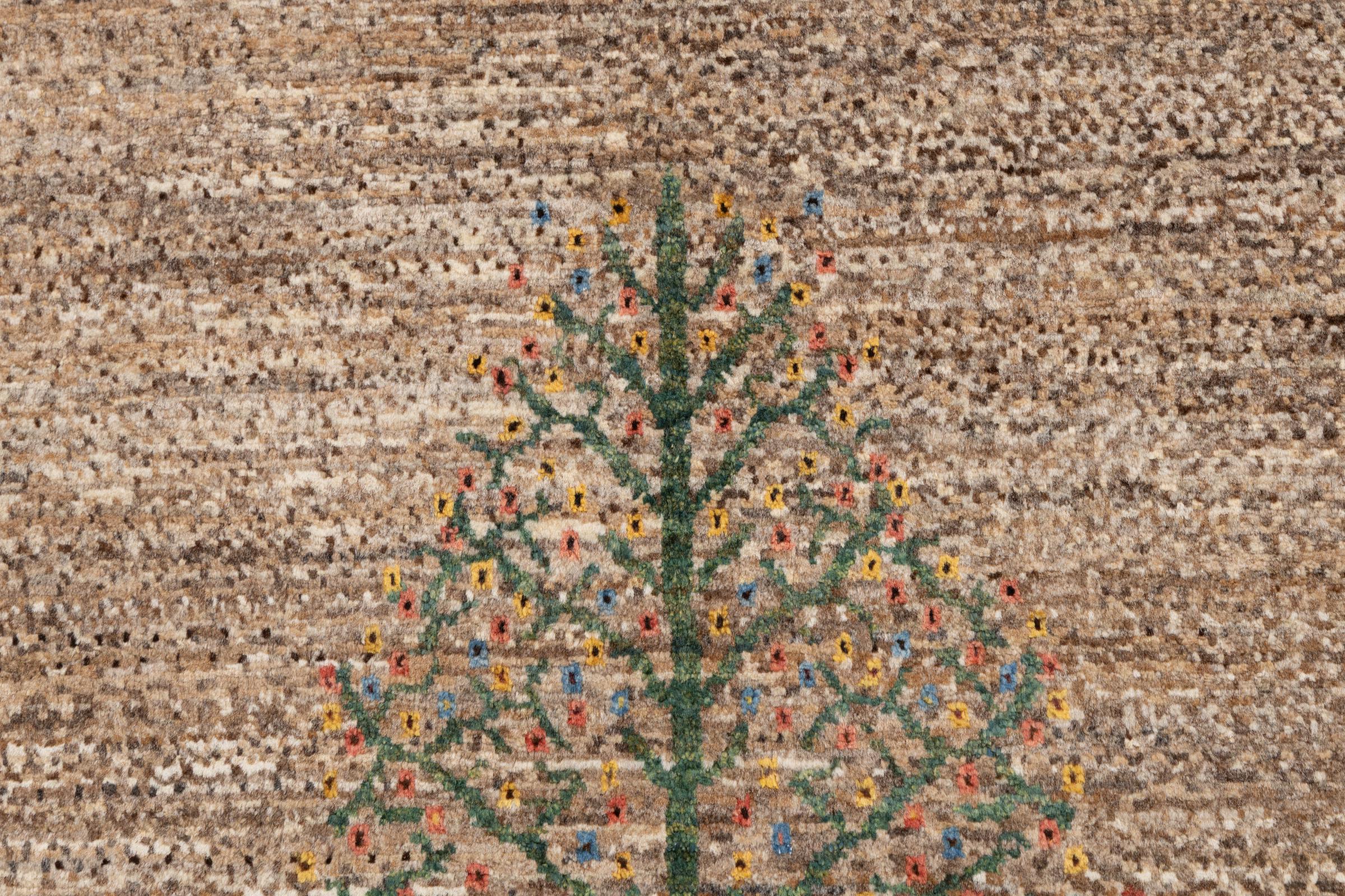 Dit prachtige tapijt is een Perzisch Gabbeh-tapijt en behoort daarom tot de hoogste kwaliteit Gabbeh-tapijten. De tapijten worden geknoopt door nomaden of semi-nomaden in Iran volgens traditioneel vakmanschap. De eenvoudige motieven en patronen zijn vooral geïnspireerd op de directe omgeving van de nomaden. Zo zijn er bijvoorbeeld kamelen, bomen of struiken te vinden op de traditionele tapijten. De Perzische Gabbeh-tapijten zijn gemaakt van wol van lokaal opgefokte kuddes schapen. De wol wordt dus meestal nog met de hand gesponnen. Elk van deze oosterse tapijten belichaamt dus een uniek karakter van de eeuwenoude cultuur.