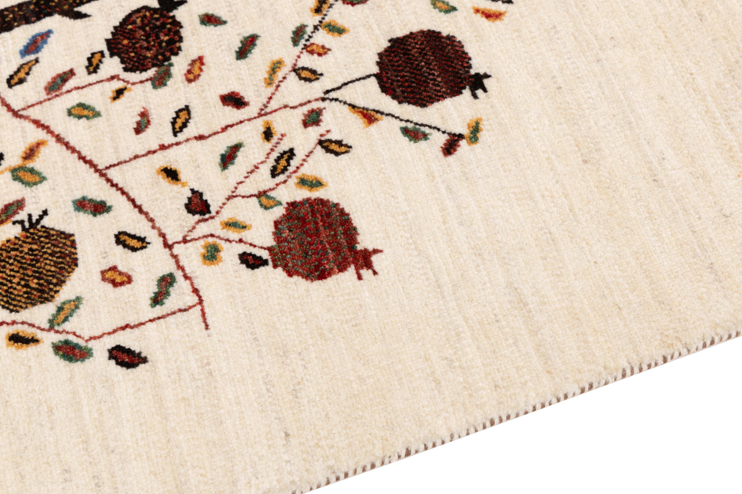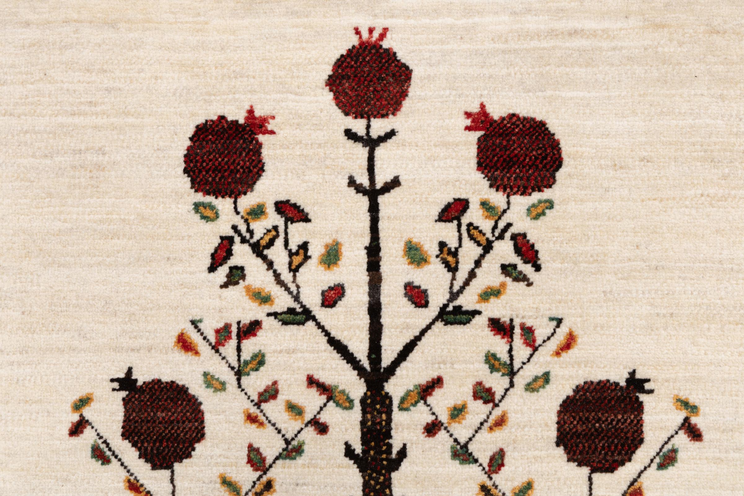 Dit prachtige tapijt is een Perzisch Gabbeh-tapijt en behoort daarom tot de hoogste kwaliteit Gabbeh-tapijten. De tapijten worden geknoopt door nomaden of semi-nomaden in Iran volgens traditioneel vakmanschap. De eenvoudige motieven en patronen zijn vooral geïnspireerd op de directe omgeving van de nomaden. Zo zijn er bijvoorbeeld kamelen, bomen of struiken te vinden op de traditionele tapijten. De Perzische Gabbeh-tapijten zijn gemaakt van wol van lokaal opgefokte kuddes schapen. De wol wordt dus meestal nog met de hand gesponnen. Elk van deze oosterse tapijten belichaamt dus een uniek karakter van de eeuwenoude cultuur.