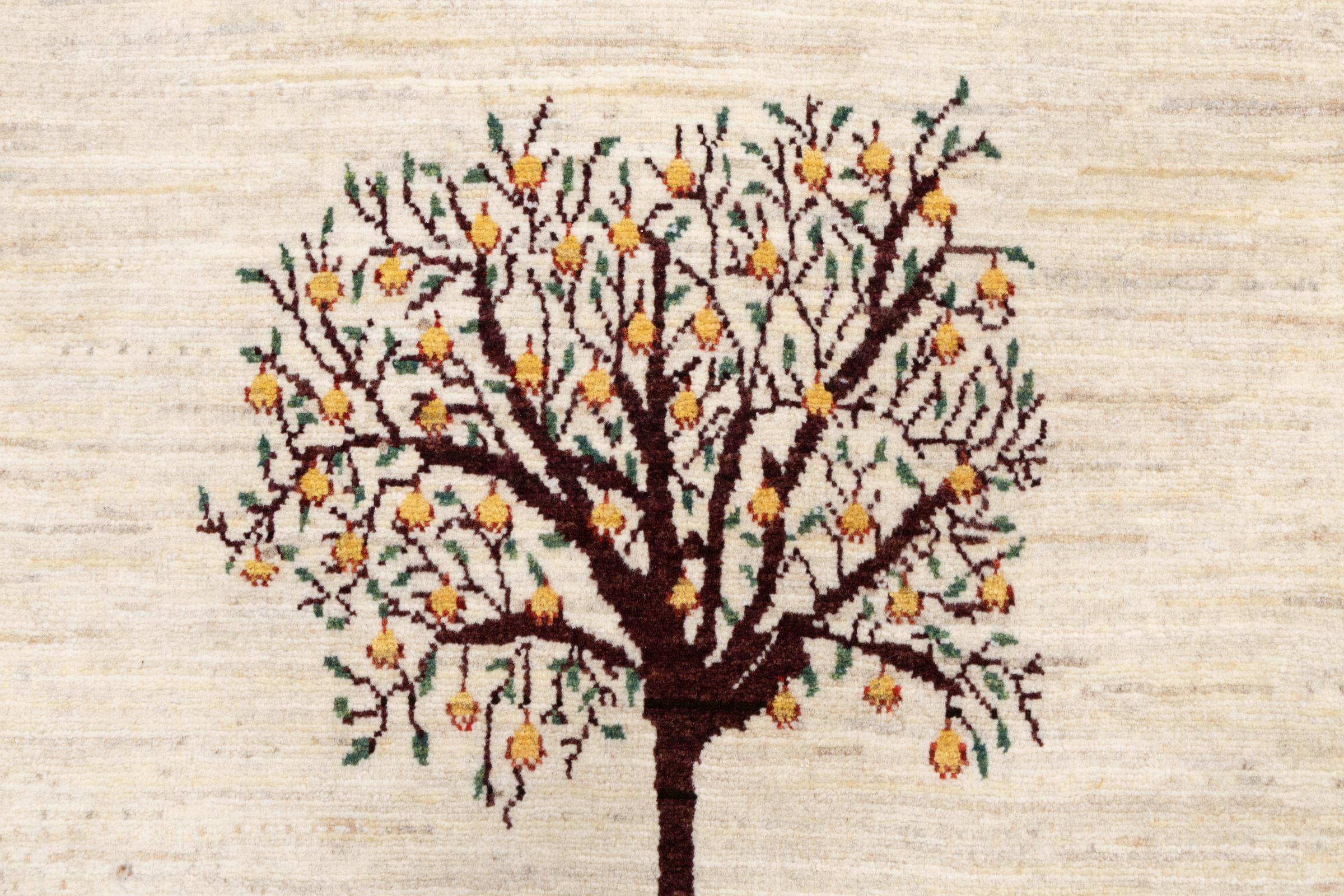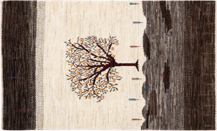 Dit prachtige tapijt is een Perzisch Gabbeh-tapijt en behoort daarom tot de hoogste kwaliteit Gabbeh-tapijten. De tapijten worden geknoopt door nomaden of semi-nomaden in Iran volgens traditioneel vakmanschap. De eenvoudige motieven en patronen zijn vooral geïnspireerd op de directe omgeving van de nomaden. Zo zijn er bijvoorbeeld kamelen, bomen of struiken te vinden op de traditionele tapijten. De Perzische Gabbeh-tapijten zijn gemaakt van wol van lokaal opgefokte kuddes schapen. De wol wordt dus meestal nog met de hand gesponnen. Elk van deze oosterse tapijten belichaamt dus een uniek karakter van de eeuwenoude cultuur.