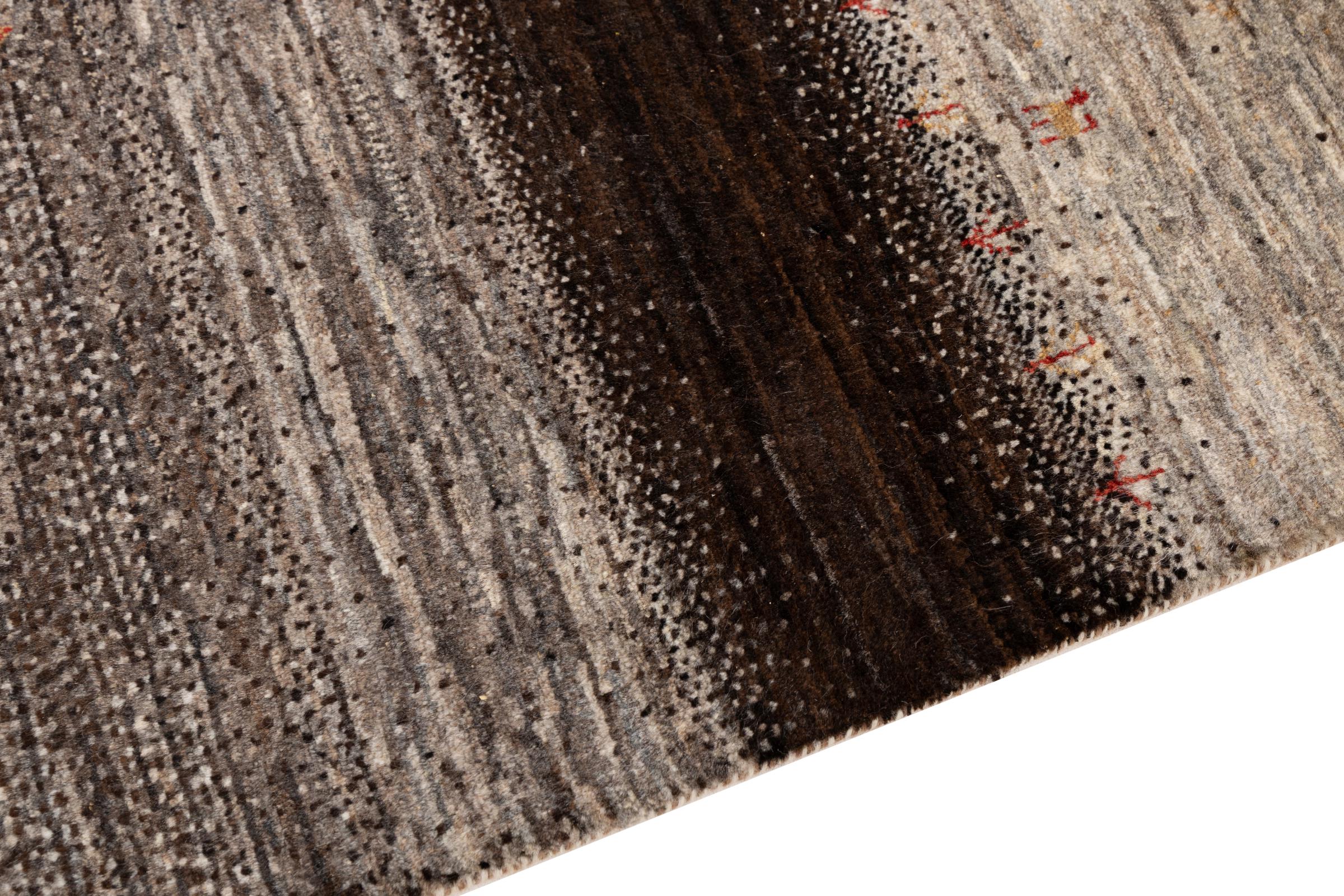 Dit prachtige tapijt is een Perzisch Gabbeh-tapijt en behoort daarom tot de hoogste kwaliteit Gabbeh-tapijten. De tapijten worden geknoopt door nomaden of semi-nomaden in Iran volgens traditioneel vakmanschap. De eenvoudige motieven en patronen zijn vooral geïnspireerd op de directe omgeving van de nomaden. Zo zijn er bijvoorbeeld kamelen, bomen of struiken te vinden op de traditionele tapijten. De Perzische Gabbeh-tapijten zijn gemaakt van wol van lokaal opgefokte kuddes schapen. De wol wordt dus meestal nog met de hand gesponnen. Elk van deze oosterse tapijten belichaamt dus een uniek karakter van de eeuwenoude cultuur.