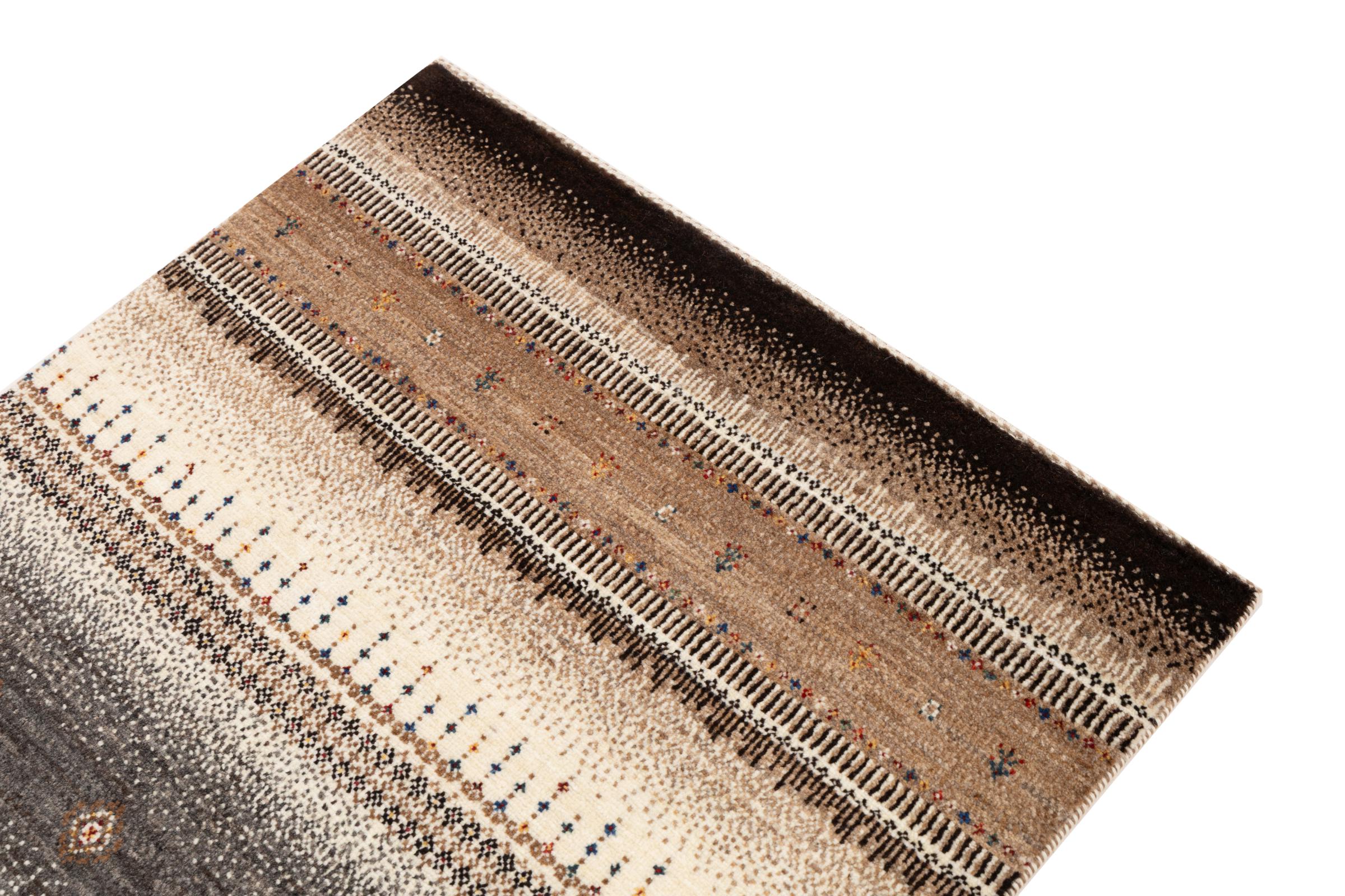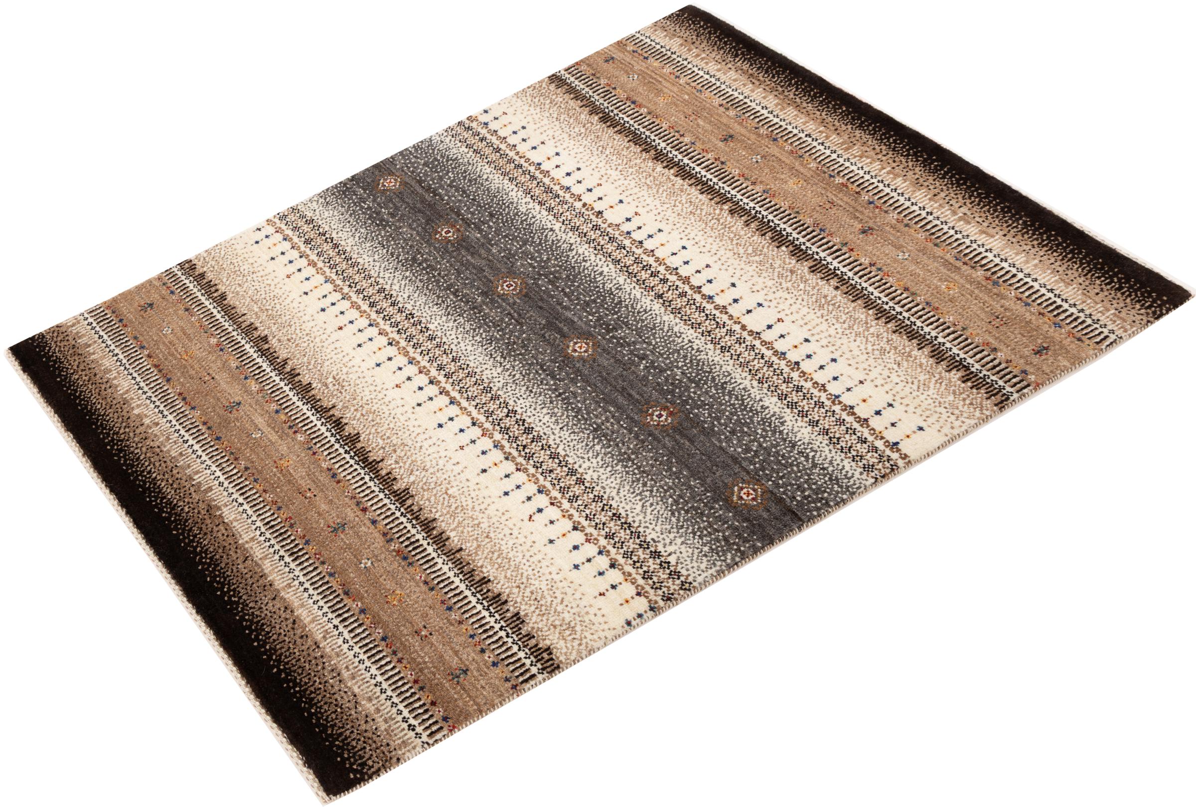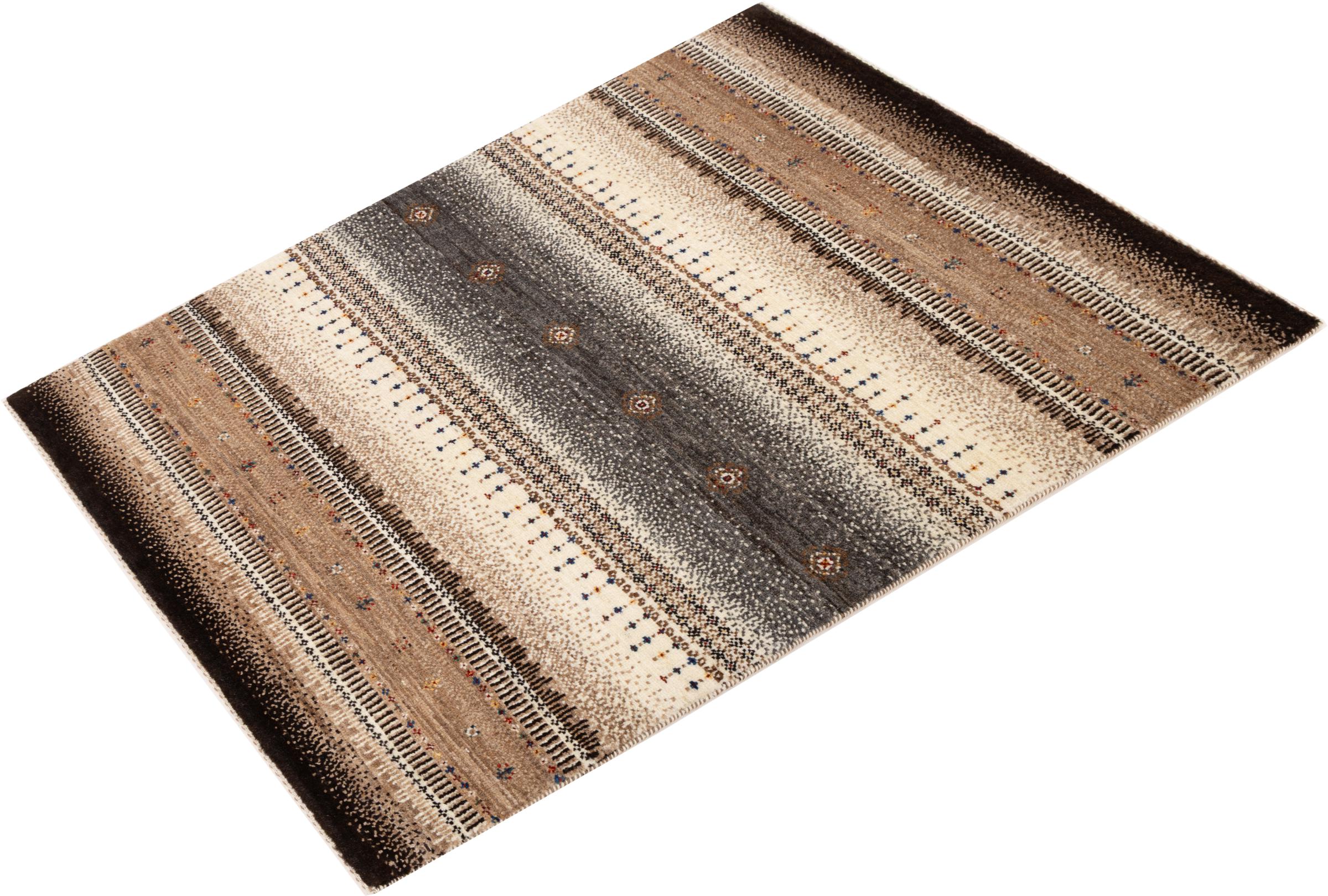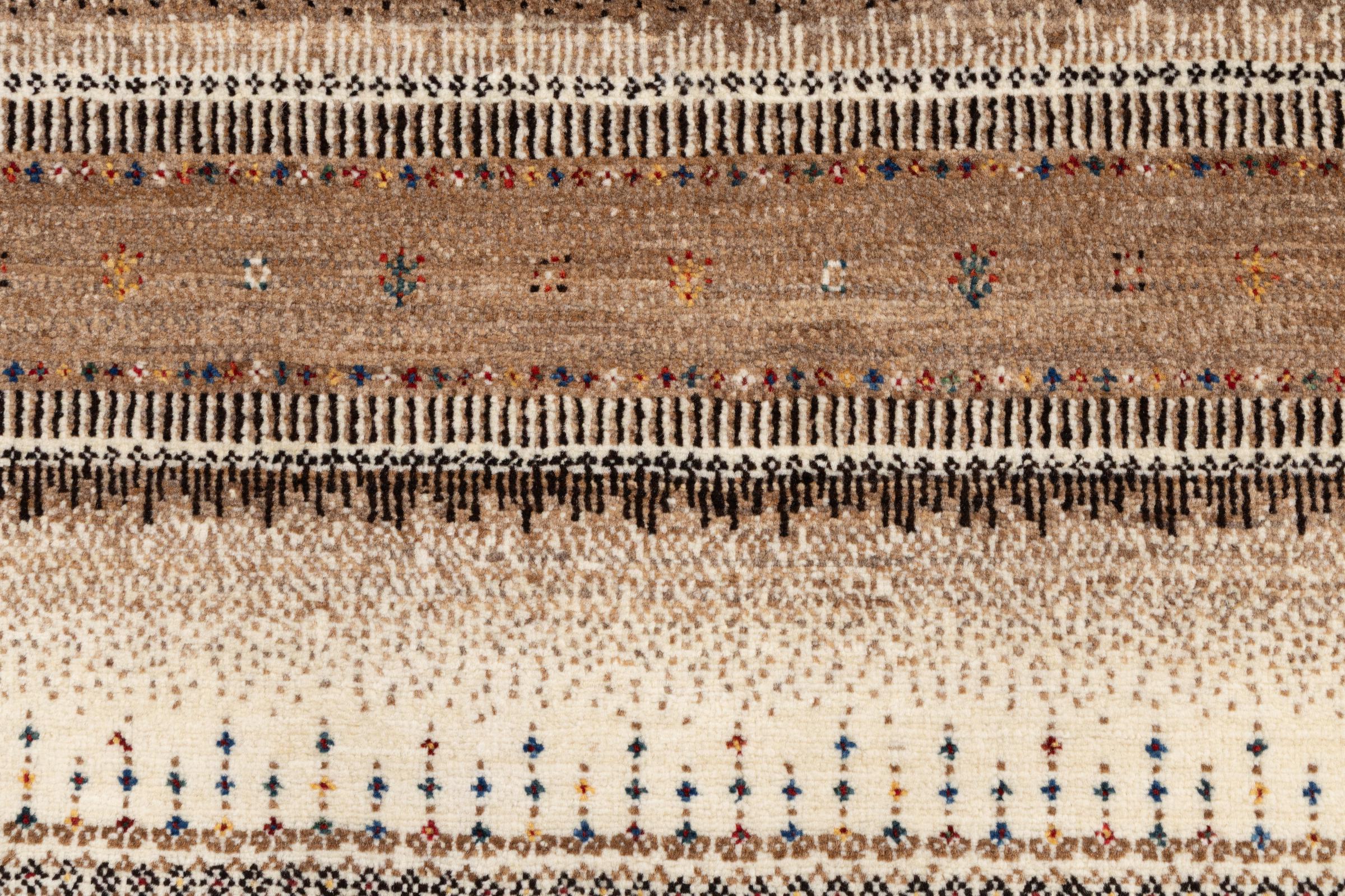 Een verfijning van de al bekende Gabbeh-tapijten: Dit is deze Perzische Gabbeh Loribaft. Het weet indruk te maken met zijn fijnere weefsel en prachtige ontwerp. Het werd door Loren in het zuiden van Perzië met de hand geknoopt van de beste handgesponnen schapenwol. Voor het verven van de wol worden uitsluitend pure plantaardige kleurstoffen gebruikt. Met dit vloerkleed haal je de hoogste standaard van een Gabbeh-tapijt in huis.