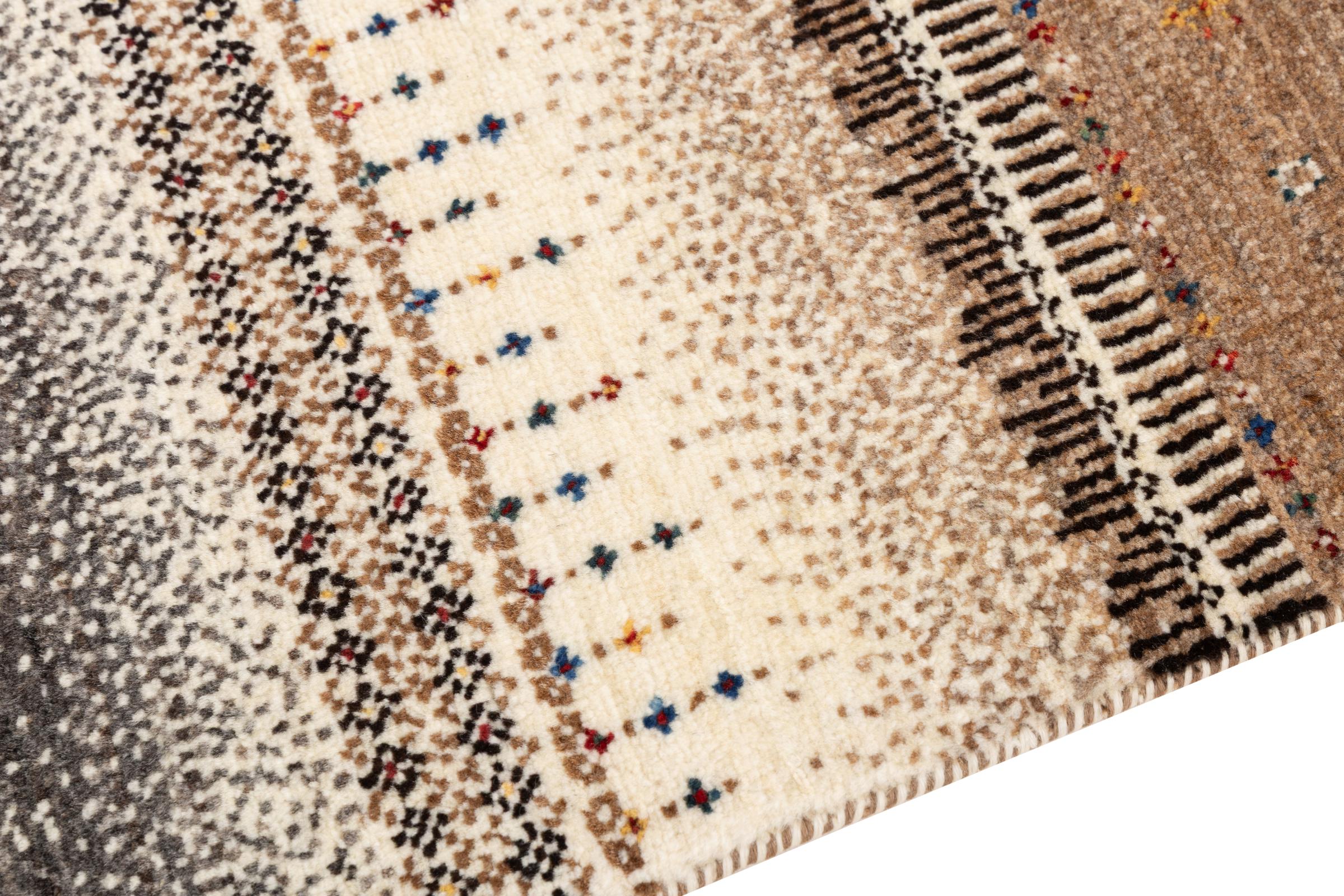 Dit prachtige tapijt is een Perzisch Gabbeh-tapijt en behoort daarom tot de hoogste kwaliteit Gabbeh-tapijten. De tapijten worden geknoopt door nomaden of semi-nomaden in Iran volgens traditioneel vakmanschap. De eenvoudige motieven en patronen zijn vooral geïnspireerd op de directe omgeving van de nomaden. Zo zijn er bijvoorbeeld kamelen, bomen of struiken te vinden op de traditionele tapijten. De Perzische Gabbeh-tapijten zijn gemaakt van wol van lokaal opgefokte kuddes schapen. De wol wordt dus meestal nog met de hand gesponnen. Elk van deze oosterse tapijten belichaamt dus een uniek karakter van de eeuwenoude cultuur.