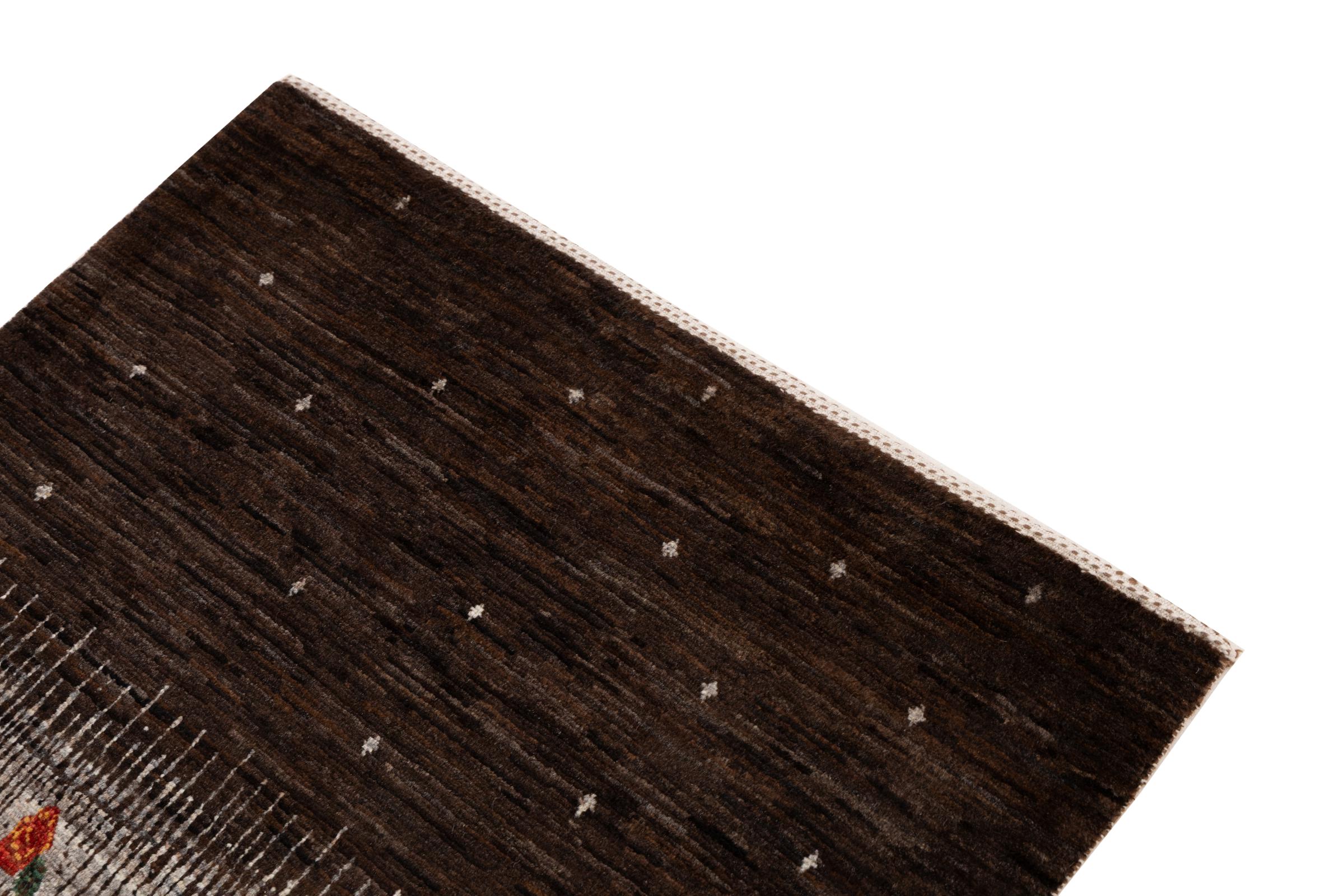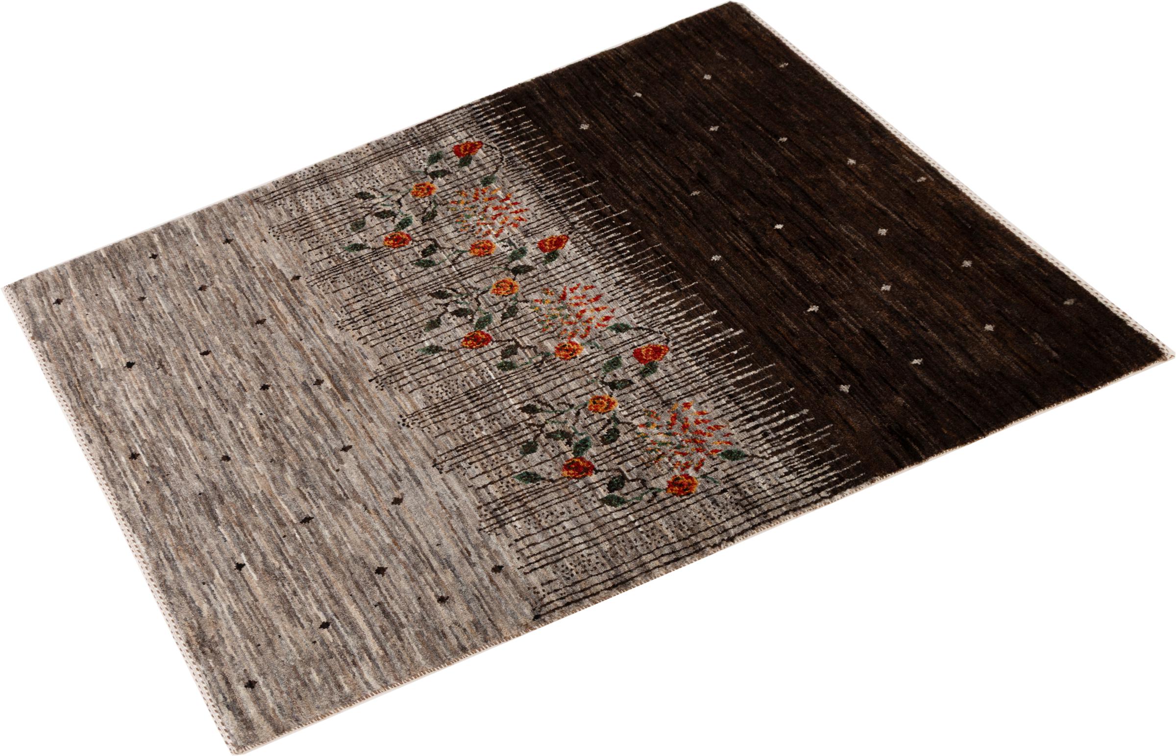 Een verfijning van de al bekende Gabbeh-tapijten: Dit is deze Perzische Gabbeh Loribaft. Het weet indruk te maken met zijn fijnere weefsel en prachtige ontwerp. Het werd door Loren in het zuiden van Perzië met de hand geknoopt van de beste handgesponnen schapenwol. Voor het verven van de wol worden uitsluitend pure plantaardige kleurstoffen gebruikt. Met dit vloerkleed haal je de hoogste standaard van een Gabbeh-tapijt in huis.
