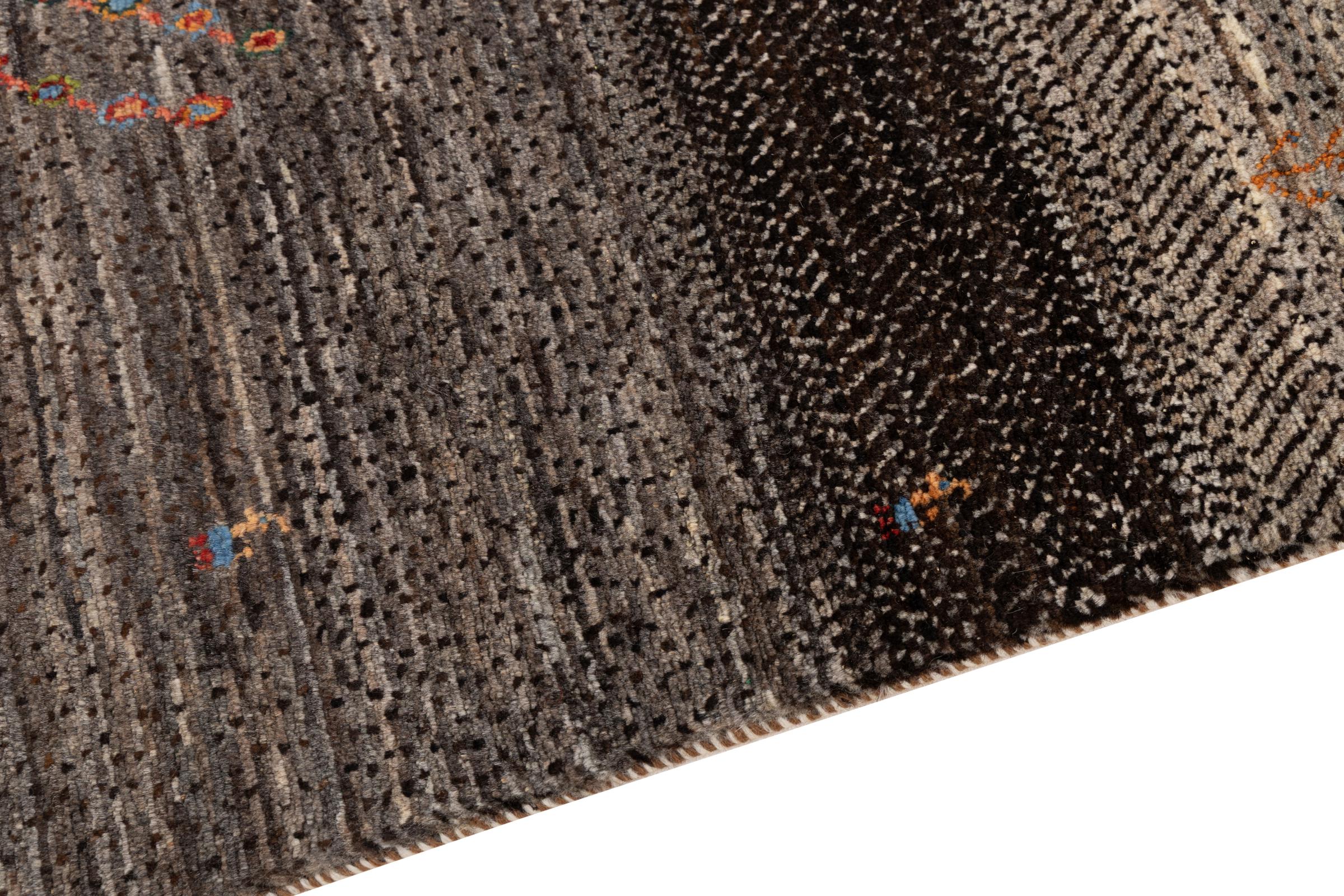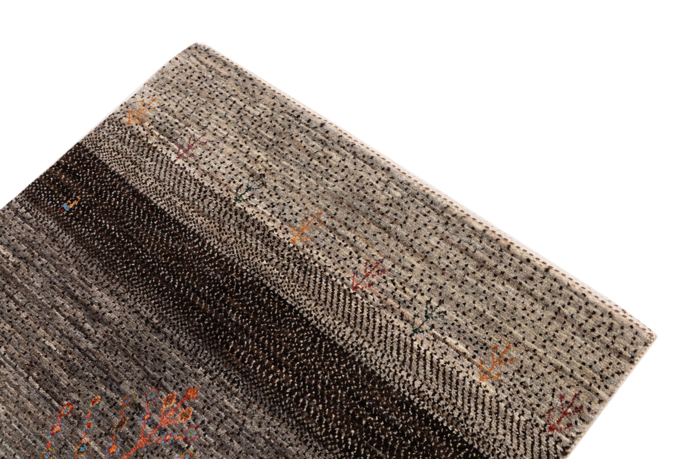 Een verfijning van de al bekende Gabbeh-tapijten: Dit is deze Perzische Gabbeh Loribaft. Het weet indruk te maken met zijn fijnere weefsel en prachtige ontwerp. Het werd door Loren in het zuiden van Perzië met de hand geknoopt van de beste handgesponnen schapenwol. Voor het verven van de wol worden uitsluitend pure plantaardige kleurstoffen gebruikt. Met dit vloerkleed haal je de hoogste standaard van een Gabbeh-tapijt in huis.