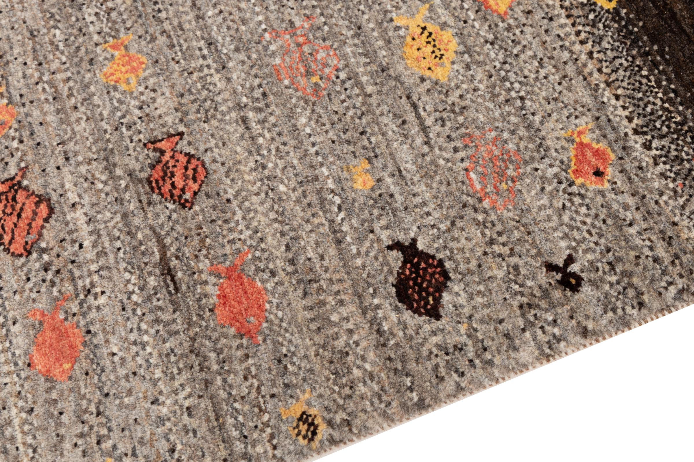 Dit prachtige tapijt is een Perzisch Gabbeh-tapijt en behoort daarom tot de hoogste kwaliteit Gabbeh-tapijten. De tapijten worden geknoopt door nomaden of semi-nomaden in Iran volgens traditioneel vakmanschap. De eenvoudige motieven en patronen zijn vooral geïnspireerd op de directe omgeving van de nomaden. Zo zijn er bijvoorbeeld kamelen, bomen of struiken te vinden op de traditionele tapijten. De Perzische Gabbeh-tapijten zijn gemaakt van wol van lokaal opgefokte kuddes schapen. De wol wordt dus meestal nog met de hand gesponnen. Elk van deze oosterse tapijten belichaamt dus een uniek karakter van de eeuwenoude cultuur.
