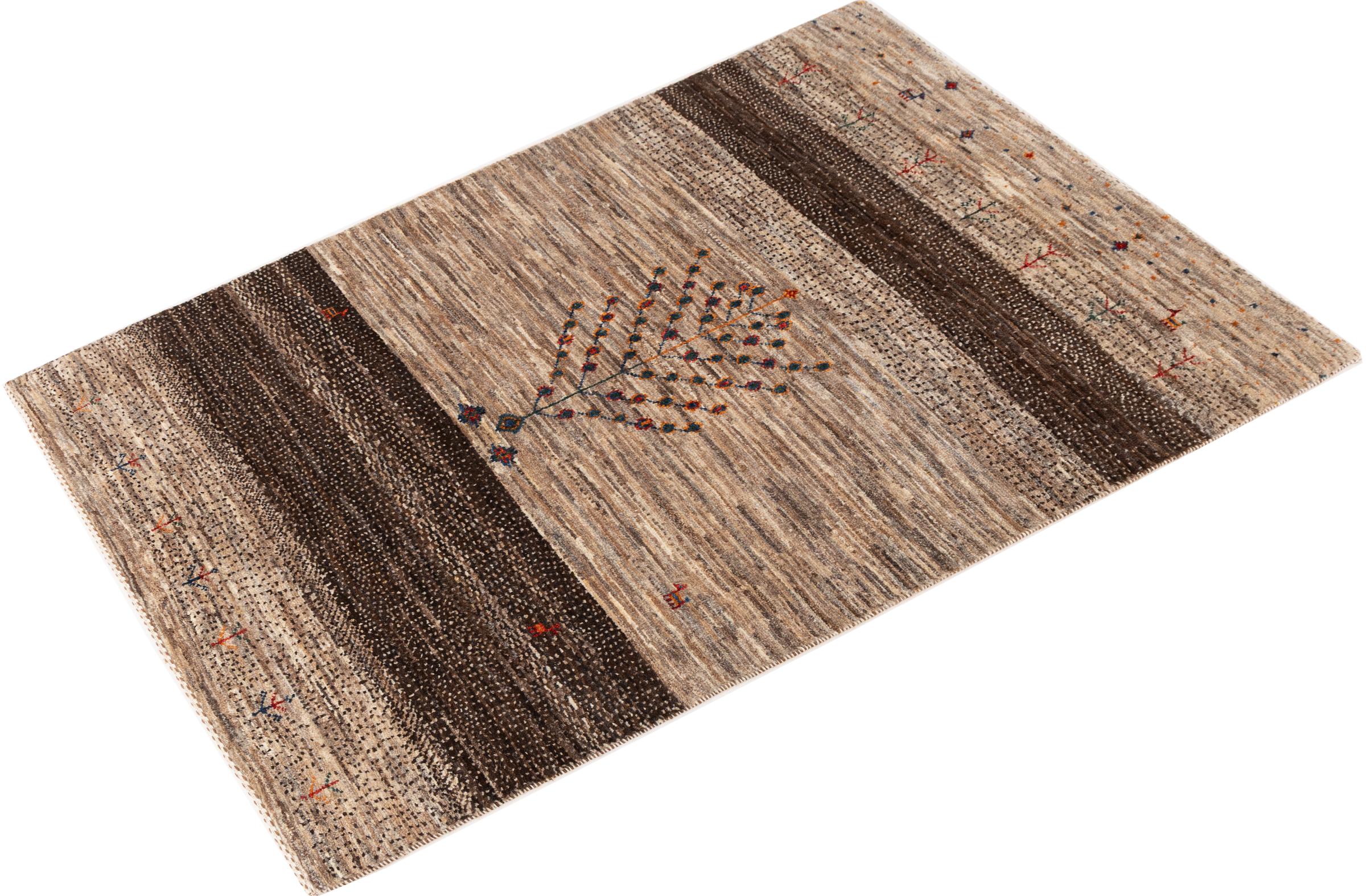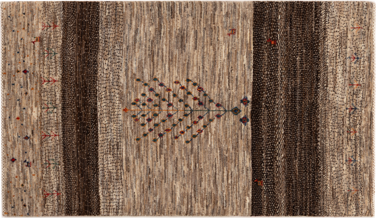 Dit prachtige tapijt is een Perzisch Gabbeh-tapijt en behoort daarom tot de hoogste kwaliteit Gabbeh-tapijten. De tapijten worden geknoopt door nomaden of semi-nomaden in Iran volgens traditioneel vakmanschap. De eenvoudige motieven en patronen zijn vooral geïnspireerd op de directe omgeving van de nomaden. Zo zijn er bijvoorbeeld kamelen, bomen of struiken te vinden op de traditionele tapijten. De Perzische Gabbeh-tapijten zijn gemaakt van wol van lokaal opgefokte kuddes schapen. De wol wordt dus meestal nog met de hand gesponnen. Elk van deze oosterse tapijten belichaamt dus een uniek karakter van de eeuwenoude cultuur.