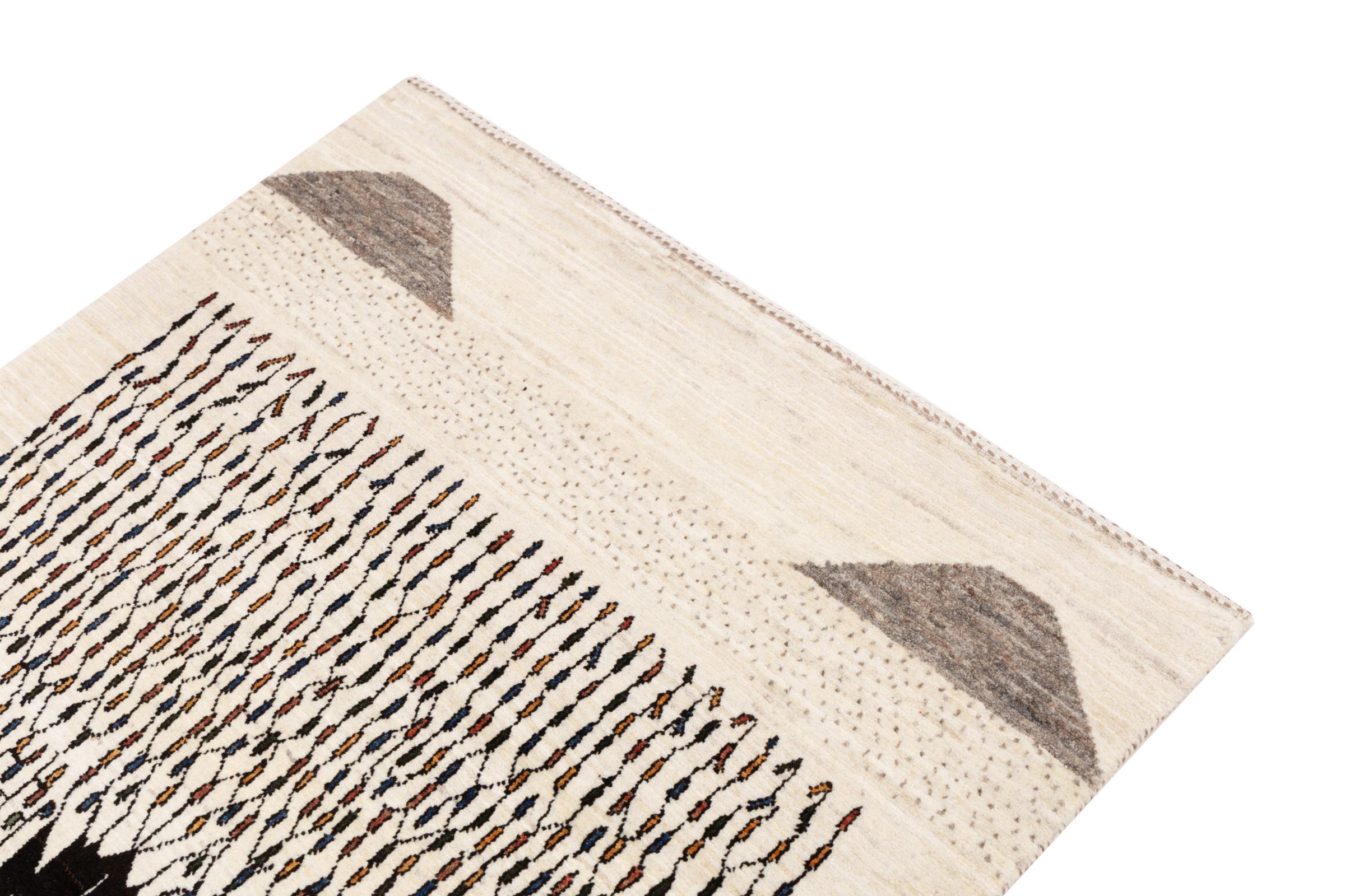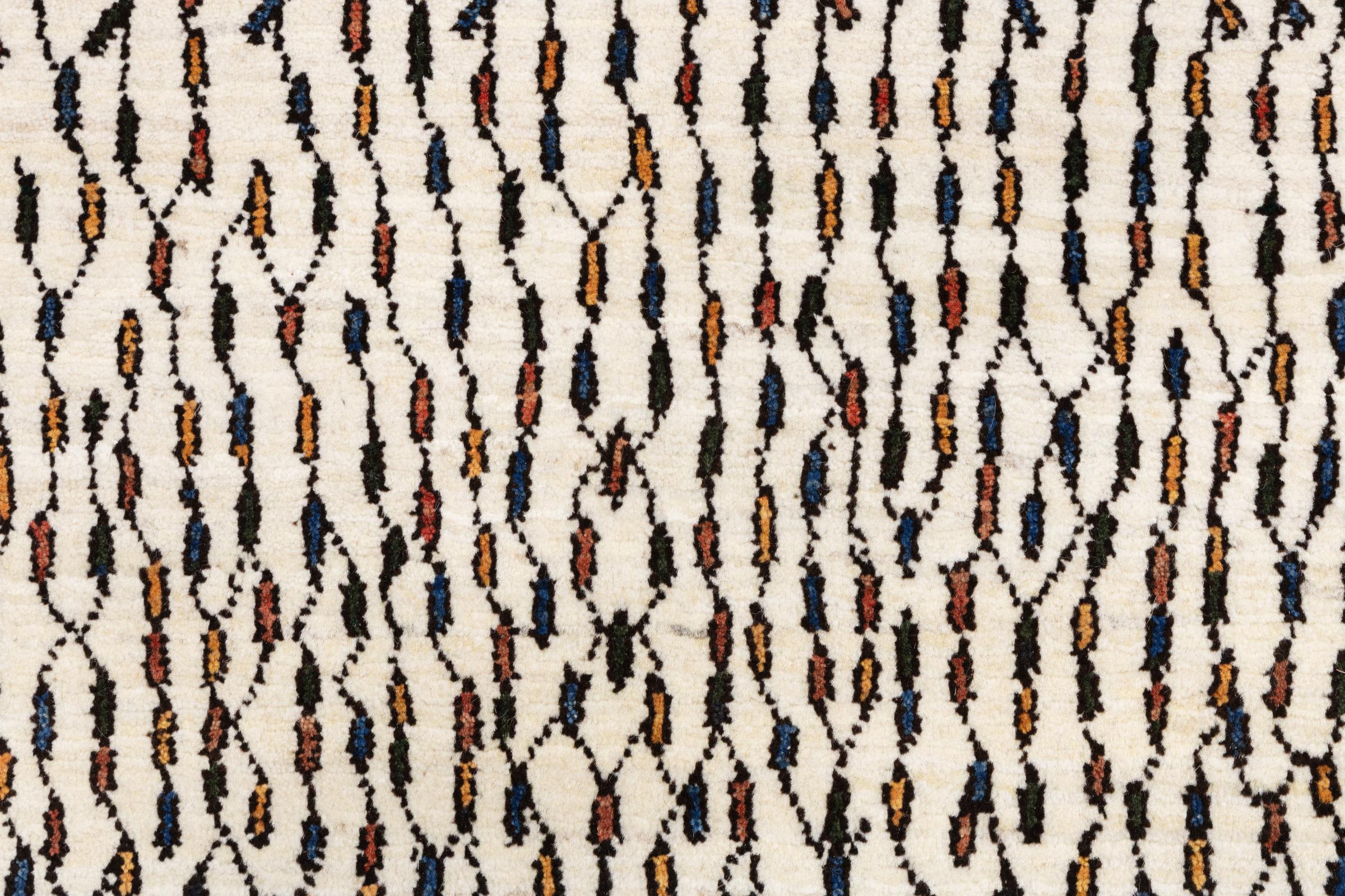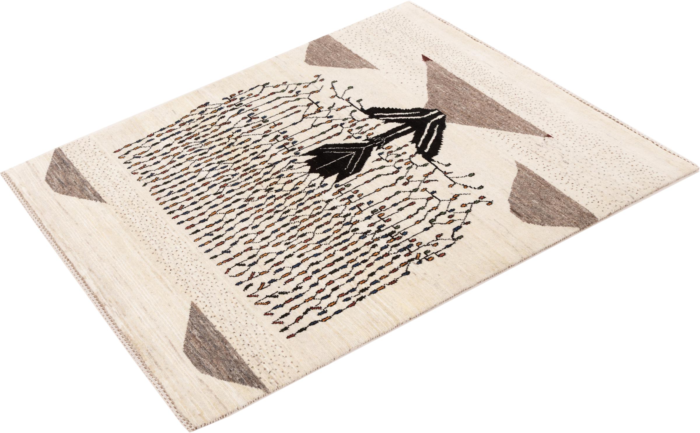 Een verfijning van de al bekende Gabbeh-tapijten: Dit is deze Perzische Gabbeh Loribaft. Het weet indruk te maken met zijn fijnere weefsel en prachtige ontwerp. Het werd door Loren in het zuiden van Perzië met de hand geknoopt van de beste handgesponnen schapenwol. Voor het verven van de wol worden uitsluitend pure plantaardige kleurstoffen gebruikt. Met dit vloerkleed haal je de hoogste standaard van een Gabbeh-tapijt in huis.