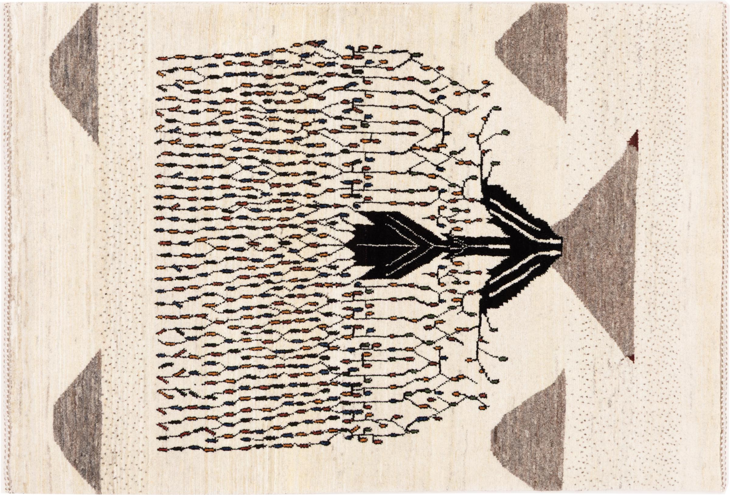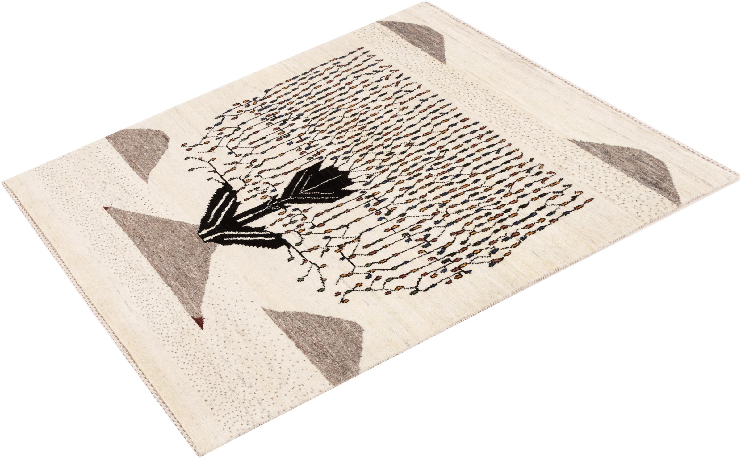Dit prachtige tapijt is een Perzisch Gabbeh-tapijt en behoort daarom tot de hoogste kwaliteit Gabbeh-tapijten. De tapijten worden geknoopt door nomaden of semi-nomaden in Iran volgens traditioneel vakmanschap. De eenvoudige motieven en patronen zijn vooral geïnspireerd op de directe omgeving van de nomaden. Zo zijn er bijvoorbeeld kamelen, bomen of struiken te vinden op de traditionele tapijten. De Perzische Gabbeh-tapijten zijn gemaakt van wol van lokaal opgefokte kuddes schapen. De wol wordt dus meestal nog met de hand gesponnen. Elk van deze oosterse tapijten belichaamt dus een uniek karakter van de eeuwenoude cultuur.