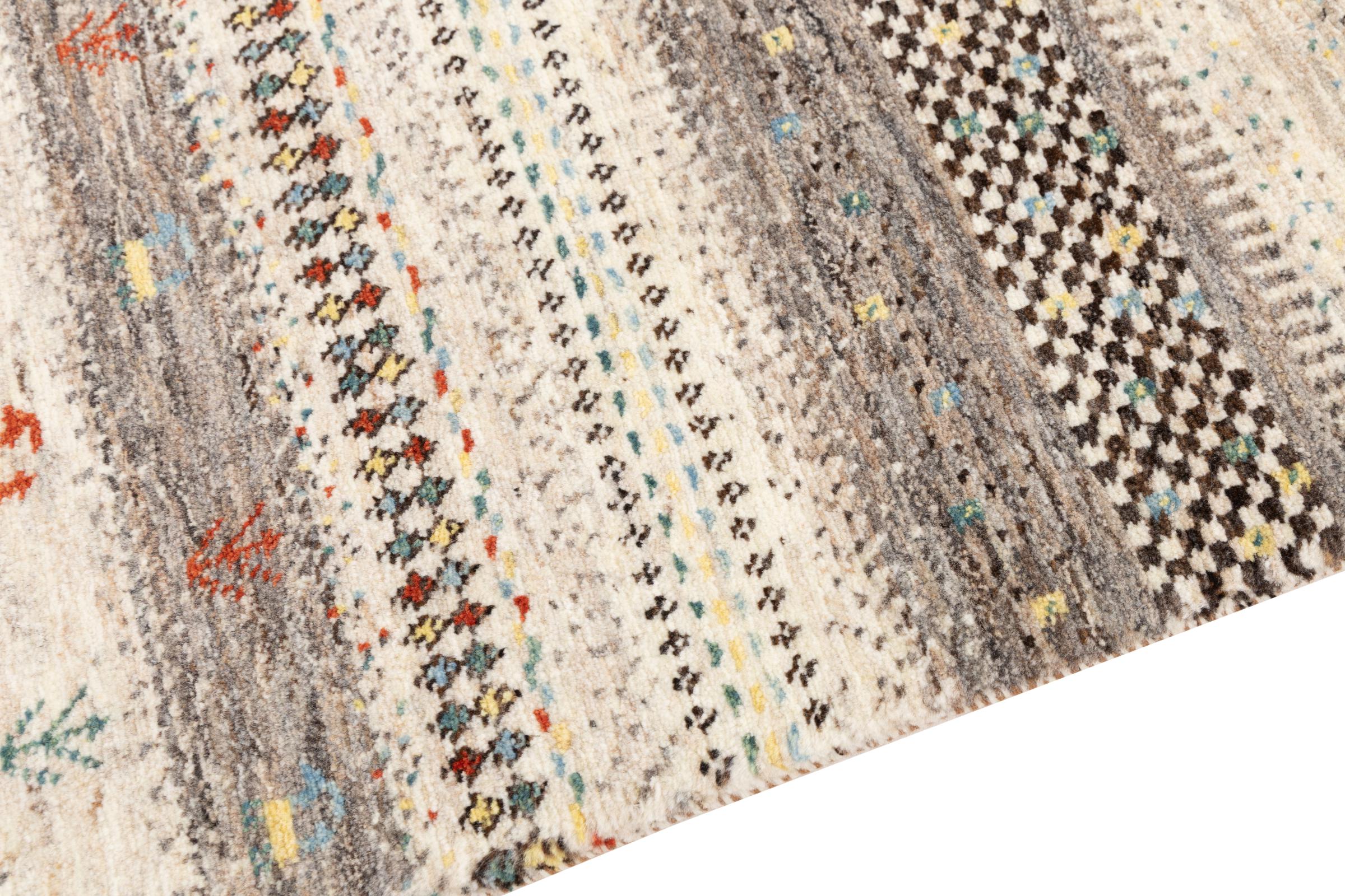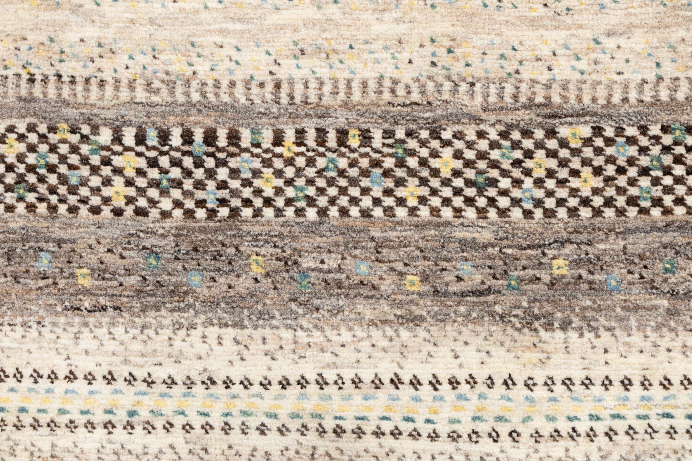 Een verfijning van de al bekende Gabbeh-tapijten: Dit is deze Perzische Gabbeh Loribaft. Het weet indruk te maken met zijn fijnere weefsel en prachtige ontwerp. Het werd door Loren in het zuiden van Perzië met de hand geknoopt van de beste handgesponnen schapenwol. Voor het verven van de wol worden uitsluitend pure plantaardige kleurstoffen gebruikt. Met dit vloerkleed haal je de hoogste standaard van een Gabbeh-tapijt in huis.