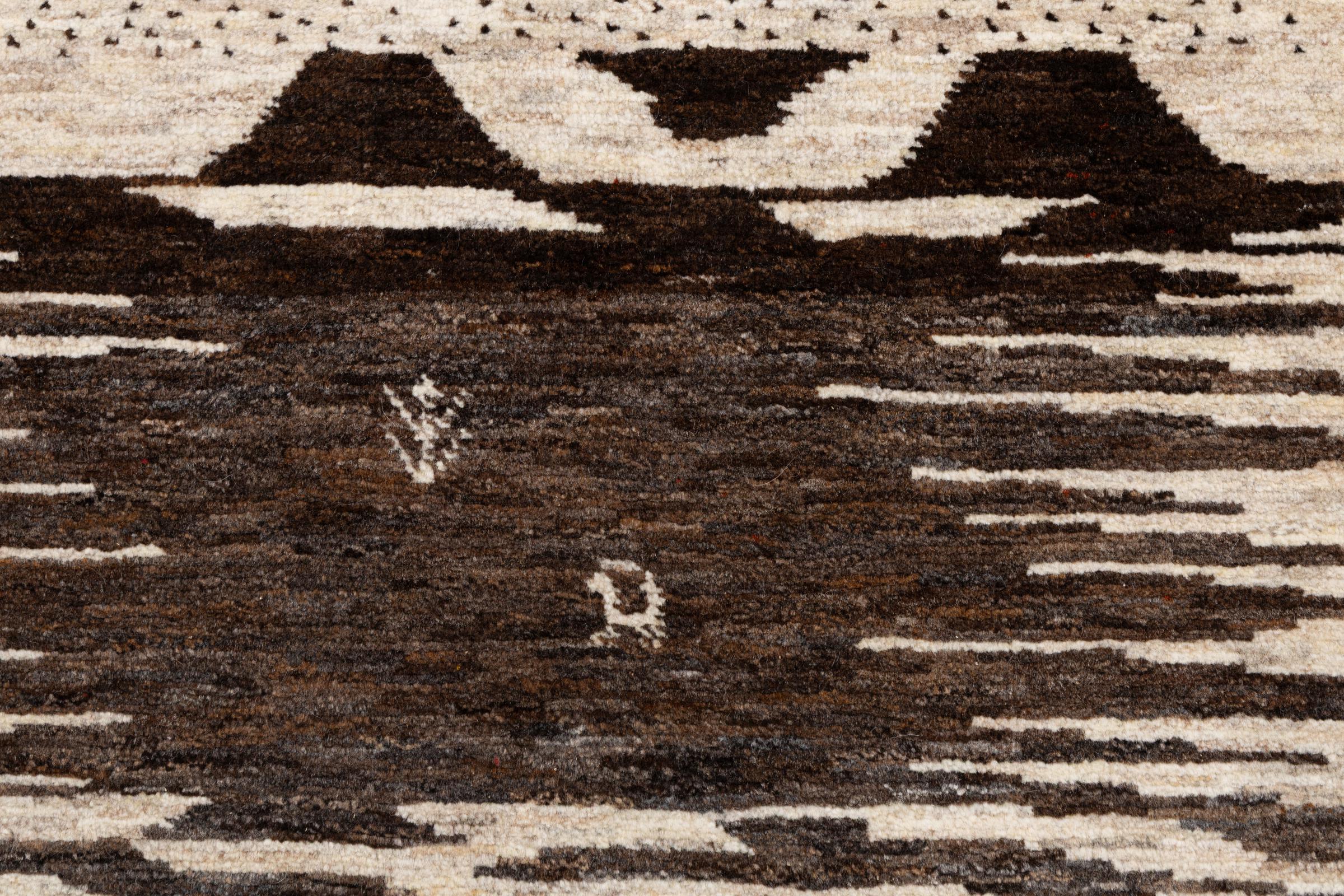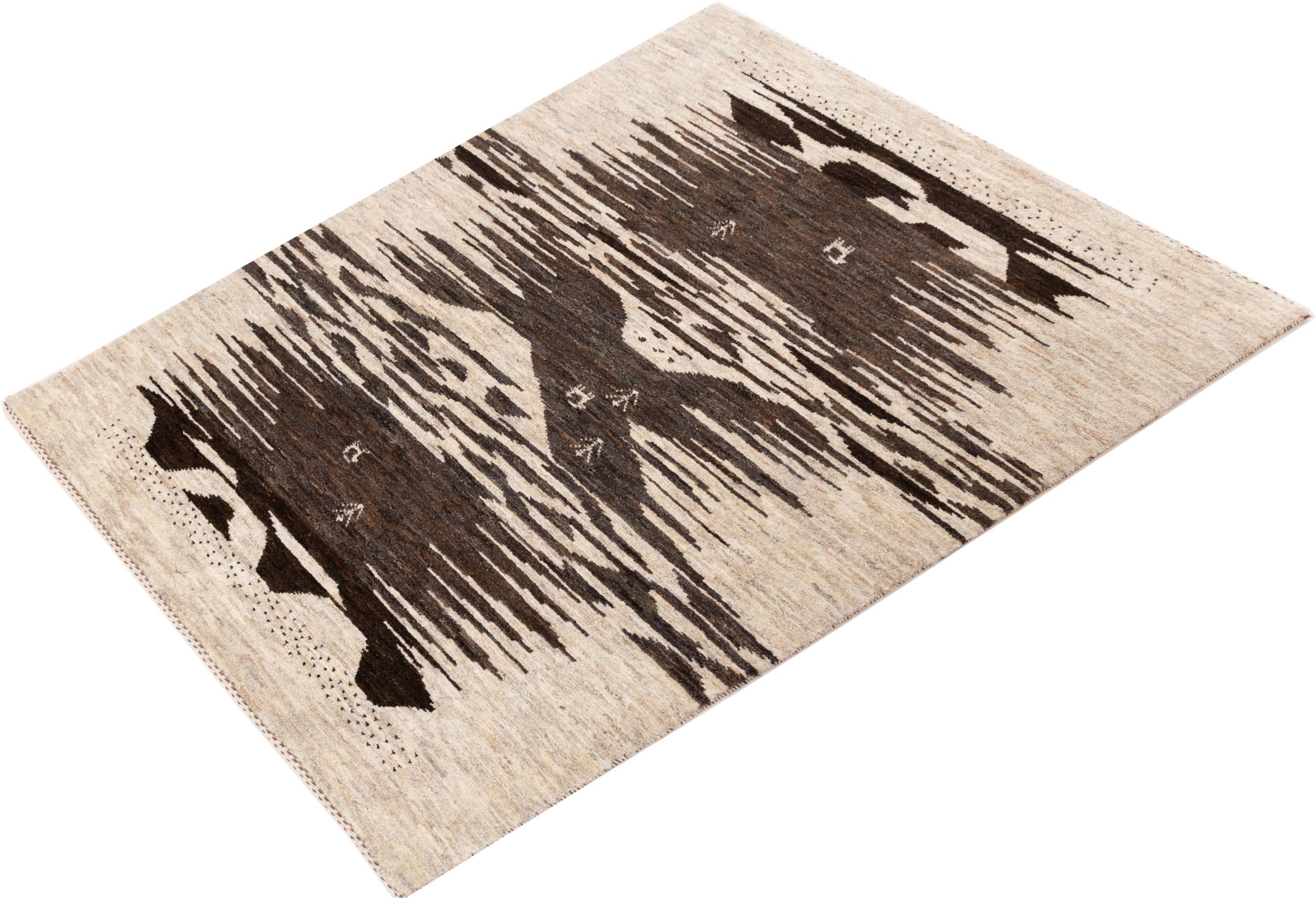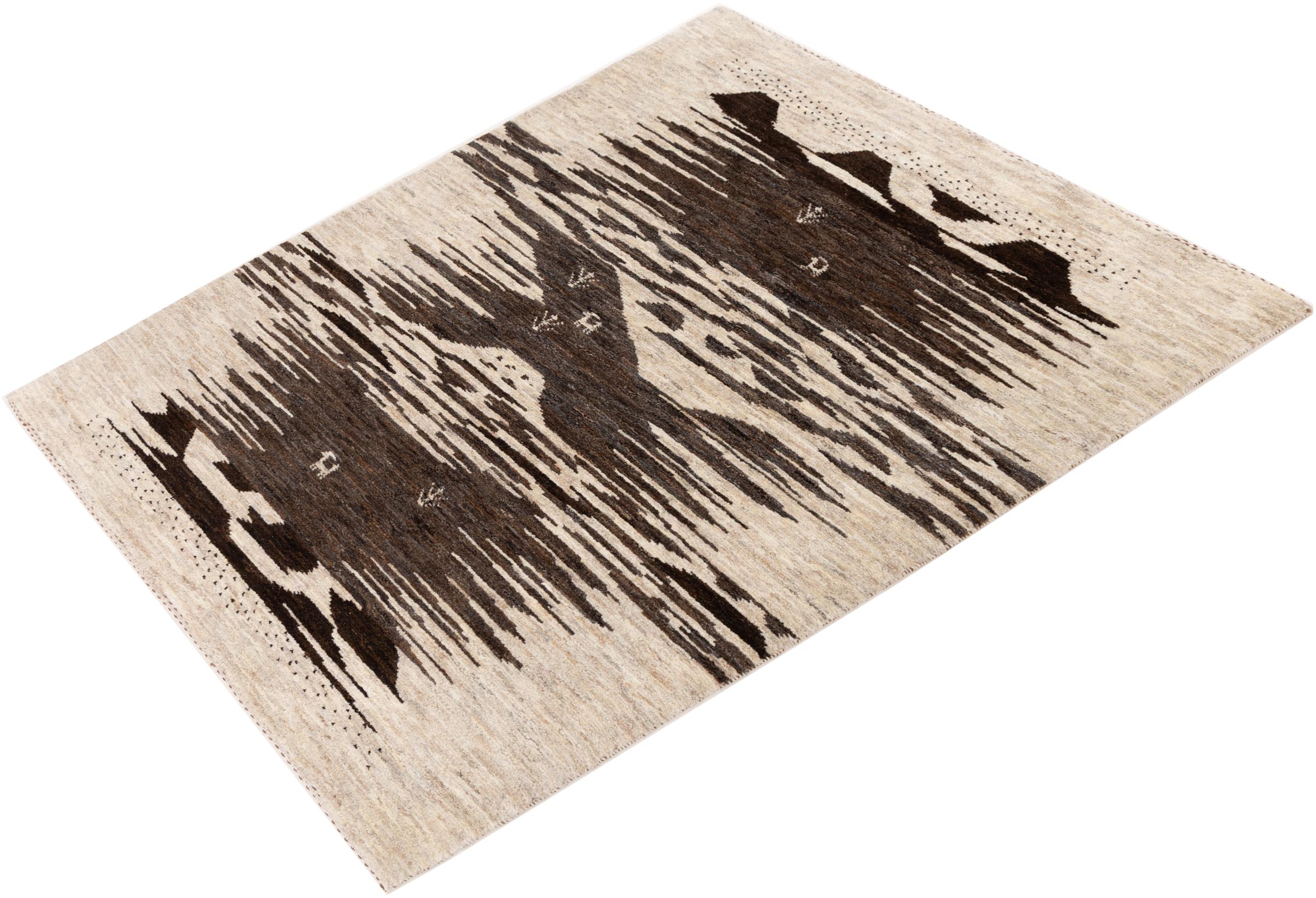 Dit prachtige tapijt is een Perzisch Gabbeh-tapijt en behoort daarom tot de hoogste kwaliteit Gabbeh-tapijten. De tapijten worden geknoopt door nomaden of semi-nomaden in Iran volgens traditioneel vakmanschap. De eenvoudige motieven en patronen zijn vooral geïnspireerd op de directe omgeving van de nomaden. Zo zijn er bijvoorbeeld kamelen, bomen of struiken te vinden op de traditionele tapijten. De Perzische Gabbeh-tapijten zijn gemaakt van wol van lokaal opgefokte kuddes schapen. De wol wordt dus meestal nog met de hand gesponnen. Elk van deze oosterse tapijten belichaamt dus een uniek karakter van de eeuwenoude cultuur.