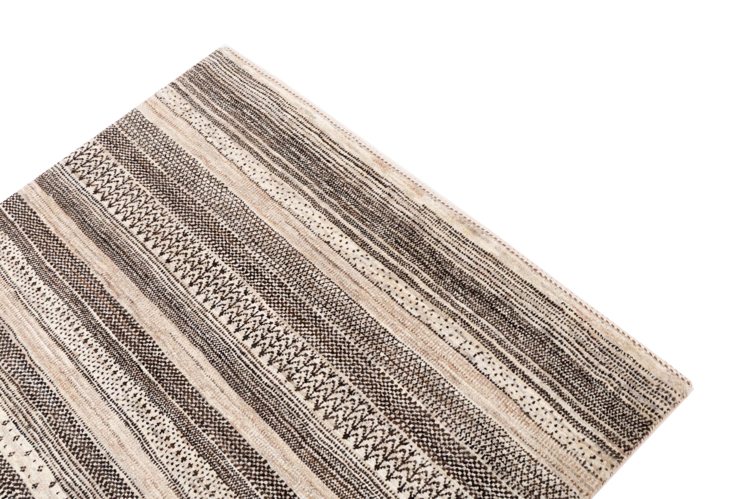 Een verfijning van de al bekende Gabbeh-tapijten: Dit is deze Perzische Gabbeh Loribaft. Het weet indruk te maken met zijn fijnere weefsel en prachtige ontwerp. Het werd door Loren in het zuiden van Perzië met de hand geknoopt van de beste handgesponnen schapenwol. Voor het verven van de wol worden uitsluitend pure plantaardige kleurstoffen gebruikt. Met dit vloerkleed haal je de hoogste standaard van een Gabbeh-tapijt in huis.