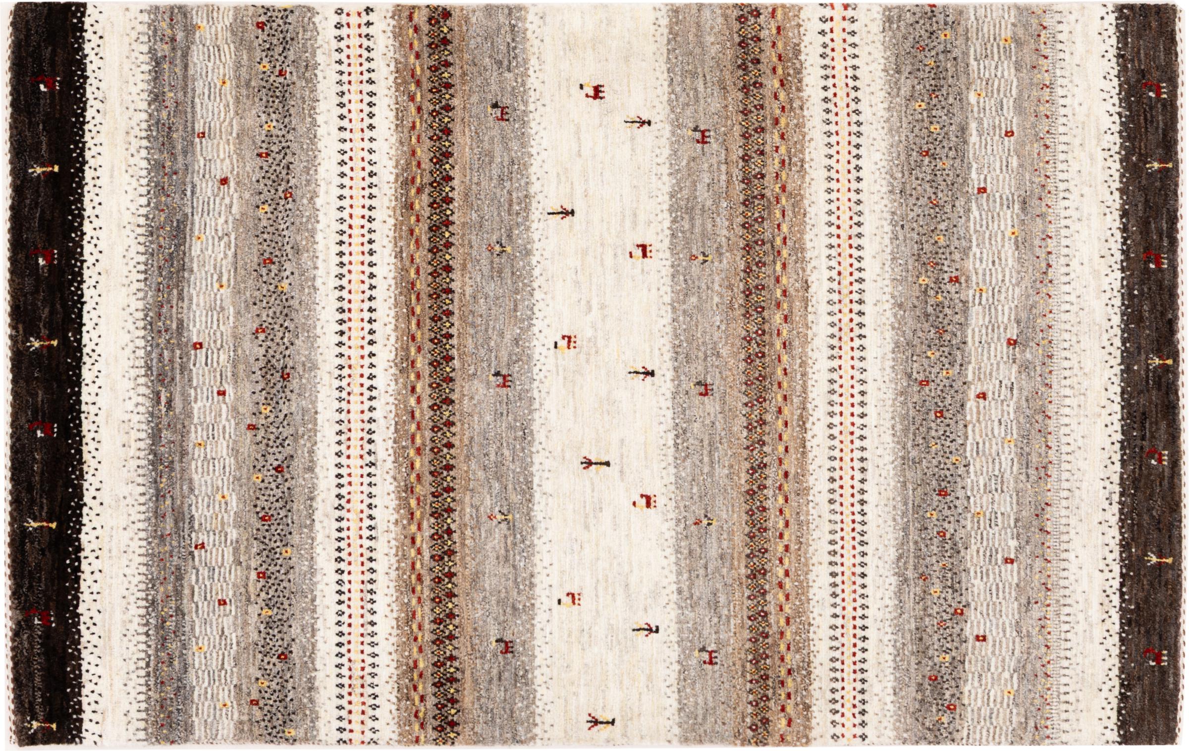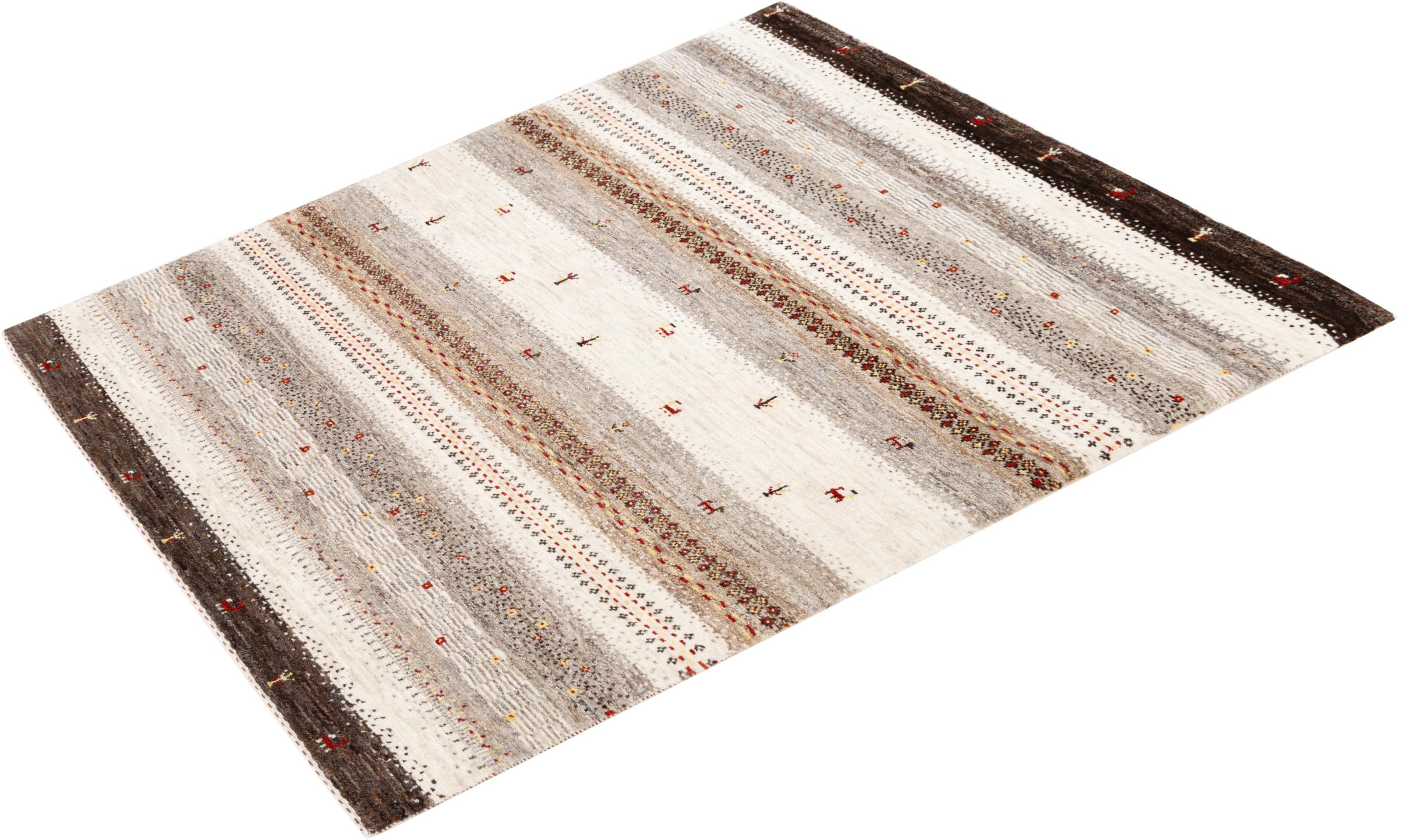 Een verfijning van de al bekende Gabbeh-tapijten: Dit is deze Perzische Gabbeh Loribaft. Het weet indruk te maken met zijn fijnere weefsel en prachtige ontwerp. Het werd door Loren in het zuiden van Perzië met de hand geknoopt van de beste handgesponnen schapenwol. Voor het verven van de wol worden uitsluitend pure plantaardige kleurstoffen gebruikt. Met dit vloerkleed haal je de hoogste standaard van een Gabbeh-tapijt in huis.