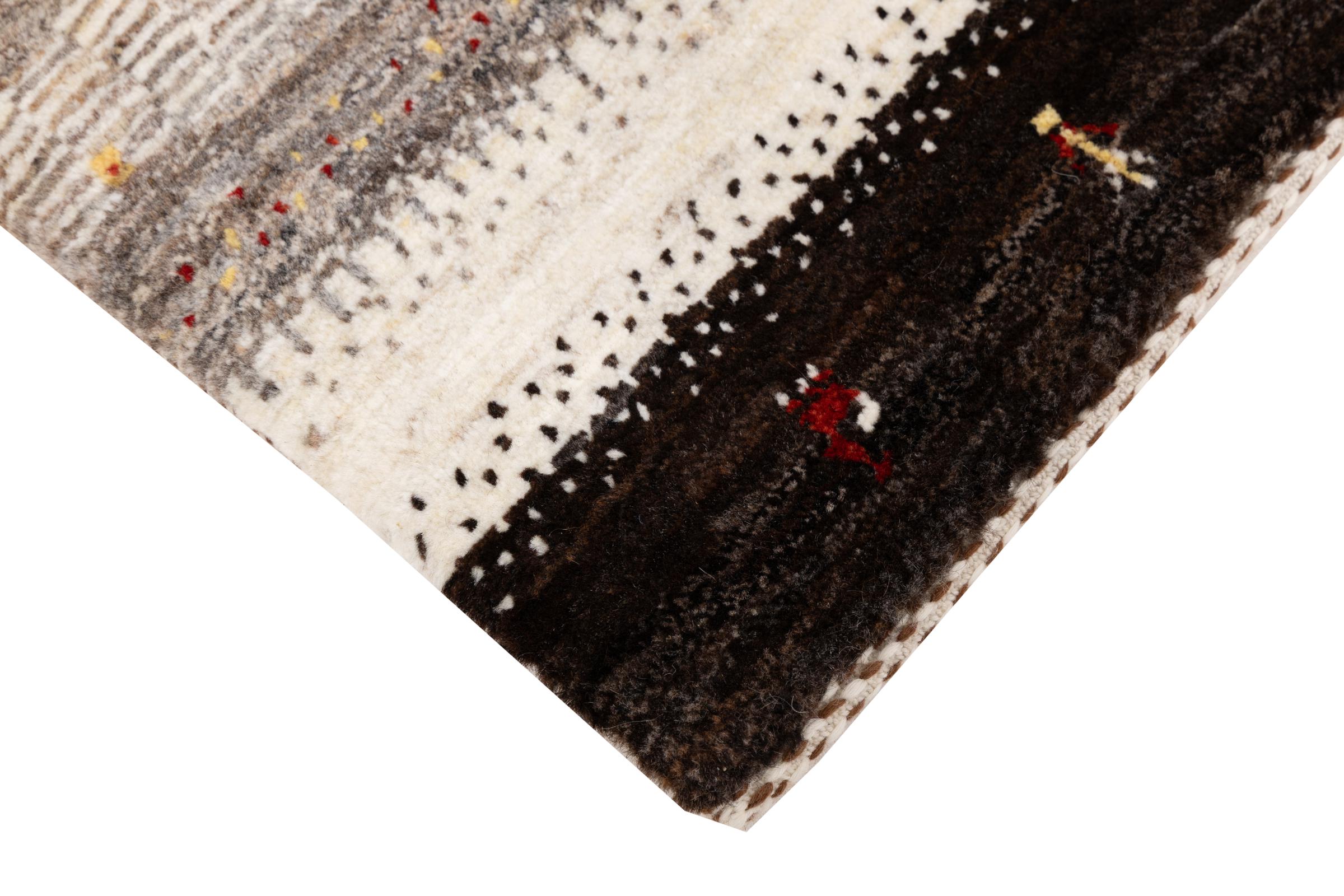 Dit prachtige tapijt is een Perzisch Gabbeh-tapijt en behoort daarom tot de hoogste kwaliteit Gabbeh-tapijten. De tapijten worden geknoopt door nomaden of semi-nomaden in Iran volgens traditioneel vakmanschap. De eenvoudige motieven en patronen zijn vooral geïnspireerd op de directe omgeving van de nomaden. Zo zijn er bijvoorbeeld kamelen, bomen of struiken te vinden op de traditionele tapijten. De Perzische Gabbeh-tapijten zijn gemaakt van wol van lokaal opgefokte kuddes schapen. De wol wordt dus meestal nog met de hand gesponnen. Elk van deze oosterse tapijten belichaamt dus een uniek karakter van de eeuwenoude cultuur.