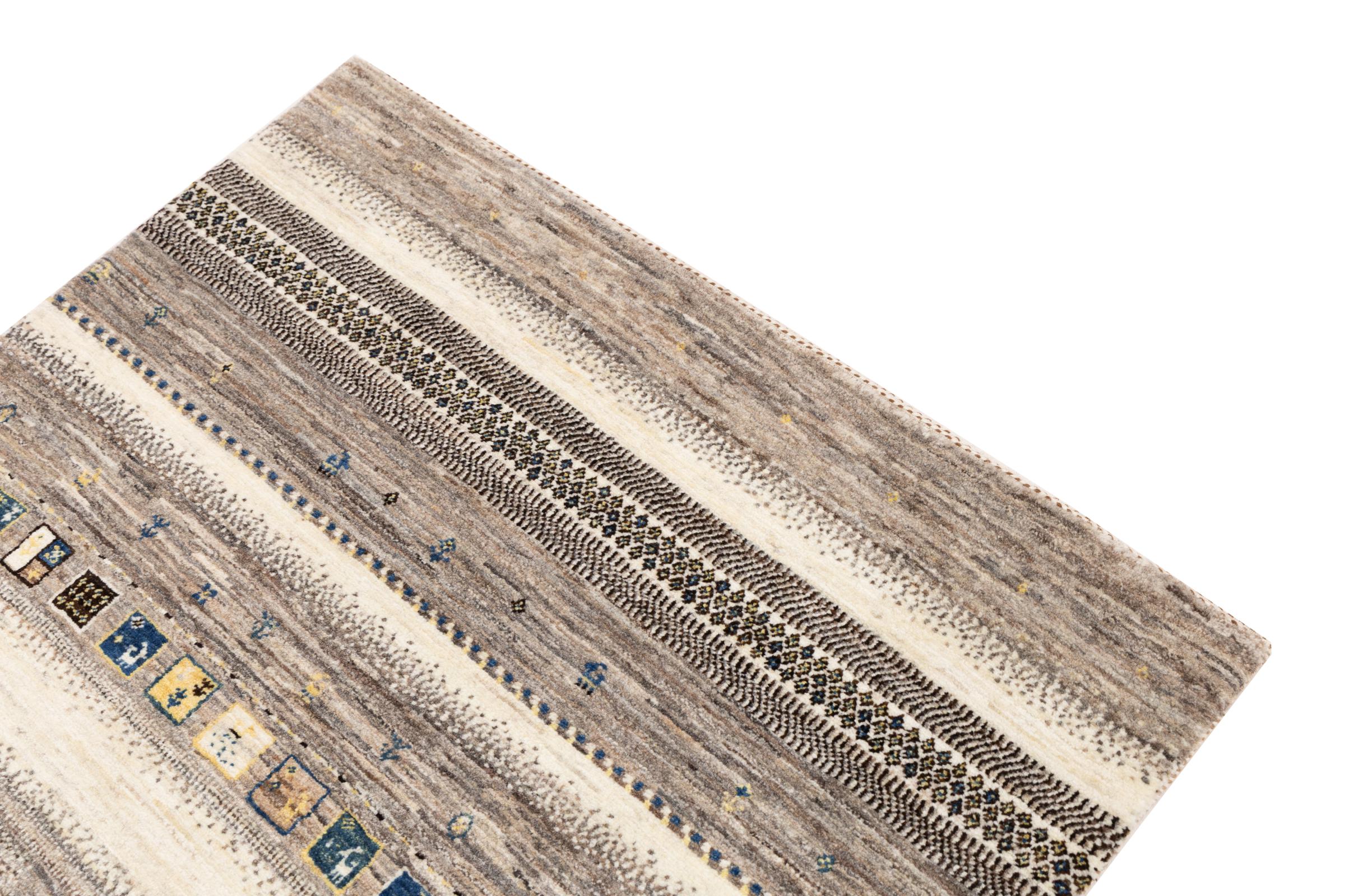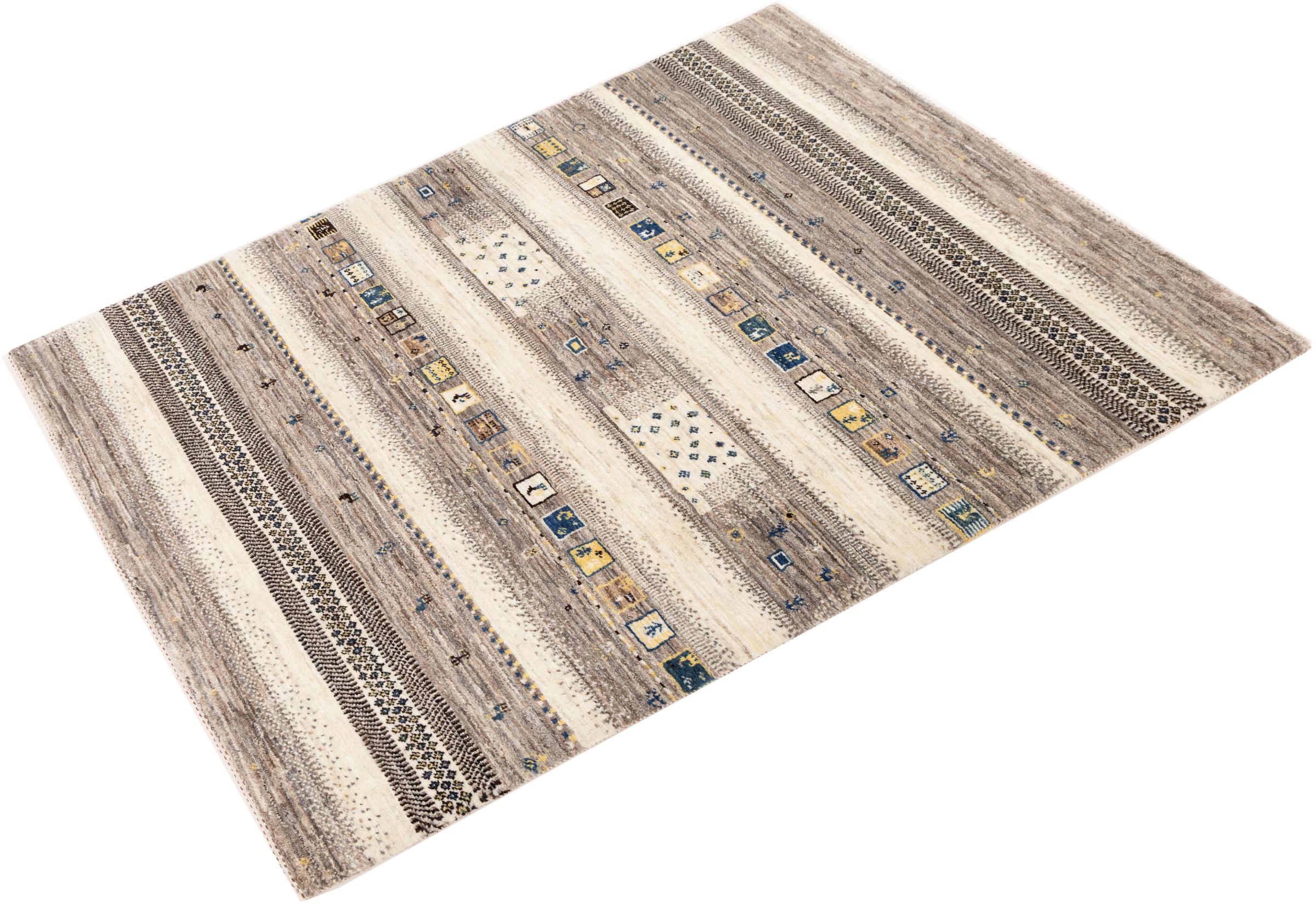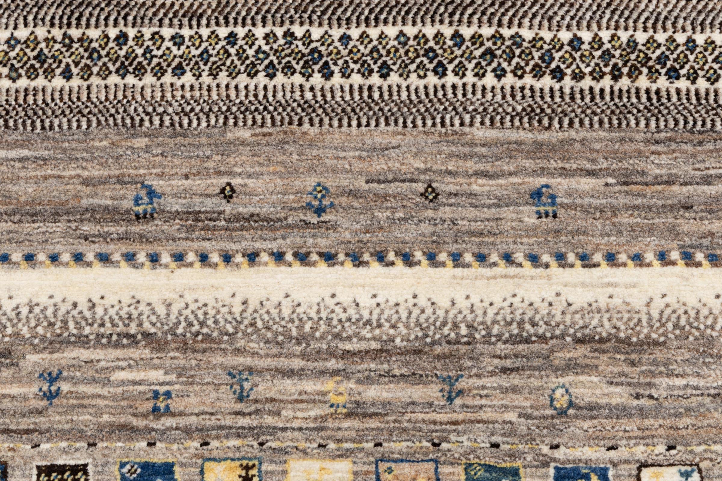 Een verfijning van de al bekende Gabbeh-tapijten: Dit is deze Perzische Gabbeh Loribaft. Het weet indruk te maken met zijn fijnere weefsel en prachtige ontwerp. Het werd door Loren in het zuiden van Perzië met de hand geknoopt van de beste handgesponnen schapenwol. Voor het verven van de wol worden uitsluitend pure plantaardige kleurstoffen gebruikt. Met dit vloerkleed haal je de hoogste standaard van een Gabbeh-tapijt in huis.