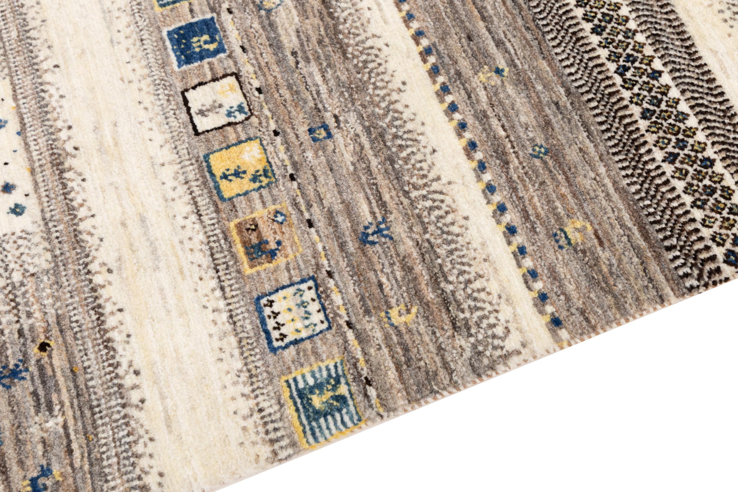 Dit prachtige tapijt is een Perzisch Gabbeh-tapijt en behoort daarom tot de hoogste kwaliteit Gabbeh-tapijten. De tapijten worden geknoopt door nomaden of semi-nomaden in Iran volgens traditioneel vakmanschap. De eenvoudige motieven en patronen zijn vooral geïnspireerd op de directe omgeving van de nomaden. Zo zijn er bijvoorbeeld kamelen, bomen of struiken te vinden op de traditionele tapijten. De Perzische Gabbeh-tapijten zijn gemaakt van wol van lokaal opgefokte kuddes schapen. De wol wordt dus meestal nog met de hand gesponnen. Elk van deze oosterse tapijten belichaamt dus een uniek karakter van de eeuwenoude cultuur.