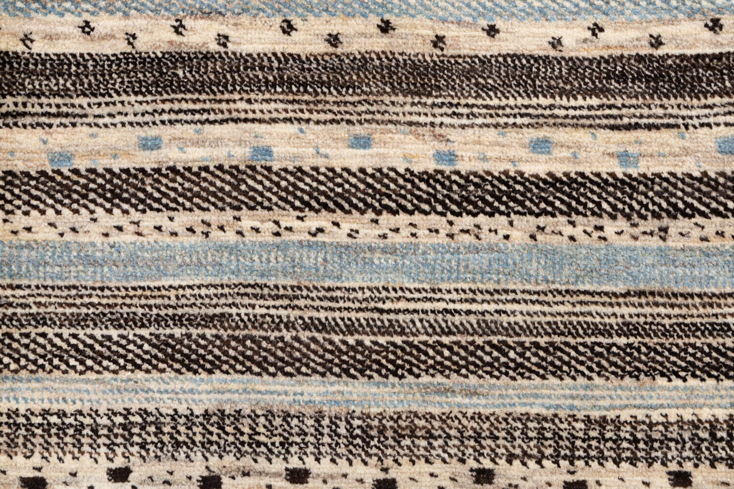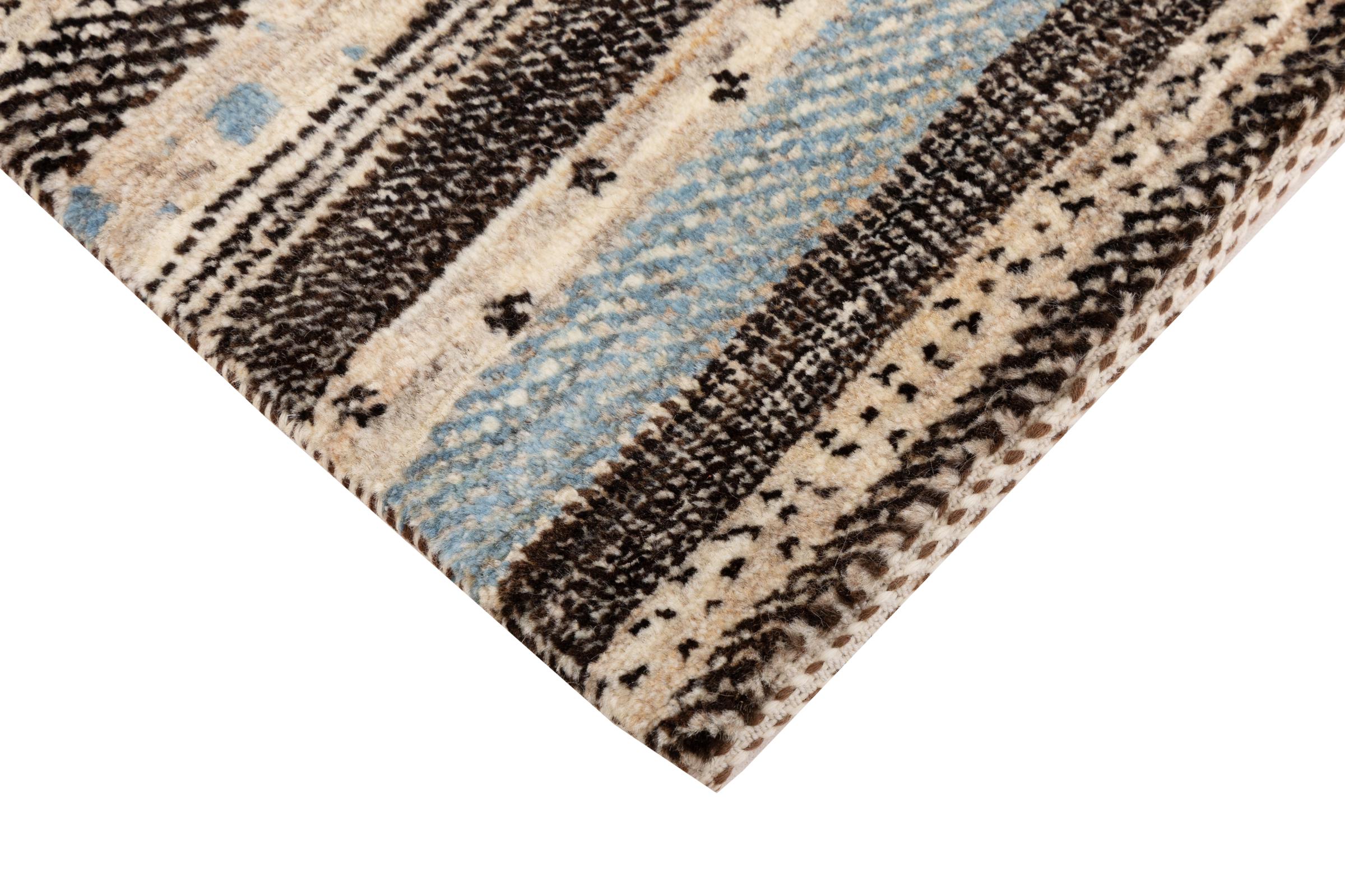 Dit prachtige tapijt is een Perzisch Gabbeh-tapijt en behoort daarom tot de hoogste kwaliteit Gabbeh-tapijten. De tapijten worden geknoopt door nomaden of semi-nomaden in Iran volgens traditioneel vakmanschap. De eenvoudige motieven en patronen zijn vooral geïnspireerd op de directe omgeving van de nomaden. Zo zijn er bijvoorbeeld kamelen, bomen of struiken te vinden op de traditionele tapijten. De Perzische Gabbeh-tapijten zijn gemaakt van wol van lokaal opgefokte kuddes schapen. De wol wordt dus meestal nog met de hand gesponnen. Elk van deze oosterse tapijten belichaamt dus een uniek karakter van de eeuwenoude cultuur.