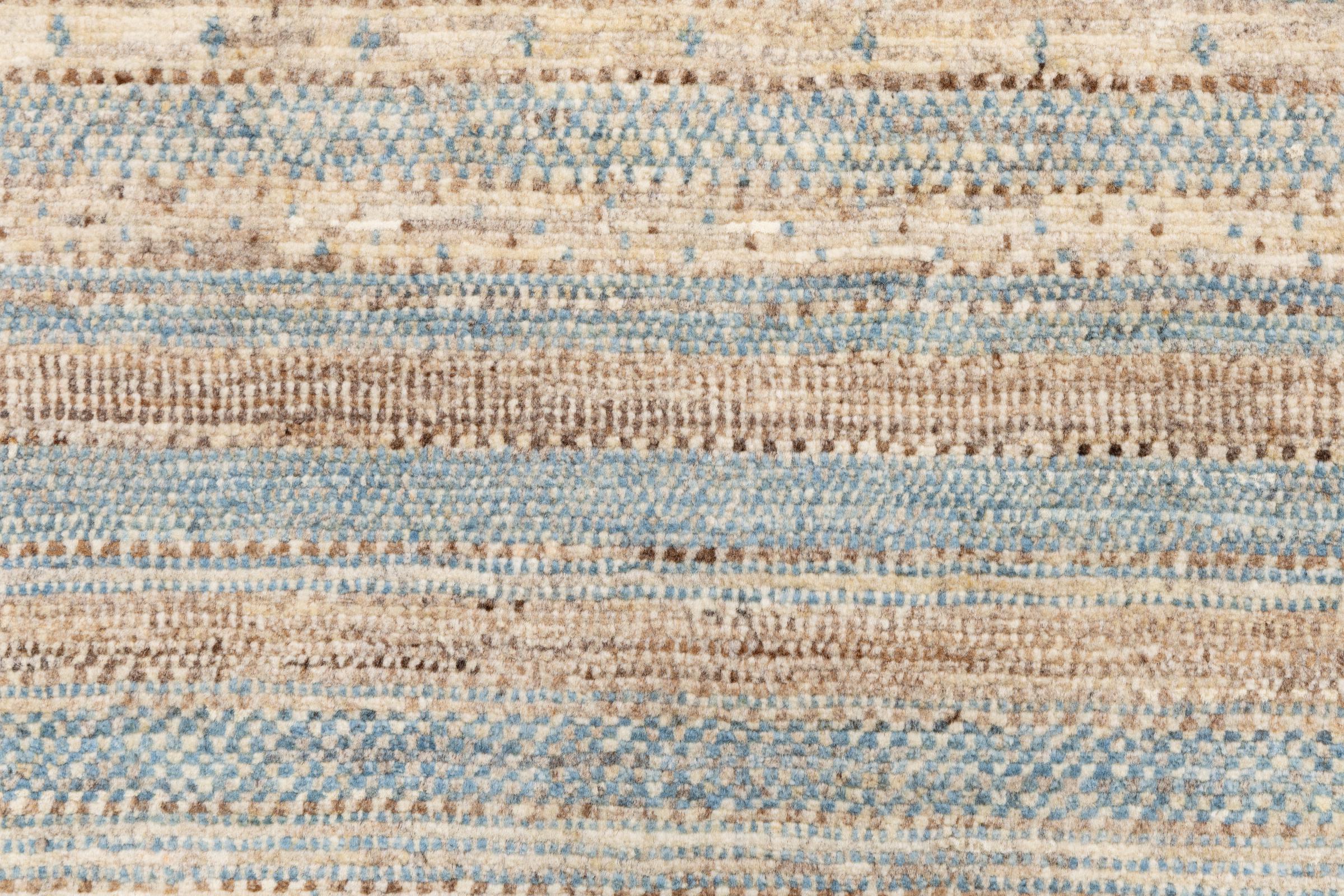 Dit prachtige tapijt is een Perzisch Gabbeh-tapijt en behoort daarom tot de hoogste kwaliteit Gabbeh-tapijten. De tapijten worden geknoopt door nomaden of semi-nomaden in Iran volgens traditioneel vakmanschap. De eenvoudige motieven en patronen zijn vooral geïnspireerd op de directe omgeving van de nomaden. Zo zijn er bijvoorbeeld kamelen, bomen of struiken te vinden op de traditionele tapijten. De Perzische Gabbeh-tapijten zijn gemaakt van wol van lokaal opgefokte kuddes schapen. De wol wordt dus meestal nog met de hand gesponnen. Elk van deze oosterse tapijten belichaamt dus een uniek karakter van de eeuwenoude cultuur.