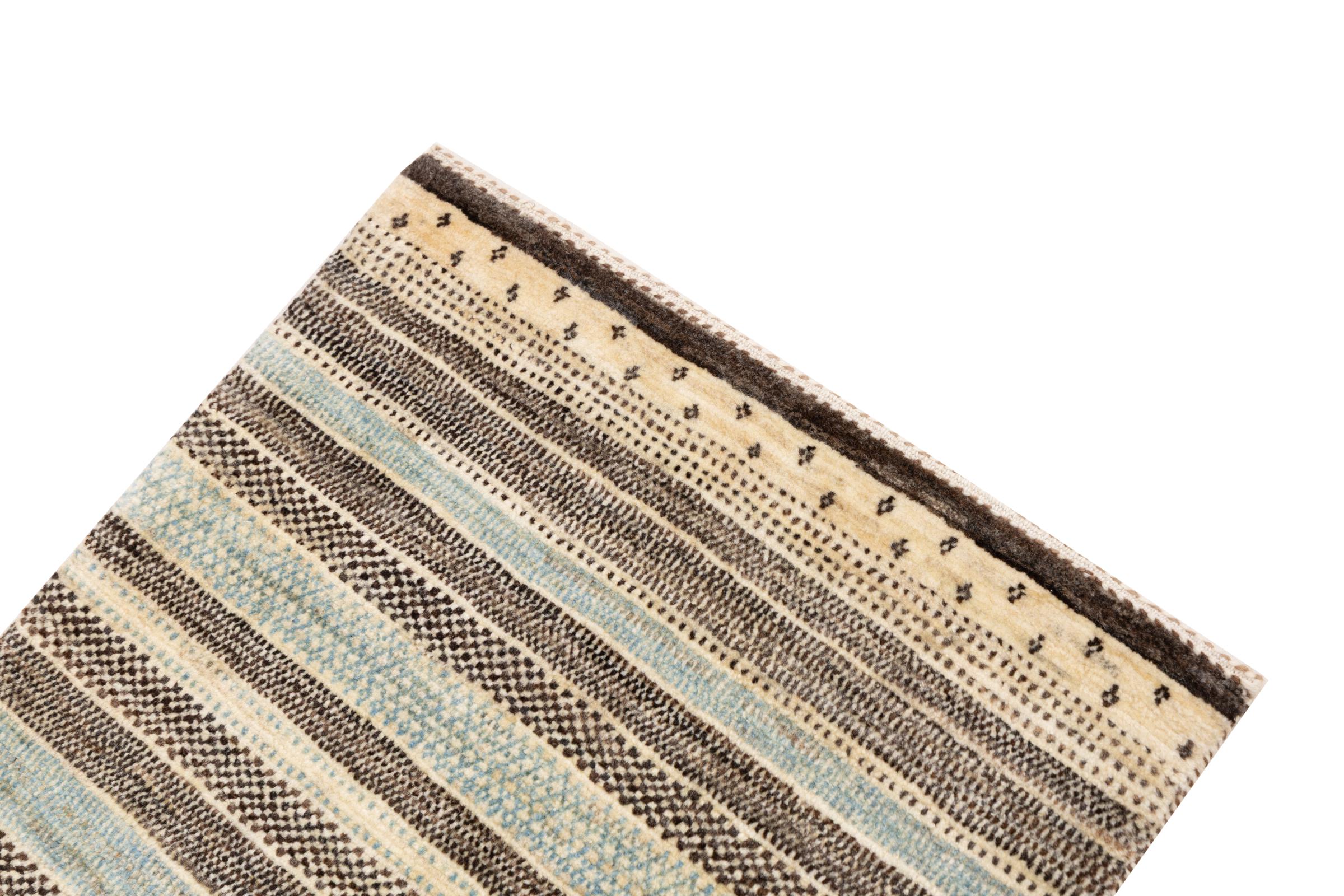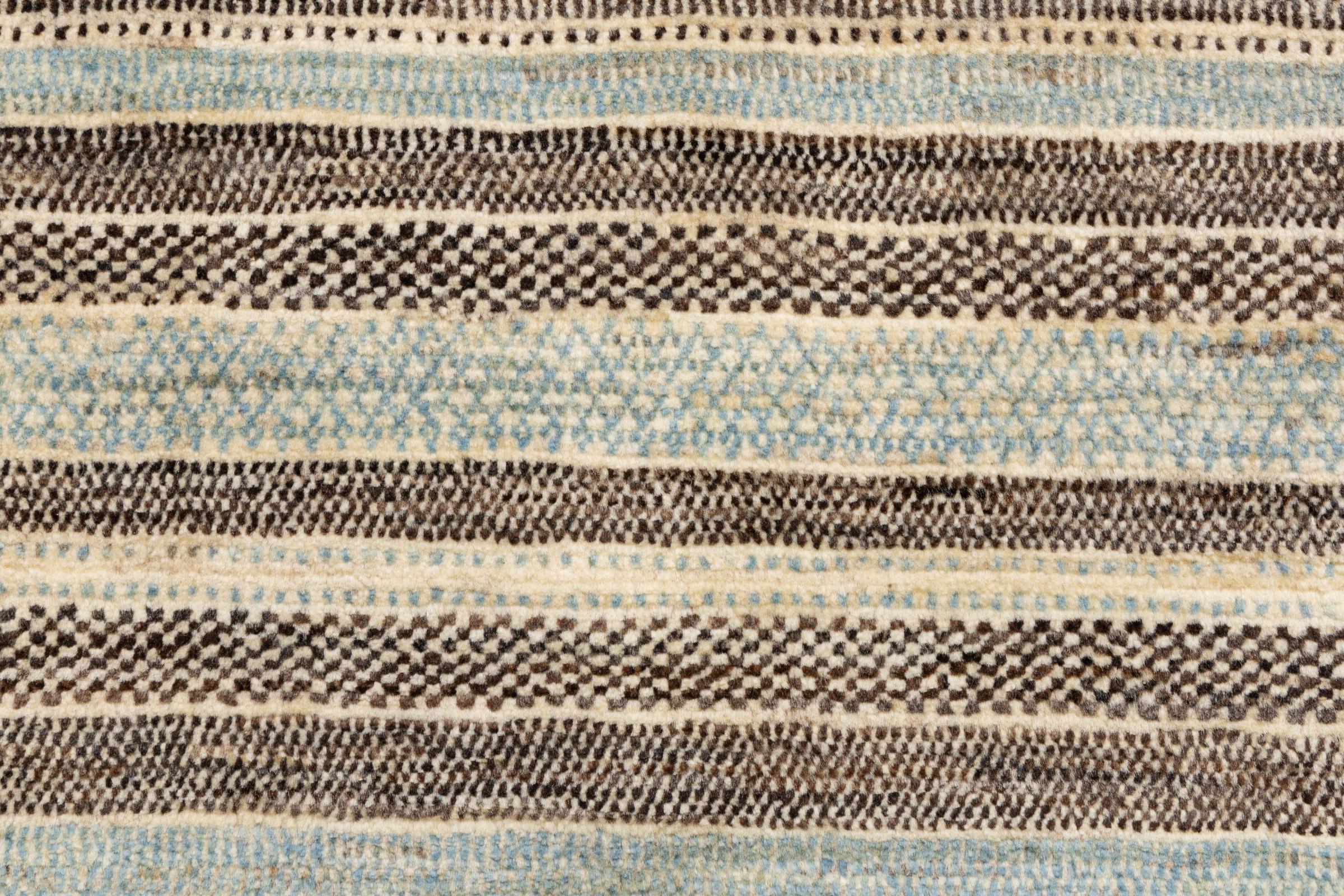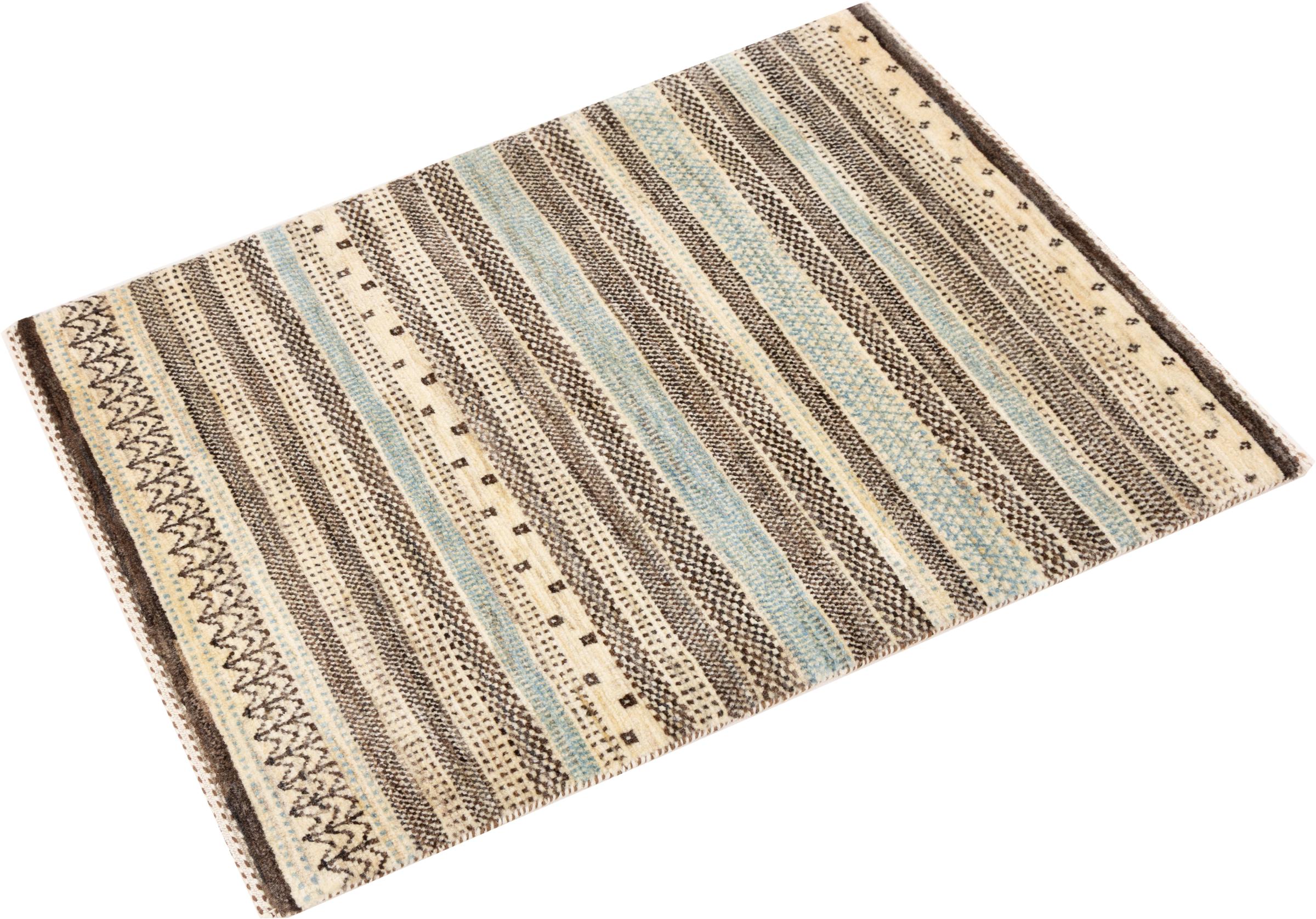 Een verfijning van de al bekende Gabbeh-tapijten: Dit is deze Perzische Gabbeh Loribaft. Het weet indruk te maken met zijn fijnere weefsel en prachtige ontwerp. Het werd door Loren in het zuiden van Perzië met de hand geknoopt van de beste handgesponnen schapenwol. Voor het verven van de wol worden uitsluitend pure plantaardige kleurstoffen gebruikt. Met dit vloerkleed haal je de hoogste standaard van een Gabbeh-tapijt in huis.
