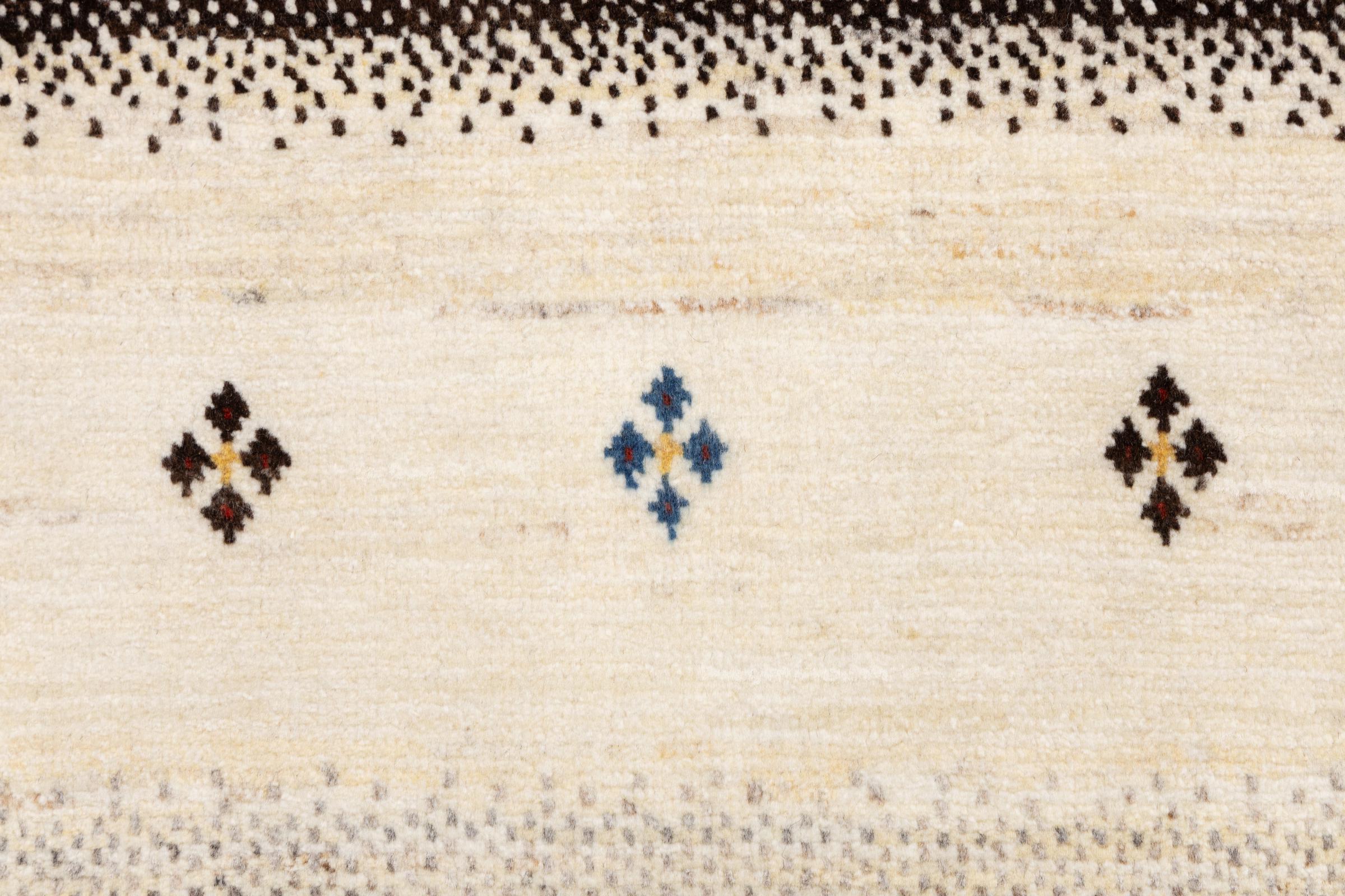 Een verfijning van de al bekende Gabbeh-tapijten: Dit is deze Perzische Gabbeh Loribaft. Het weet indruk te maken met zijn fijnere weefsel en prachtige ontwerp. Het werd door Loren in het zuiden van Perzië met de hand geknoopt van de beste handgesponnen schapenwol. Voor het verven van de wol worden uitsluitend pure plantaardige kleurstoffen gebruikt. Met dit vloerkleed haal je de hoogste standaard van een Gabbeh-tapijt in huis.