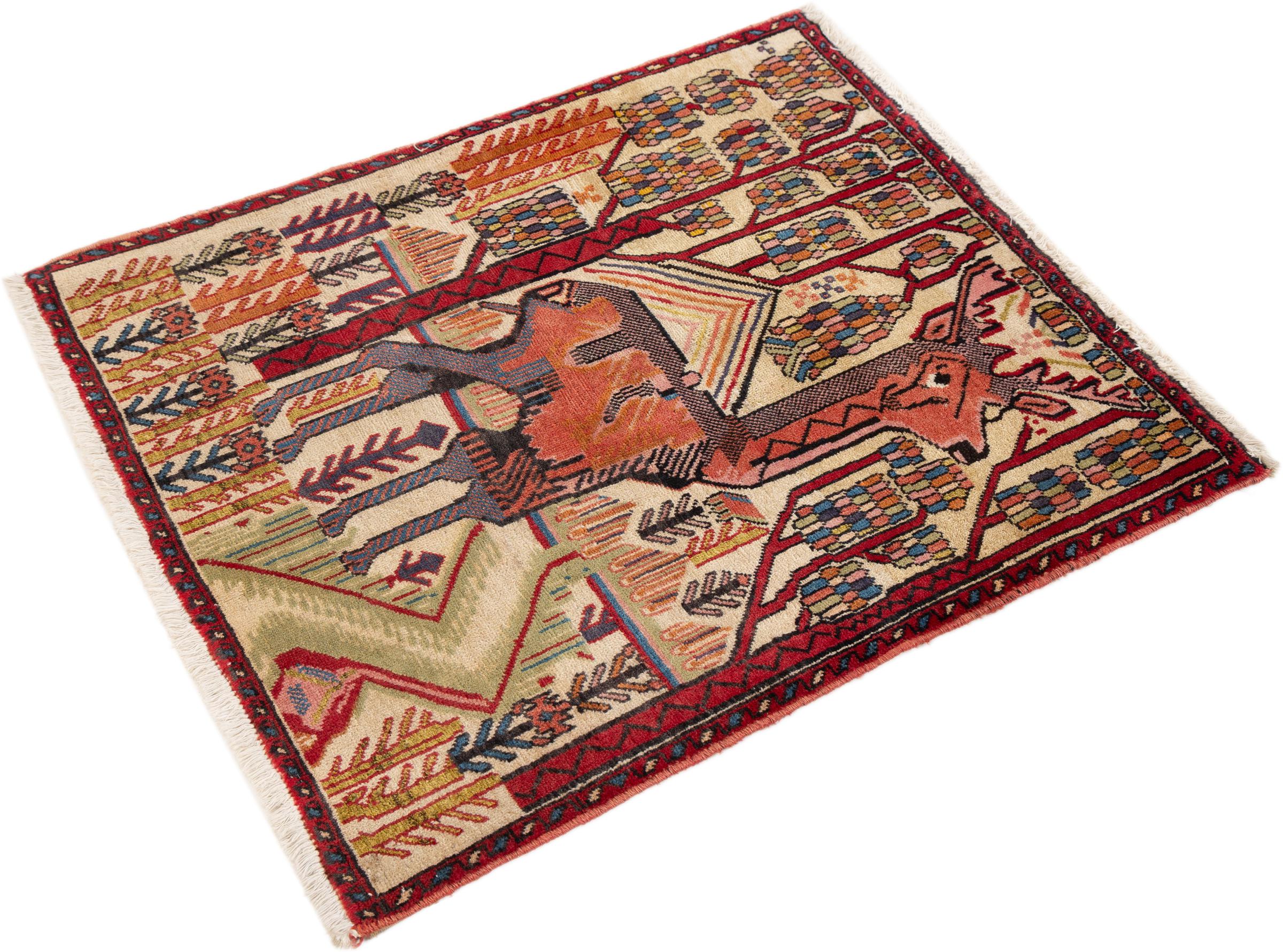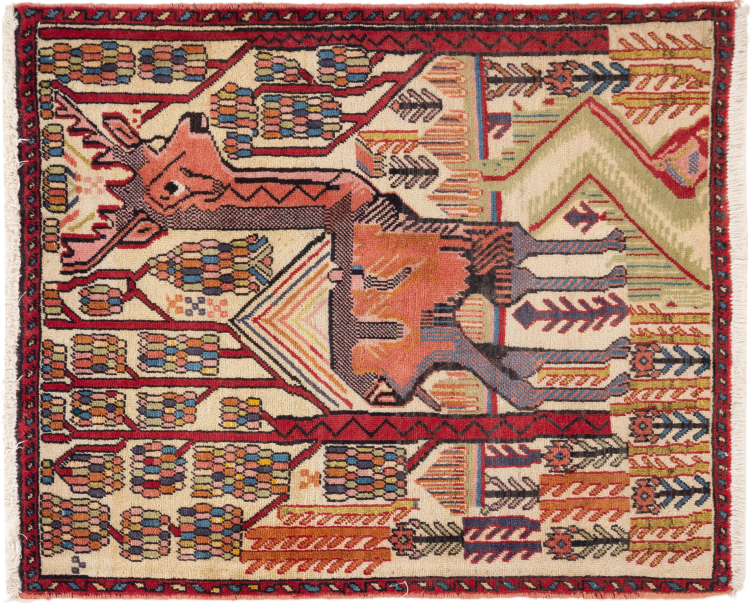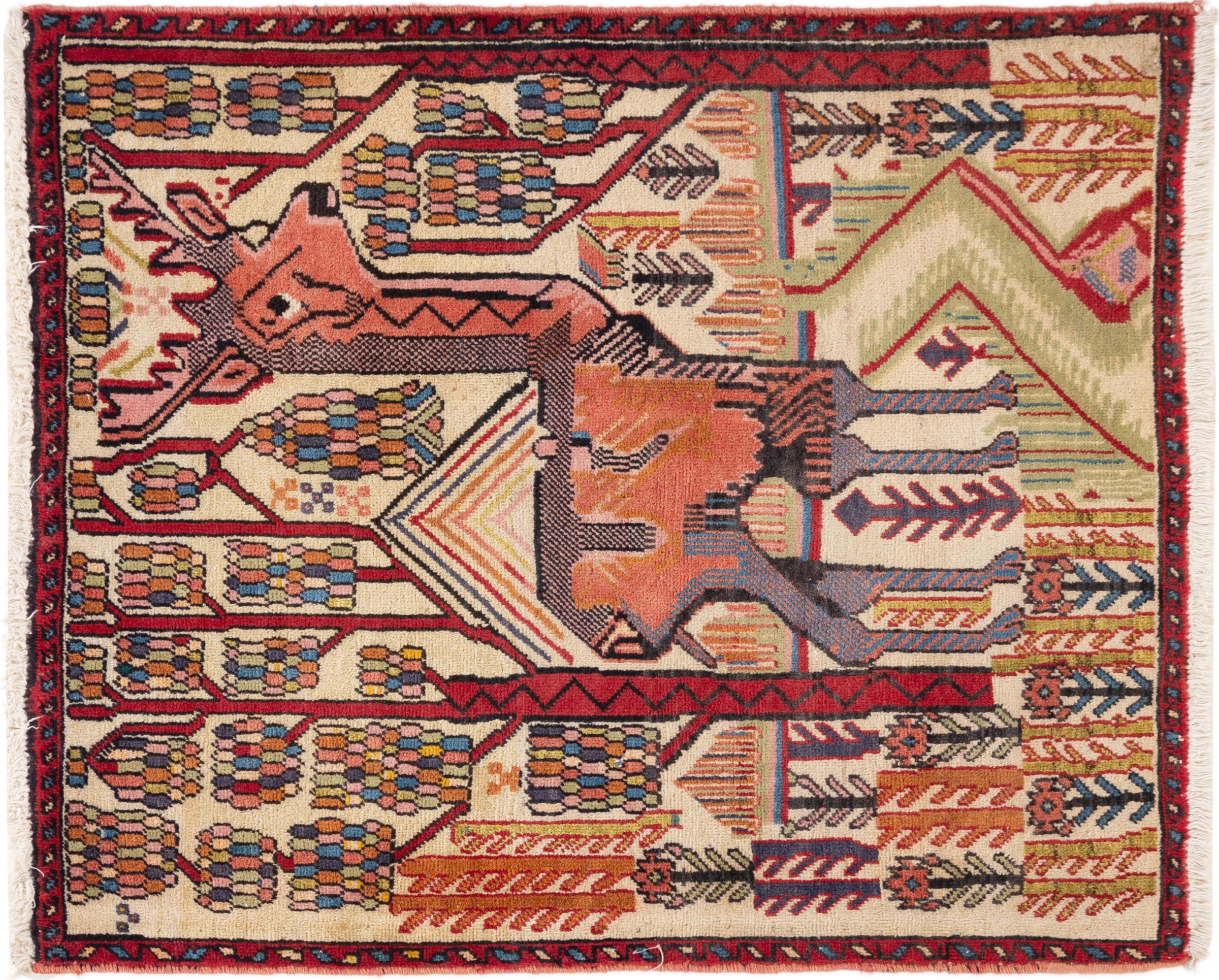 Tapijt ID: 29522100343 Grootte: 91x72 cm Dikte: ap. 12 mm Knoopdichtheid: 128 000 - 160 000 / m² Verwerking: Handgeknoopte Pool: Hand gesponnen wol Schering: Katoen Oorsprong: Perzië / Iran Leeftijd: Nieuw Gewicht: ap. 2 kg Op voorraad: Uniek - Nog maar 1 op voorraad