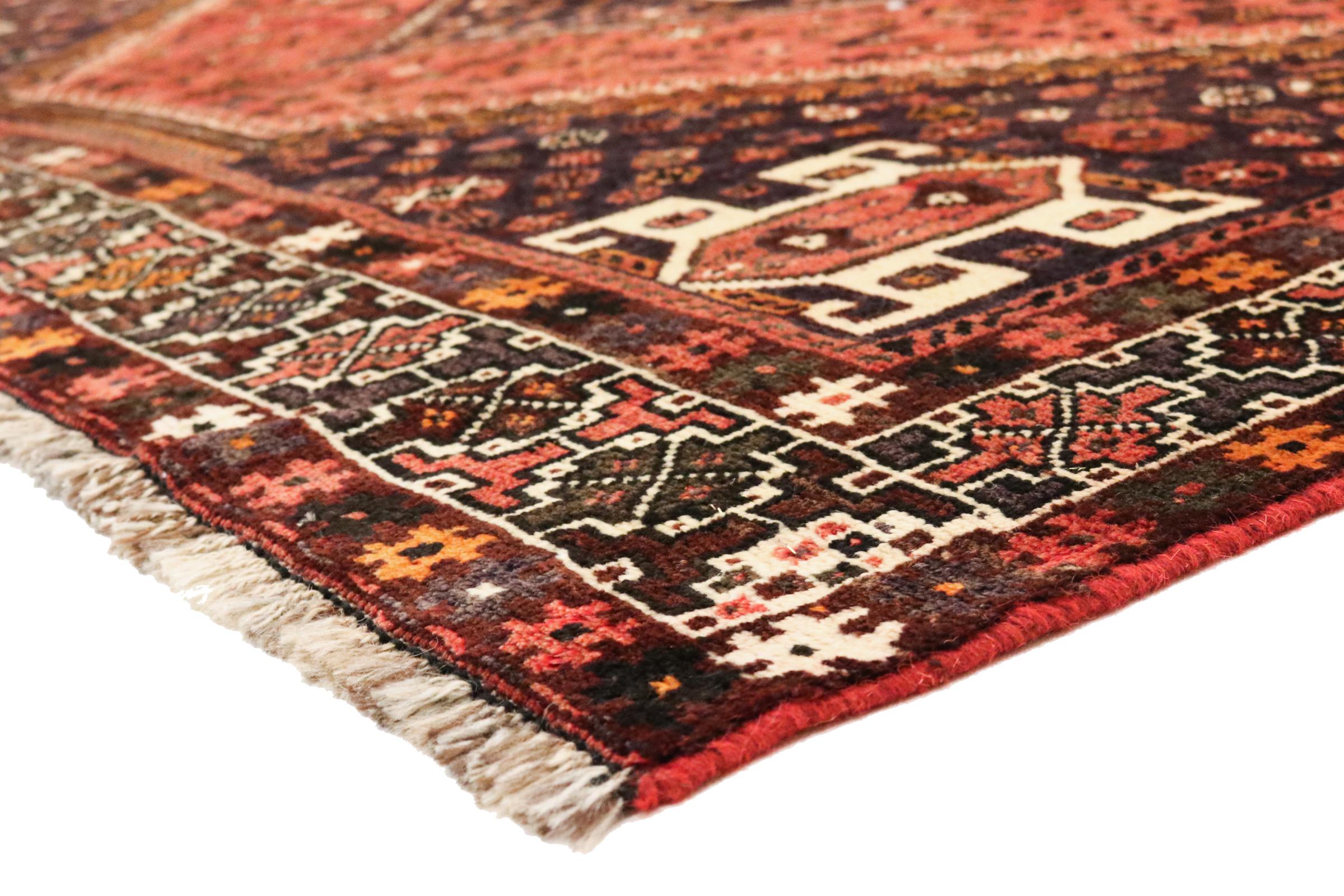 Dit tapijt behoort tot de dorps- en nomadentapijten uit Iran, het vroegere Perzië. Dit type tapijt wordt met de hand geknoopt in kleinere steden en dorpen in de oude traditie. Zelfs nomaden knopen nog steeds Perzische tapijten in de open lucht. De tapijten worden geknoopt zonder patroon en volledig vanaf de kop. Ze worden gekenmerkt door klassieke ornamenten, die in rechte en geometrische patronen zijn gerangschikt. Dankzij hun cultureel-traditionele oorsprong hebben deze tapijten een uniek karakter dat het oude Perzië belichaamt.
