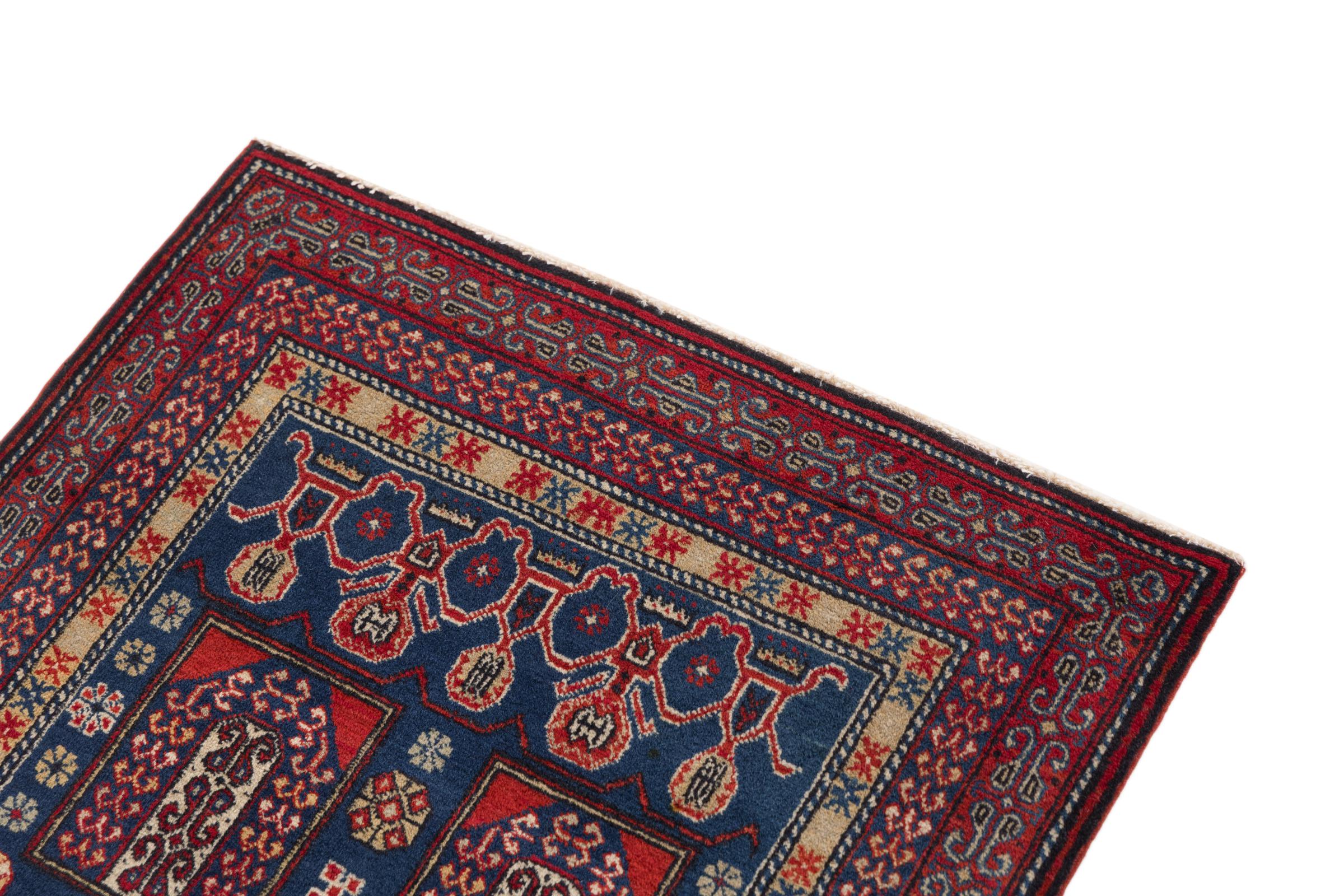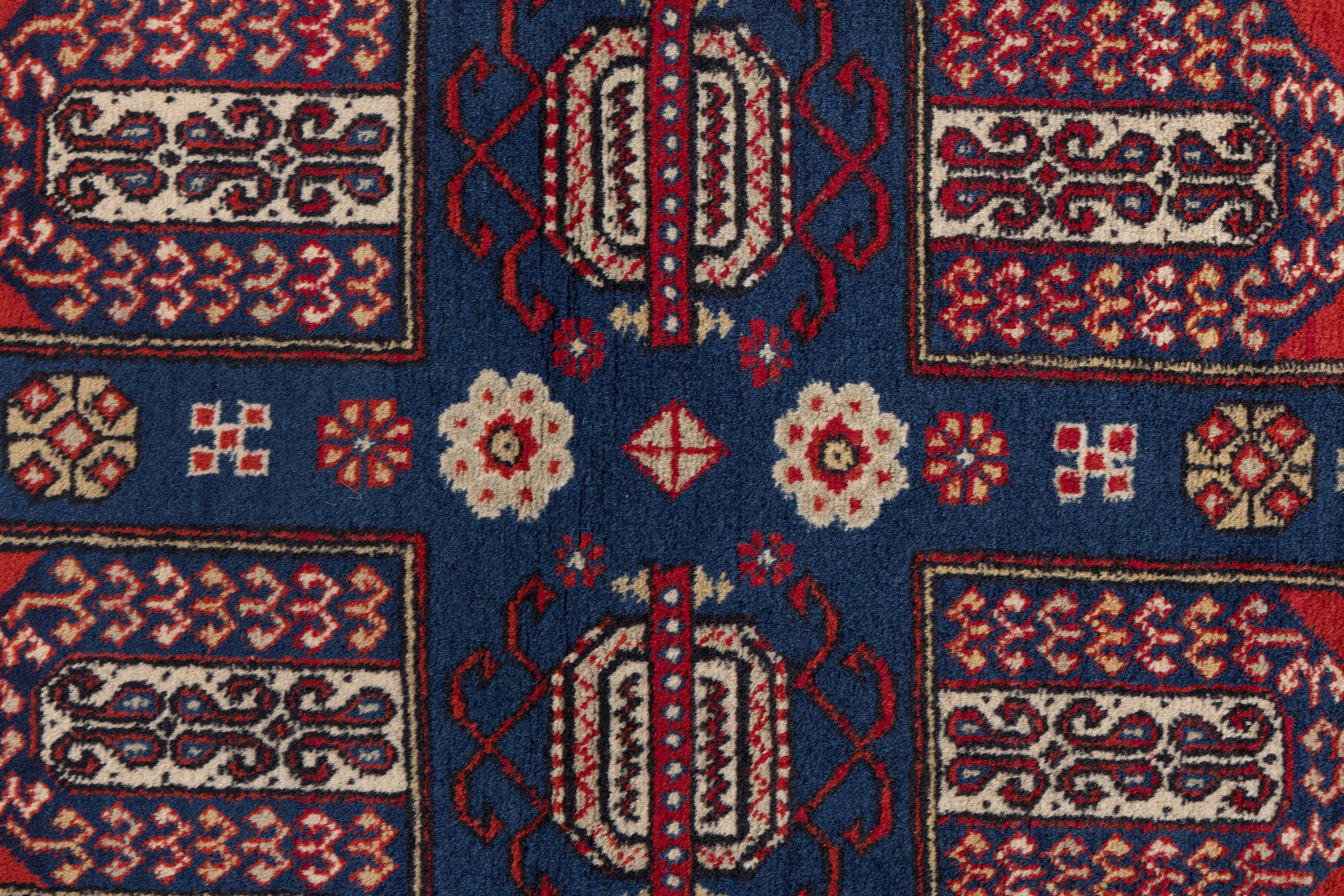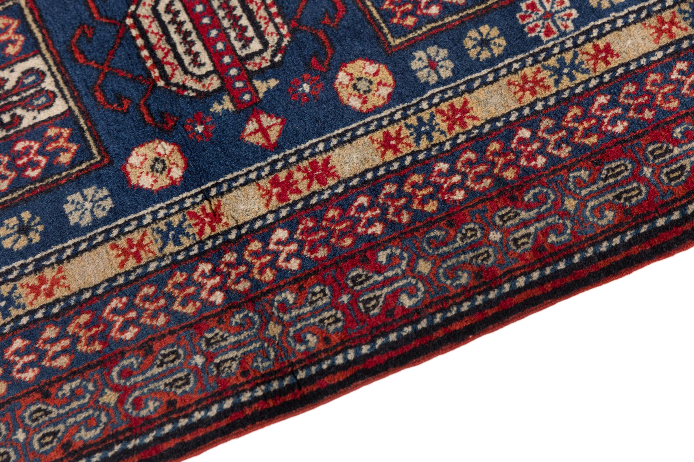 Dit handgeknoopte Shirvan-kleed is een zeer robuust tapijt uit de oostelijke Kaukasus, dat een lust voor het oog is met zijn prachtige kleuren en mooie decoratieve elementen. Dankzij het dichte weefsel is het zeer duurzaam.