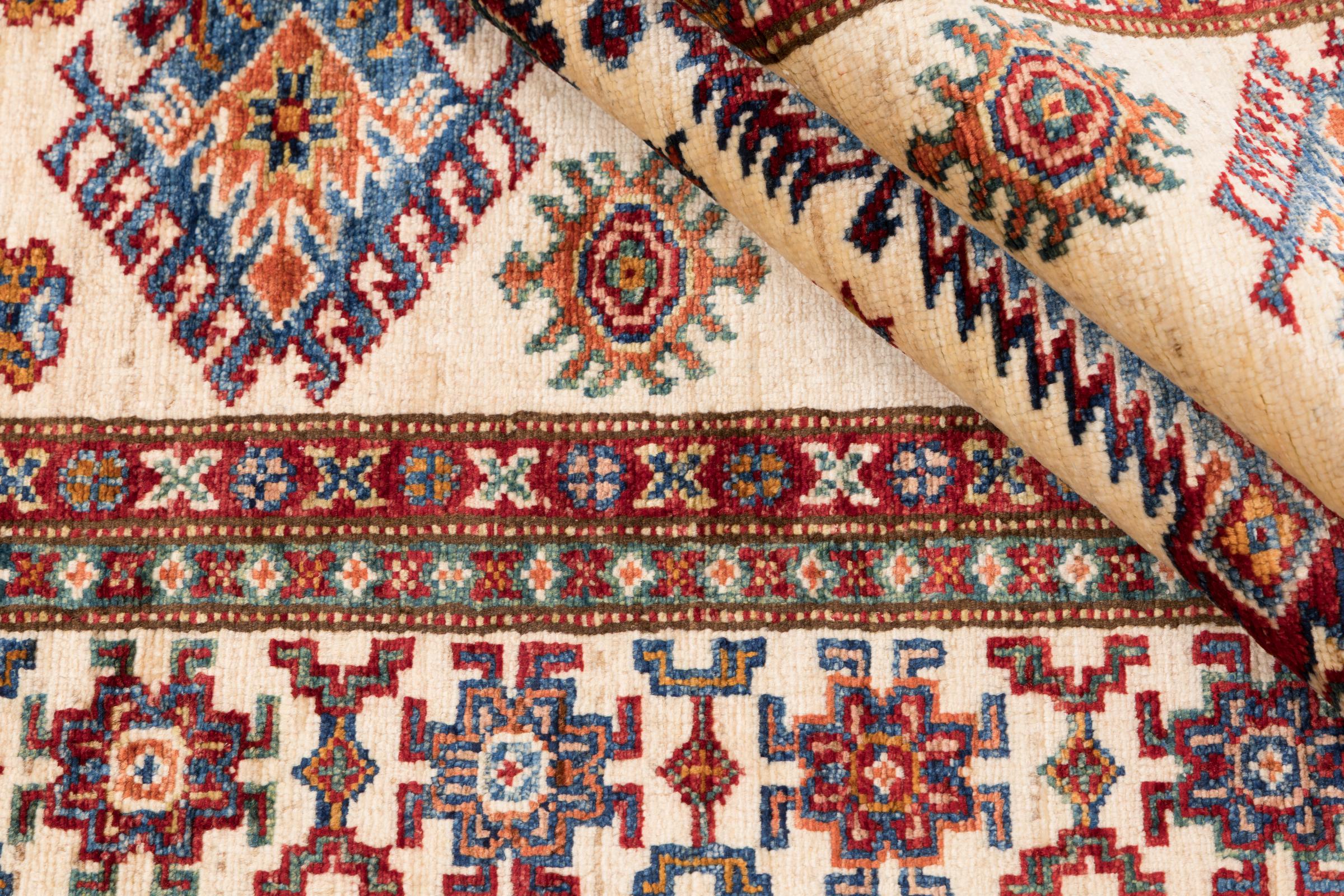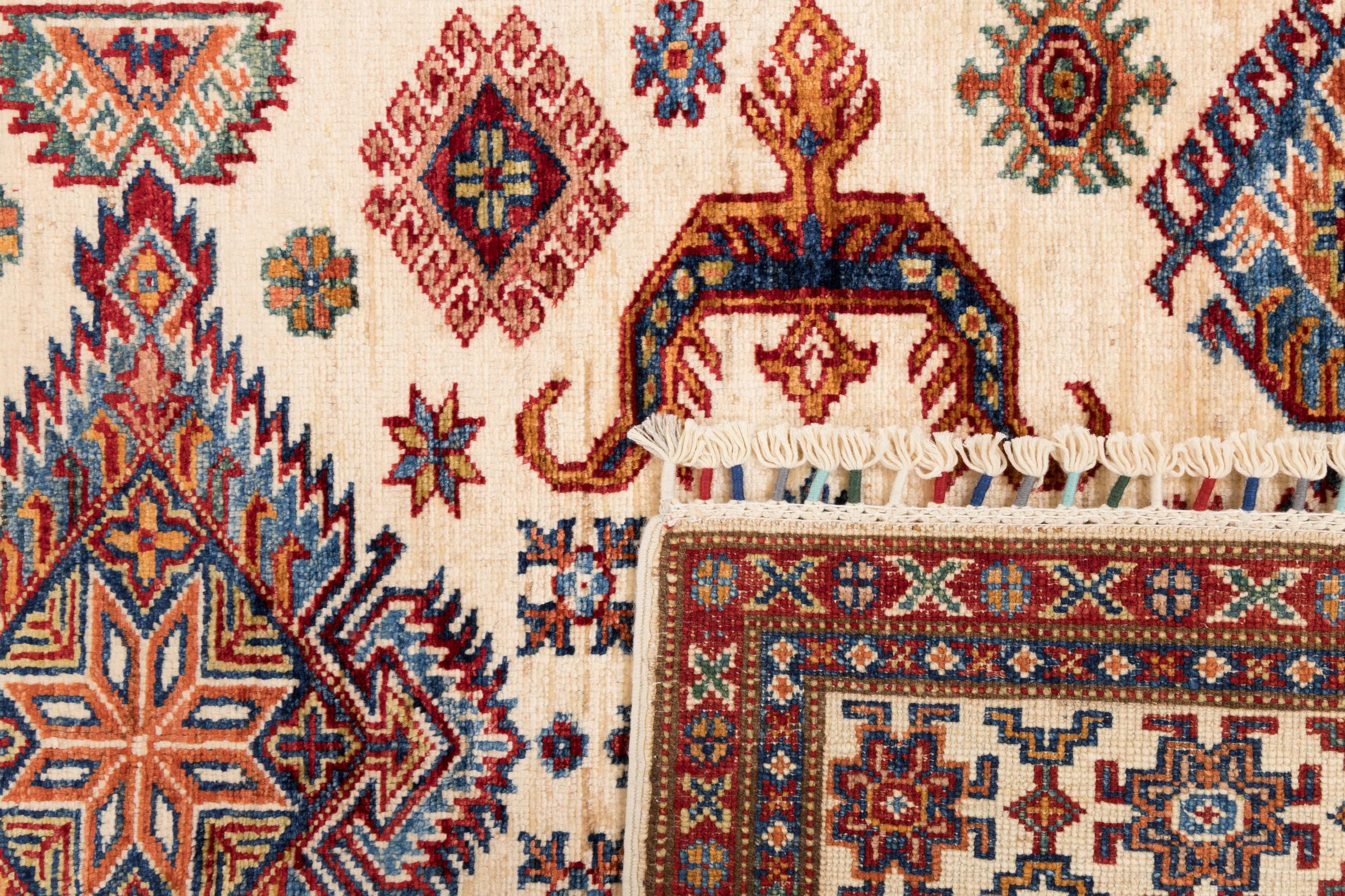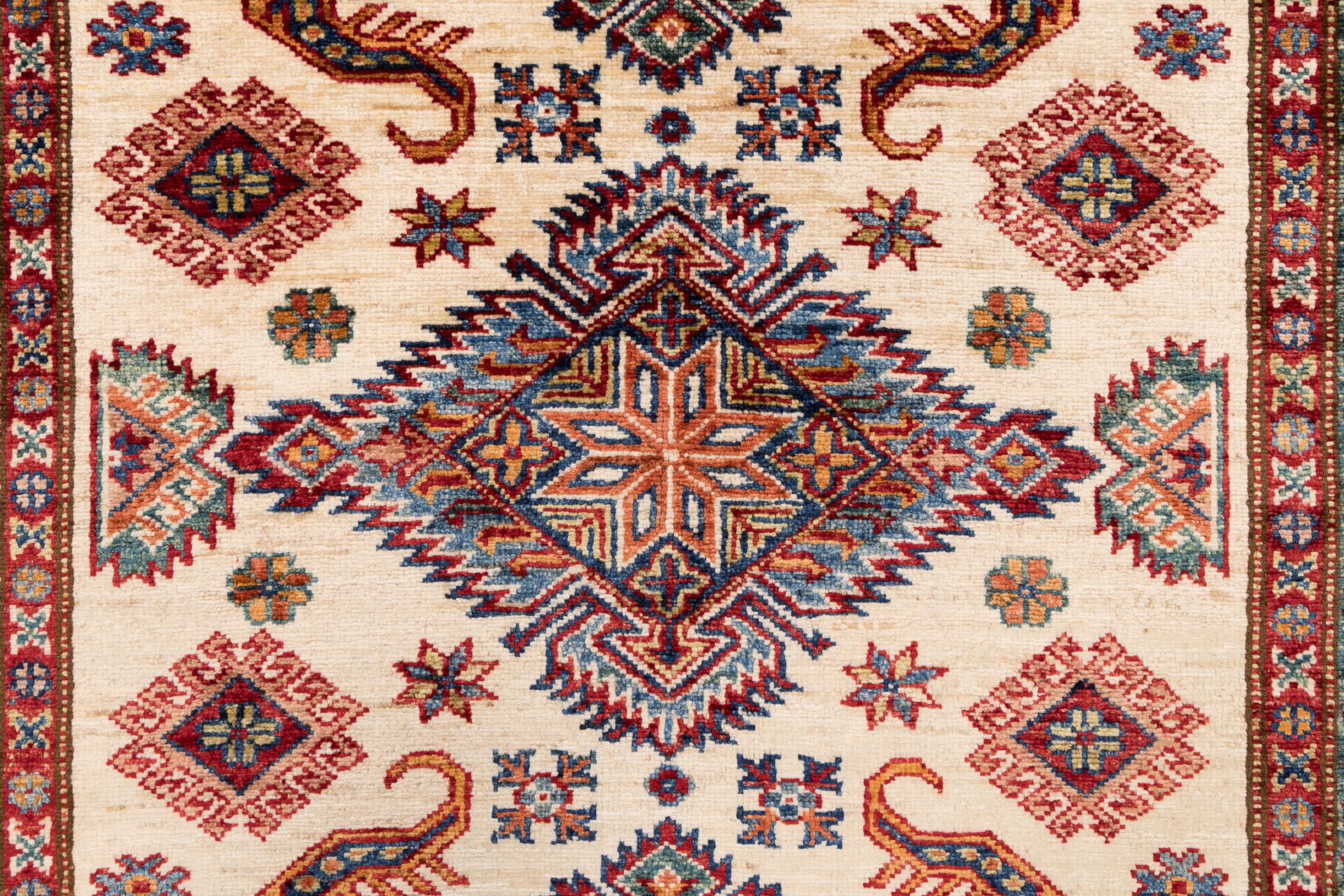 Kazak-vloerkleden zijn duurzame, levendige wollen vloerkleden die bekend staan om hun unieke geometrische patronen, uitgebalanceerde kleuren en uitzonderlijk vakmanschap. Ze zullen een boeiende en cultureel rijke sfeer in uw ruimte creëren. Oorspronkelijk afkomstig uit de Kaukasus en een van de oudste soorten tapijten, worden ze nu voornamelijk gemaakt door Kazachen in Afghanistan en Pakistan. Een antiek Kazachs tapijt kan zeer waardevol zijn voor verzamelaars.