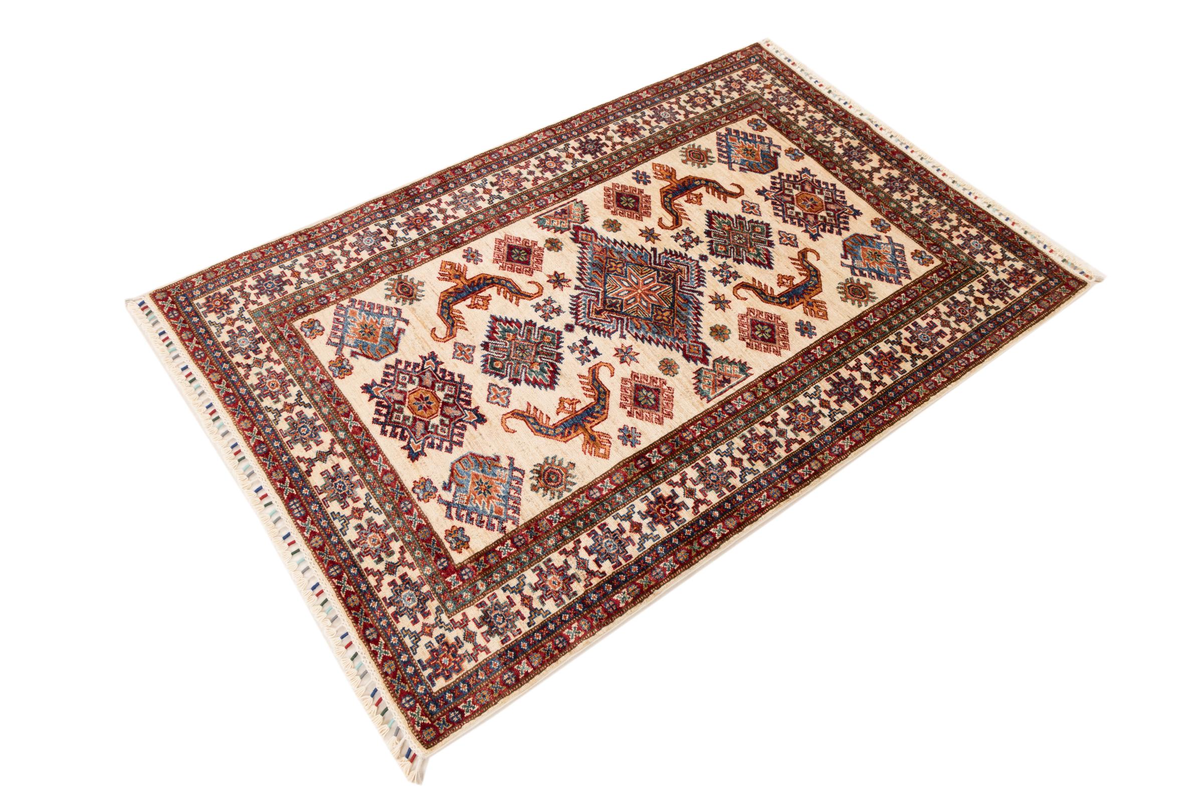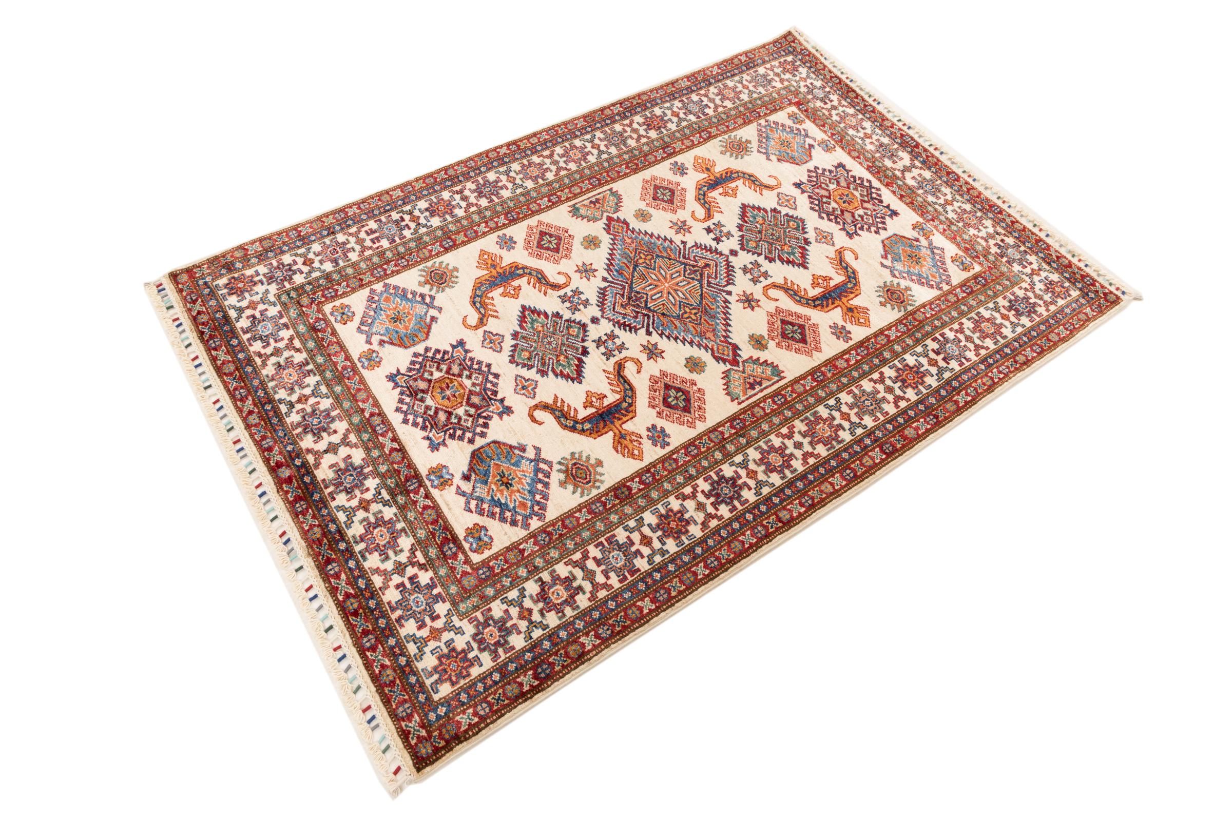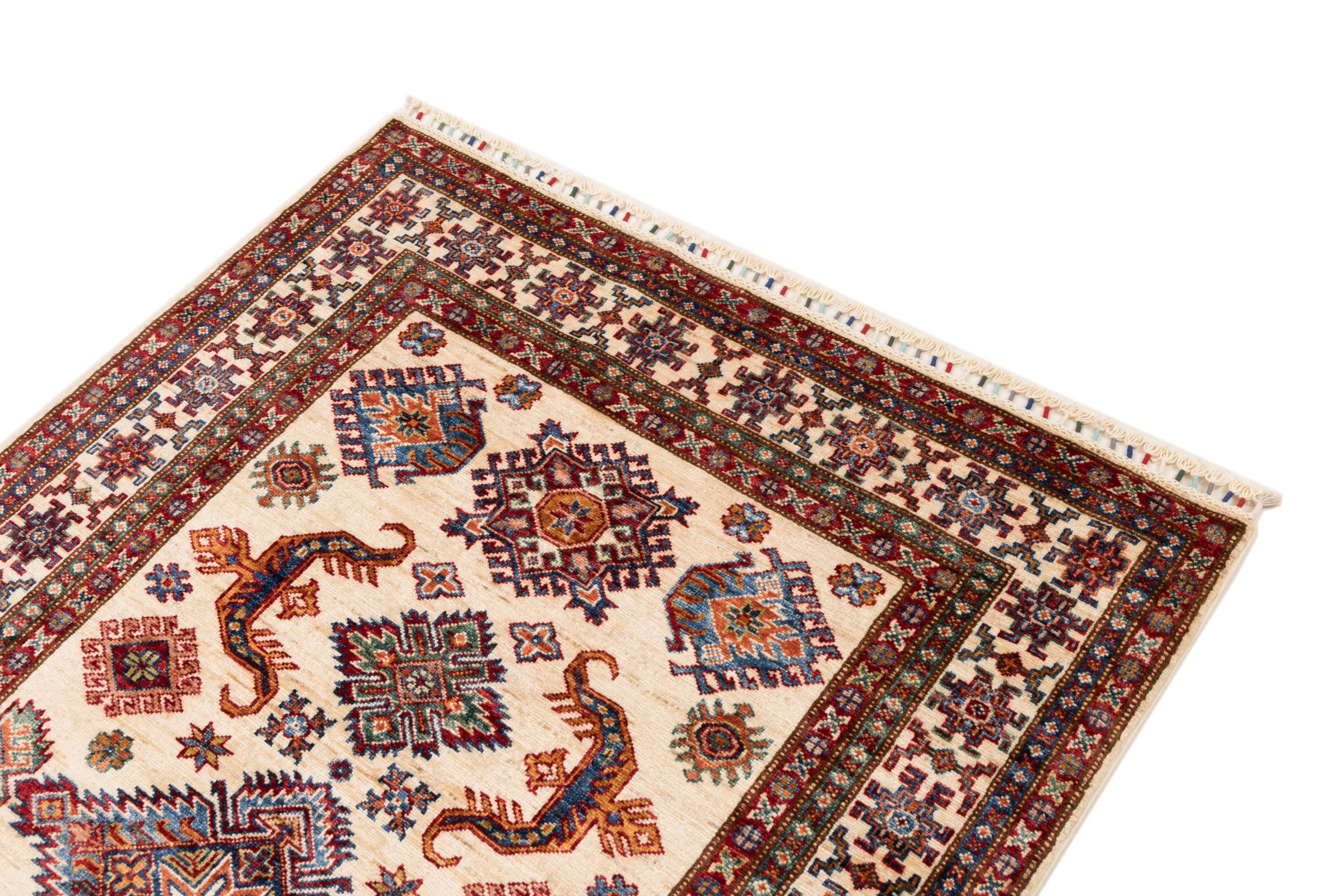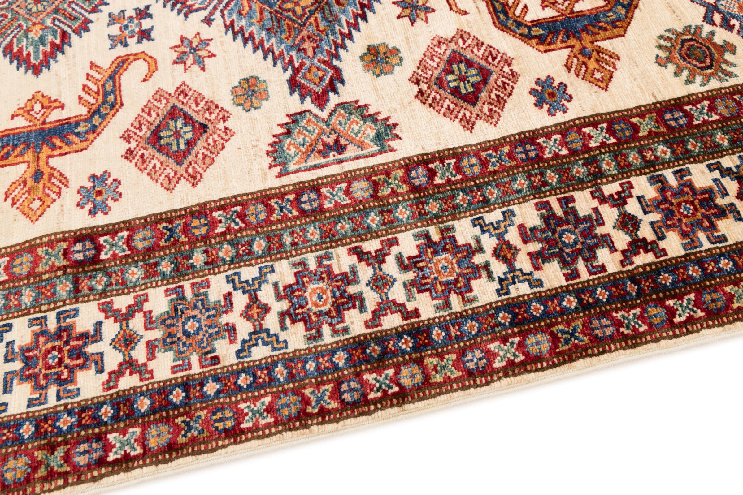 Kazak-vloerkleden zijn duurzame, levendige wollen vloerkleden die bekend staan om hun unieke geometrische patronen, uitgebalanceerde kleuren en uitzonderlijk vakmanschap. Ze zullen een boeiende en cultureel rijke sfeer in uw ruimte creëren. Oorspronkelijk afkomstig uit de Kaukasus en een van de oudste soorten tapijten, worden ze nu voornamelijk gemaakt door Kazachen in Afghanistan en Pakistan. Een antiek Kazachs tapijt kan zeer waardevol zijn voor verzamelaars.