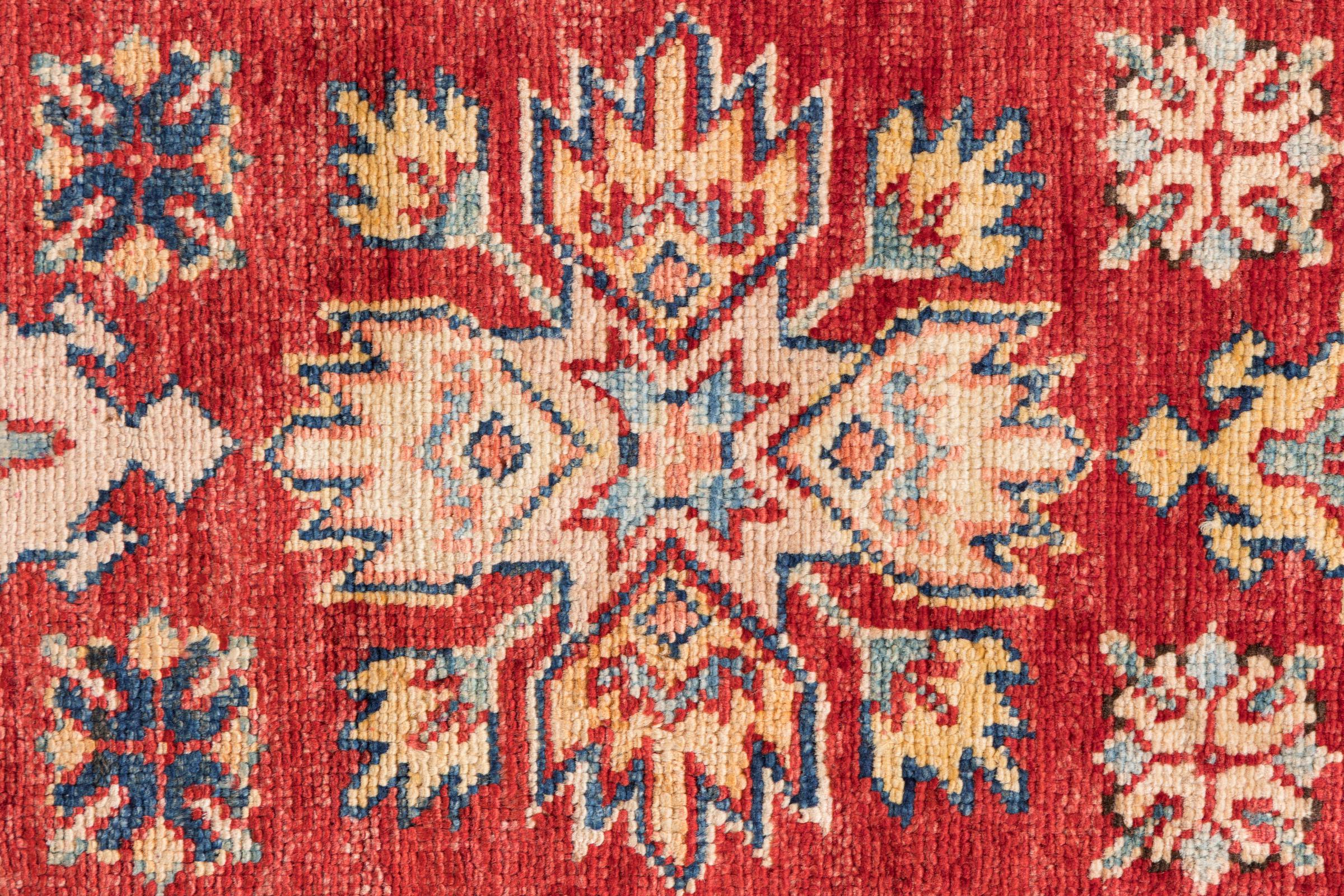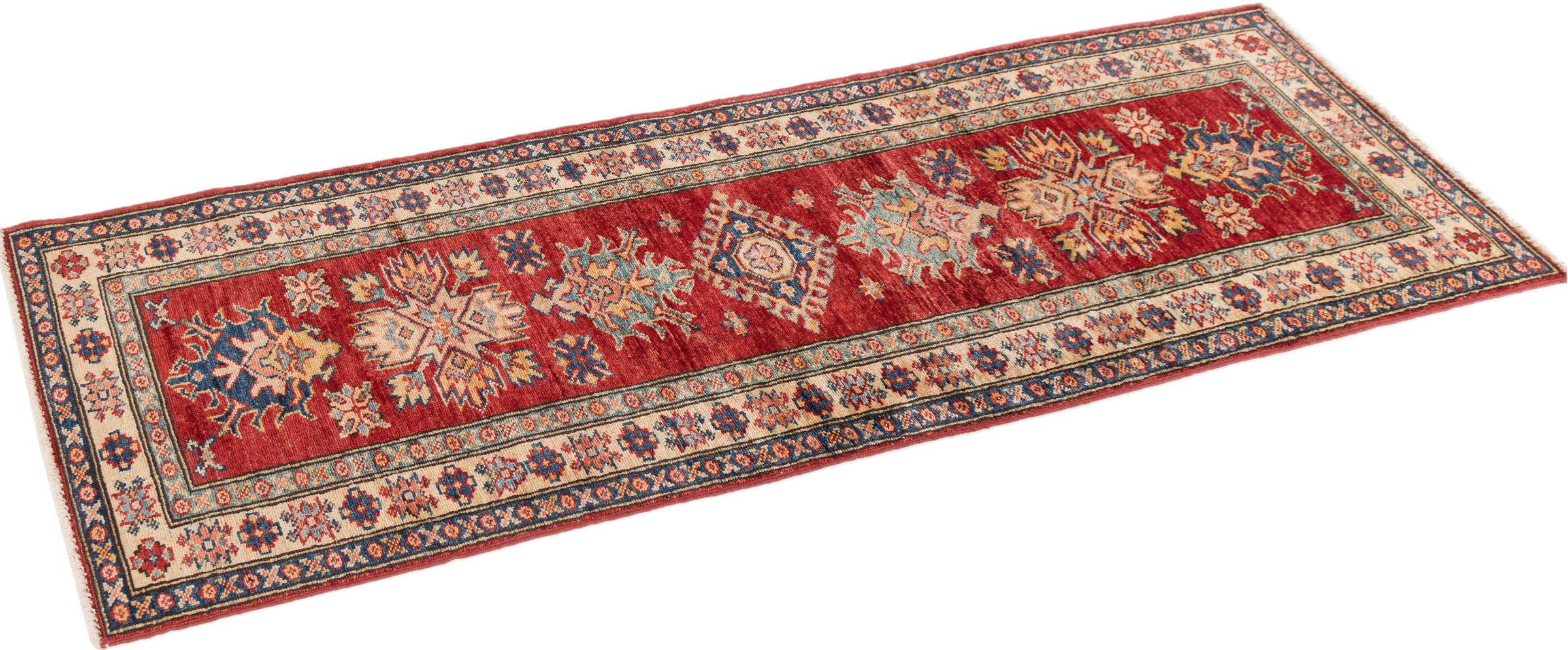 Kazak-vloerkleden zijn duurzame, levendige wollen vloerkleden die bekend staan om hun unieke geometrische patronen, uitgebalanceerde kleuren en uitzonderlijk vakmanschap. Ze zullen een boeiende en cultureel rijke sfeer in uw ruimte creëren. Oorspronkelijk afkomstig uit de Kaukasus en een van de oudste soorten tapijten, worden ze nu voornamelijk gemaakt door Kazachen in Afghanistan en Pakistan. Een antiek Kazachs tapijt kan zeer waardevol zijn voor verzamelaars.